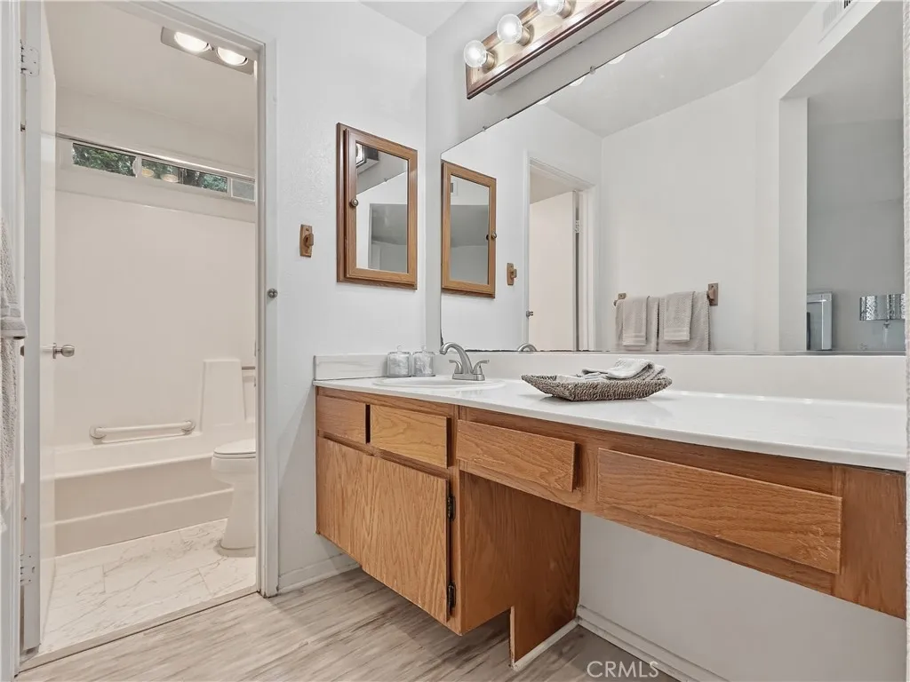 Welcome to 13104 Glen Court #45....A Private Retreat in Chino Hills. Tucked within a serene community setting, this charming ground level 2 bedroom, 2 bathroom condo offers the perfect blend of comfort, privacy, and thoughtful upgrades. Step inside to a bright, open living space featuring grey laminate flooring and a cozy gas fireplace, with direct access to an expansive wraparound patio, ideal for entertaining or relaxing outdoors. The living area flows seamlessly into the dining room and a well appointed kitchen offering ample cabinetry, white tile counters, and ALL APPLIANCES INCLUDED, among them a brand new electric range and oven. The generously sized guest bedroom features a large closet and easy access to the updated full guest bathroom with a shower/tub combination. The spacious primary suite is a true retreat, complete with a large closet and a private slider to your large patio. The en-suite bathroom offers a lengthy vanity and a separate water closet with shower/tub. Outside, the oversized wraparound patio combines a concrete entertaining area with a turf section, perfect for pets. Additional highlights include central heat, a portable A/C unit, and the rare convenience of an in unit washer and dryer, all included with the home. Completing the package is an attached 2 car garage with an electric opener, providing both secure parking and generous storage space. HOA amenities include a pool and hot tub. Come see it before it is gone!