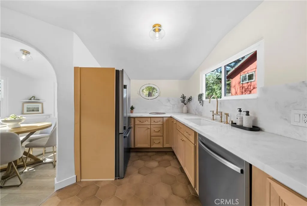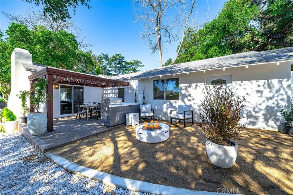 Beautifully remodeled in Meiners Oaks, this 3-bedroom, 2-bath home blends modern upgrades with its original charm, set on a quiet, tree-lined interior street with a calm, low-traffic feel. Thoughtfully designed inside and out, the home offers a cohesive, turnkey experience that feels both elevated and comfortable. The interior is fresh and refined, featuring Bedrosians laminate flooring throughout and Bedrosians tile in the bathrooms, kitchen, and laundry. A custom kitchen by Best Sheer Stone serves as the centerpiece, with clean, contemporary finishes and new appliances, complemented by a stackable washer and dryer and custom glass shower enclosures. Every element has been curated to create a space that feels complete, functional, and easy to live in from day one. The outdoor space is designed as a natural extension of the home—ideal for both everyday use and entertaining. A deck and pergola create a relaxed backyard setting, complete with an outdoor BBQ, sink, and refrigerator. New landscaping surrounds the property, including front and side fencing, a DG patio area, gravel driveway, and five raised garden beds along the side yard, plus additional planters for gardening. The front yard features new sod and a sprinkler system, while large planted planters and solar driveway lighting enhance both ambiance and curb appeal. Fresh exterior stucco ties everything together with a clean, finished look. Additional improvements include an updated automatic garage door, and the home’s positioning on a quiet interior street adds to the overall sense of privacy and ease. Located just minutes from hiking trails, local cafés, and downtown Ojai, this Meiners Oaks property offers a rare combination of thoughtful design, functional outdoor living, and the relaxed, indoor-outdoor lifestyle that defines the Ojai experience.