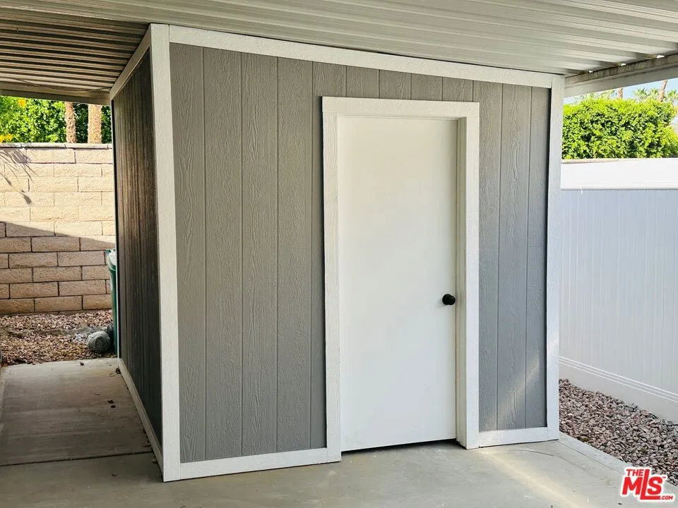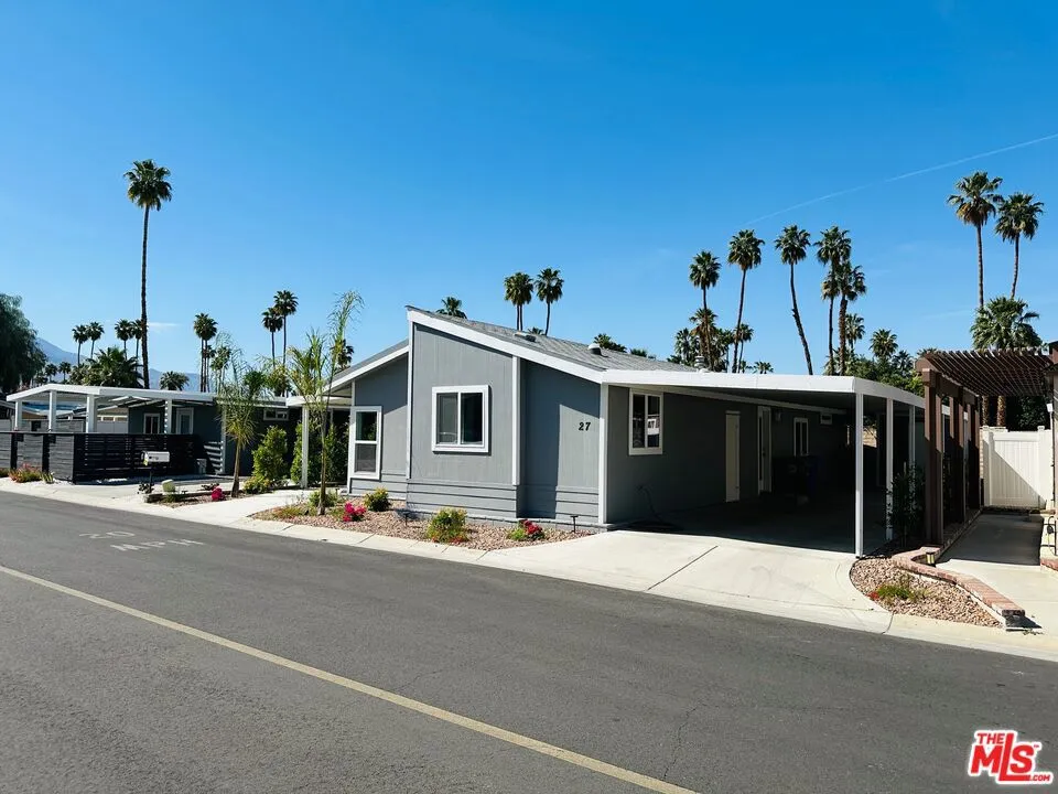 This practically brand-new completely renovated home offers country club living at a price that can't be beat! Offered fully furnished and turn-key, it features a spacious great room with vaulted ceilings and clerestory windows that showcase breathtaking mountain views and fill the space with natural light. The gourmet kitchen is a chef's dream, complete with high-end smart stainless steel appliances, sleek quartz countertops, a custom tile backsplash, a sit-in island, and warm, sexy shaker-style cabinetry. Luxury vinyl flooring flows throughout the home, leading to a stylish butler's pantry, perfect for serving cocktails and appetizers. The designer bathrooms feature quartz counters, custom-tiled showers, and elegant glass partitions. You'll find three generously sized bedrooms with ample closet space, complemented by contemporary hardware and chic light fixtures throughout. The wide hallway and doors allow for maximum accessibility. Step outside to enjoy a beautifully landscaped yard with accent lighting, a powered shed, and a charming private patio, ideal for relaxing desert evenings. Clever use of the outdoor space could allow for the addition of a fenced pet area / dog run. This rare gem sits on a low-maintenance, budget-friendly lot in the heart of the community, just steps away from the dog park, pools, clubhouse, and restaurant. Date palm Country Club is a 55+ community. Monthly lot rent of $1,465 includes park amenities (golf is additional). This one is priced to move quickly. Bonus: The Seller is willing to include a 2005 Buick Rendezvous with 98,000 miles / one owner in the sale! This home is truly turn-key! Schedule your tour today!