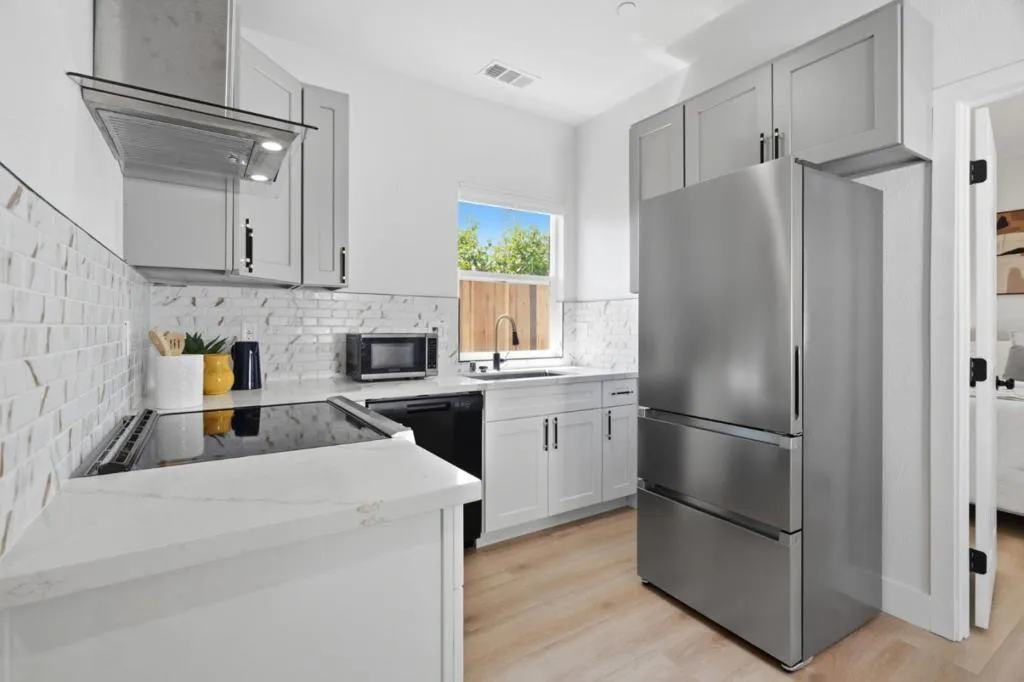 Welcome to 2512 Amethyst Dr in Santa Clara. This fully remodeled property offers a total of 5 bedrooms and 3 bathrooms across a beautifully updated main home and a detached newer construction ADU with its own separate address and electric meter, ideal for extended family or rental income. The main home features 3 bedrooms, 2 bathrooms, approx. 1,440 SqFt of living space on a 5,600 SqFt lot, with hardwood flooring, tray ceilings, recessed lighting, and designer finishes throughout. The updated kitchen includes quartz countertops, subway backsplash, soft-close shaker cabinetry, and stainless steel appliances. The primary suite offers a walk-in closet and a remodeled bathroom with quartz surfaces and a custom-tiled shower. The detached ADU offers 2 bedrooms, 1 bathroom, approx. 600 SqFt, a full kitchen, and in-unit laundry. Additional highlights include a newer roof, double pane windows, Nest thermostat, owned solar, heat pump HVAC, and low Santa Clara utilities. Finished garage with epoxy flooring, EV outlet, and tankless water heater. Conveniently located near Bracher Park, Bowers Park, Costco, Nob Hill, Whole Foods, and major employers, including Apple, Google, Nvidia, and LinkedIn, with easy access to major highways.