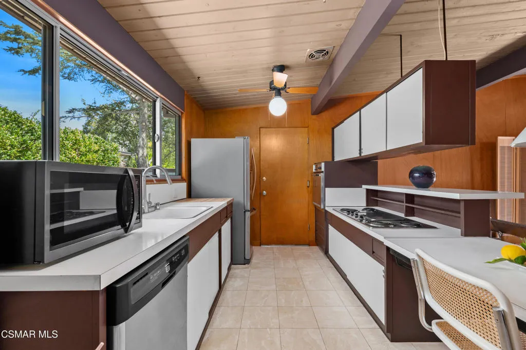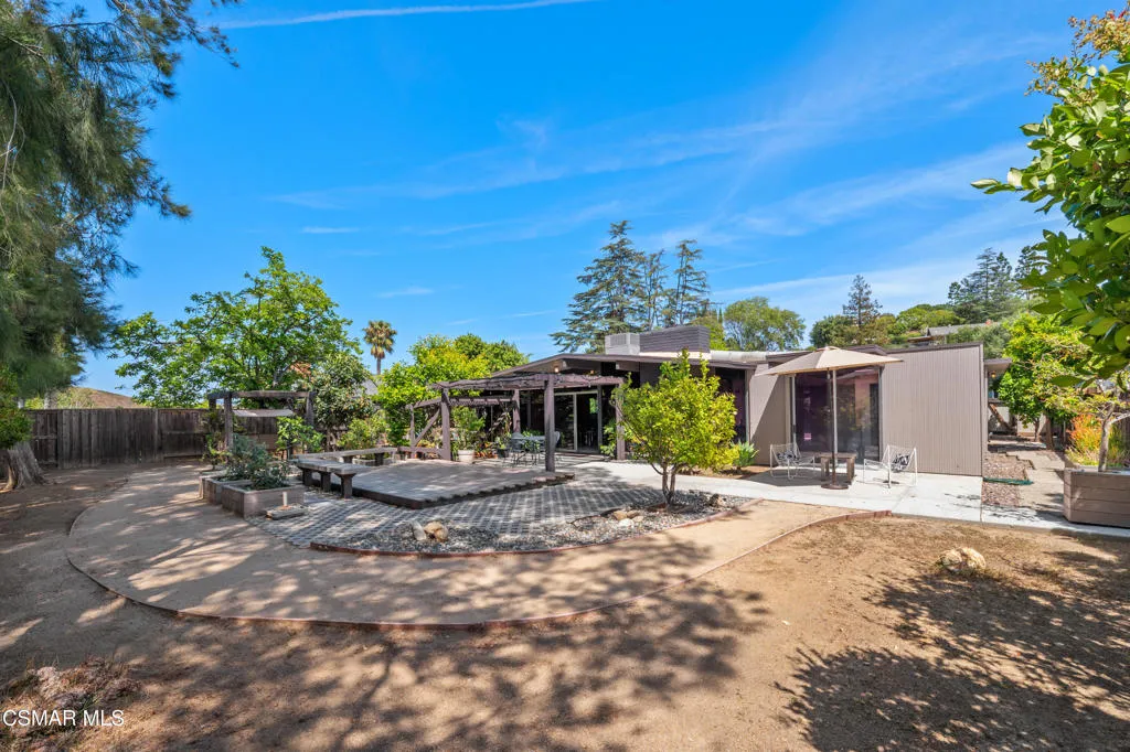 Located on the highest point in the tract, this Claude Oakland-designed Eichler embodies the essence of Mid Century Modern living. Thoughtfully maintained and true to its architectural roots, the home features a rare original, impeccably preserved Eichler kitchen -- complete with the iconic pull out table.Step through the brand new steel entry door into the signature atrium, your private open air living space, seamlessly connecting to the bright, open living areas beyond. Walls of glass, post and beam construction, and classic indoor outdoor flow create the timeless aesthetic Eichler homes are celebrated for.This home has been exceptionally well cared for and updated where it counts: a new roof (July 2023), new HVAC system (July 2023), new interior and exterior paint, new carpet, and newly replaced atrium concrete (2024). Energy efficient aluminum double pane windows ensure comfort throughout the seasons.The two front bedrooms have been combined into one expansive room, creating a generous space that could even function as a second bedroom suite, yet also could easily be converted back to the original two rooms.The large private backyard offers multiple seating and entertaining areas beneath a charming pergola. A collection of fruit trees -- including a rare exotic pumelo, guava, loquat, lemon, orange, persimmon, plus potted fig and pomegranate -- brings a lush, organic feel to the space. The wide side yard has boat or RV storage possibilities.With its architectural pedigree and location, just 30 minutes from Malibu and under an hour from both the Burbank studios and downtown Santa Barbara - this home blends design significance with exceptional convenience.