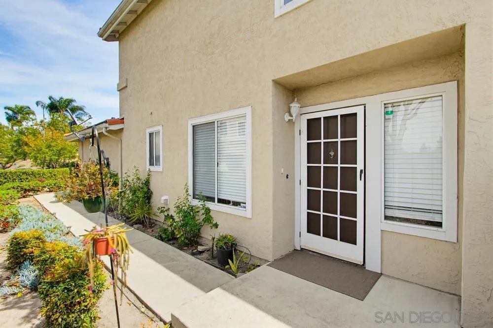 Welcome to this exceptional turn-key townhouse that offers one of the features buyers want most but rarely find: a truly spacious private backyard and steps from the pool. Unlike many condos and townhouses, and even some houses where outdoor space is limited, this home provides the kind of yard area often associated with traditional detached houses—ideal for entertaining, pets, gardening, play space, or simply enjoying room to breathe. Positioned on a desirable corner lot, across the street from the pool, the property also benefits from added privacy with an extended driveway, and additional outdoor space. Inside, the layout is bright and functional with comfortable living areas and great natural light throughout. The primary suite is especially impressive, featuring a spacious and open bedroom along with a beautifully appointed en-suite bathroom complete with dual vanities and updated finishes. The home is equipped with central air conditioning and heating for year-round comfort, and the attached 2-car garage offers convenience plus extra storage. Located within the desirable California Villas community, residents enjoy access to a pool, spa, clubhouse, playground, and greenbelt areas with a low HOA fee which also currently includes the benefits of building maintenance like your roof. Quietly tucked away with limited through traffic and feeling like a cul-de-sac, yet centrally located near the heart of Vista, this home offers convenient access to shopping, dining, entertainment, Highway 78, the coast, and nearby public transportation. A rare opportunity to own a move-in ready townhome that delivers the private outdoor space and functionality many buyers search for in a detached home.