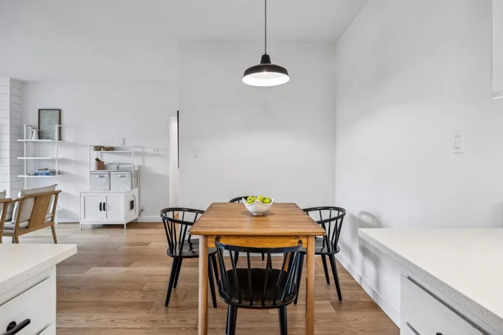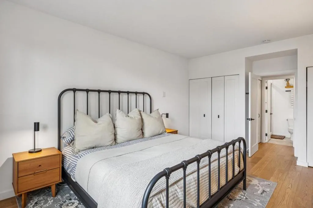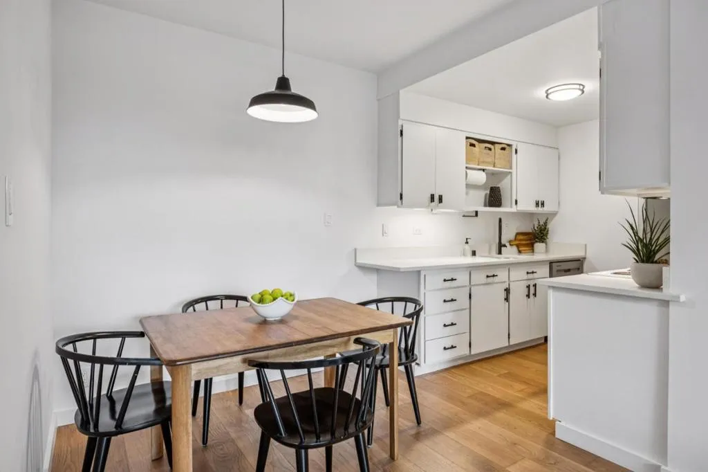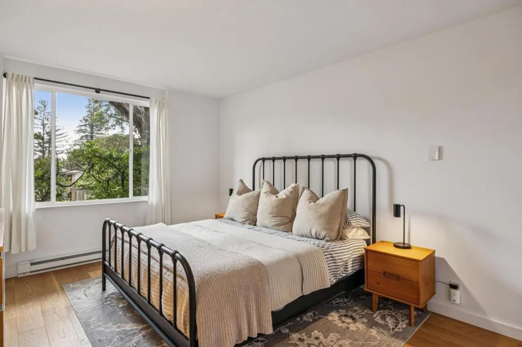 Bright, updated condo in Burlingame Park offering a rare opportunity to own in one of the Peninsulas most sought-after neighborhoods with an approachable price point and low HOA. This light-filled home features open, airy living spaces and a well-proportioned layout. The living area is anchored by a custom shiplap accent wall with electric fireplace, creating a natural focal point, while the dining area sits within a defined alcove with an industrial pendant light overhead. The refreshed kitchen has quartz countertops, black hardware, updated lighting, undermount sink, and a stainless steel fridge, offering immediate functionality with room to further customize. The generously sized bedroom has space for a king bed and a leafy outlook. Fully remodeled ensuite bath features a walk-in shower with floor-to-ceiling tile and an expanded vanity with added storage. Additional upgrades include hardwood flooring, skim-coated walls, updated electrical, and smart home features. Secure building with elevator, pool, and dedicated parking. Ideally located near Burlingame Ave and Broadway for dining, coffee, and everyday conveniences, easy access to US-101, I-280, and SFO, plus nearby tree-lined residential streets that invite you to slow down and enjoy the neighborhood.
