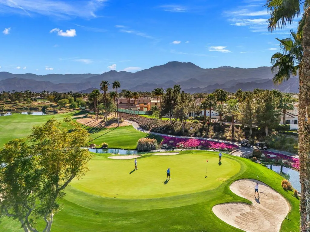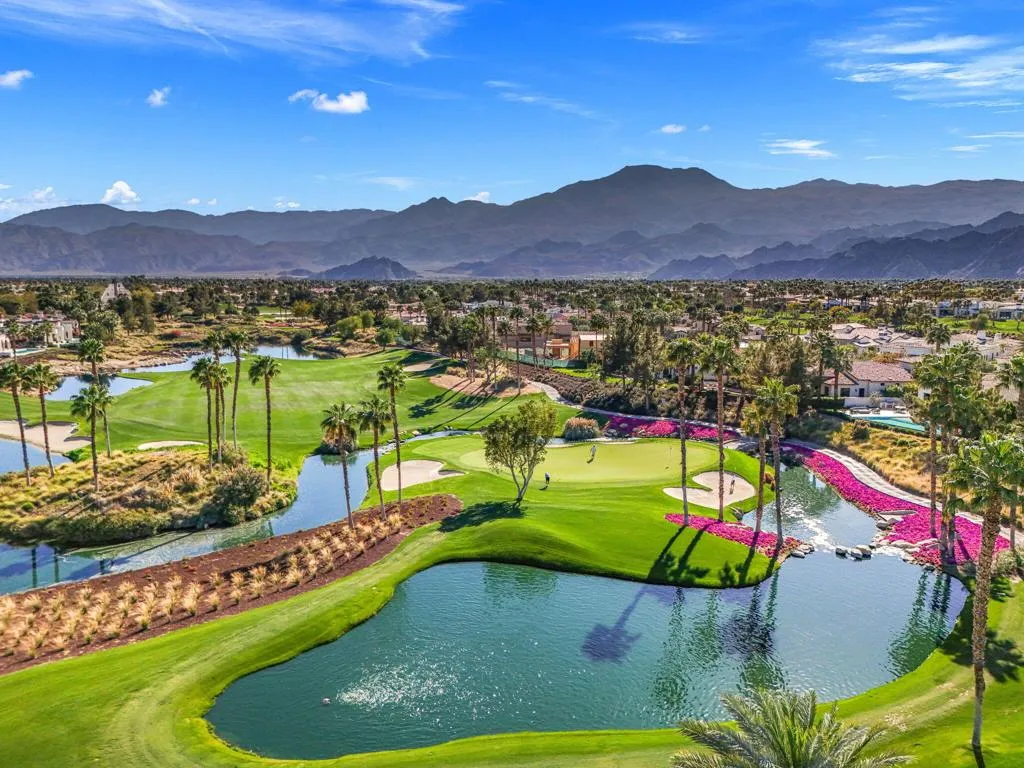 Welcome to your timeless estate nestled behind the gates of the prestigious Hideaway Golf Club, ideally positioned on the 16th green of the renowned Clive Clark Golf Course. Enjoy breathtaking panoramic views of cascading waterfalls and the tranquil creek that gracefully wraps around this signature hole--creating a setting of unmatched serenity and beauty.Recently remodeled with refined, high-end finishes, this exceptional residence showcases luxury countertops and Rohl plumbing fixtures throughout, blending modern sophistication with classic architectural elegance.Spanning approximately 4,201 square feet, this 4-bedroom, 4.5-bath estate sits on an expansive 17,424 square foot lot and has been thoughtfully upgraded and meticulously maintained for a truly turnkey experience. The home's superior craftsmanship is evident in every detail, featuring full-size exposed beams, soaring ceilings--many reaching 16 feet--solid wood doors, custom millwork, and finely crafted cabinetry throughout.The gourmet kitchen is a chef's dream, appointed with Wolf and Sub-Zero appliances, seamlessly opening to inviting living spaces designed for both grand entertaining and intimate gatherings. Five fireplaces, new designer chandeliers, and curated finishes throughout create a warm, old-world charm with a modern luxury edge.Additional highlights include an oversized 4-car garage with 18' x 9' doors, offering ample space for vehicles and storage.This is one of the best values for quality, location, and lifestyle within The Hideaway. Residents enjoy access to 36 holes of championship golf and a fully reimagined clubhouse featuring world-class amenities.Offered furnished per inventory. Easy to show.For private showings, contact Joe at 760-275-8800