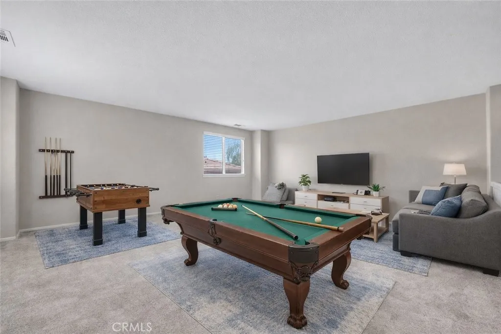 Located in the desirable Redhawk community of Temecula, this beautifully updated home features fresh interior paint, new vinyl flooring downstairs, and new carpeting upstairs, along with a new microwave, dishwasher, and range. The second floor offers 4 spacious bedrooms and a large loft, perfect for entertainment or a flex space. The main floor includes an additional bedroom or office and a full bath. The home boasts 3 full bathrooms, a spacious kitchen with granite countertops and a walk-in pantry, a downstairs laundry room, and both living and family rooms with a cozy fireplace. Step outside to a private backyard featuring a large stamped concrete patio, fruit trees, a built-in BBQ and bar island, and terraced landscaping—ideal for entertaining. The garage includes a dedicated workshop area, perfect for hobbies or extra storage. Additional features include FiOS internet availability and a built-in security system with cameras. Conveniently located near top-rated schools ,just steps from Helen Hunt Jackson Elementary and Great oak high school, parks, shopping, and Redhawk Golf Course—this is a home you don’t want to miss! Virtual Staging.