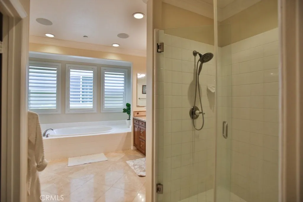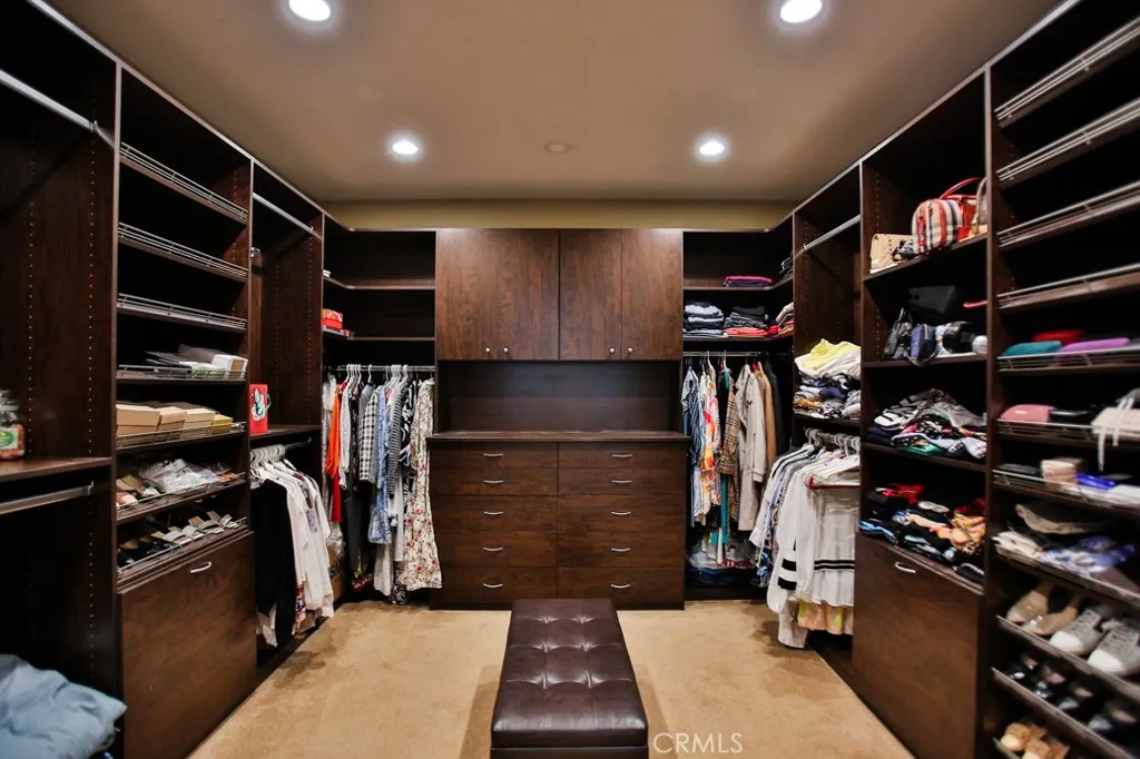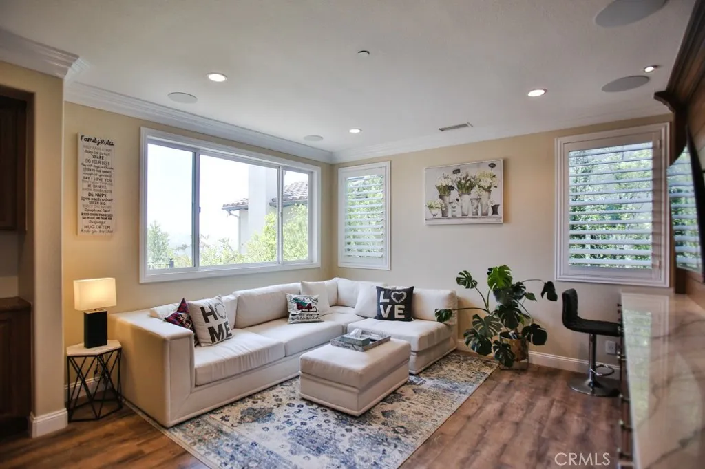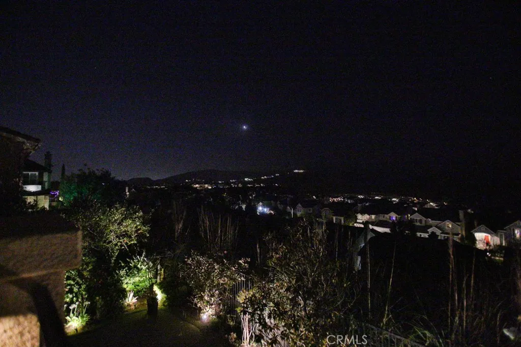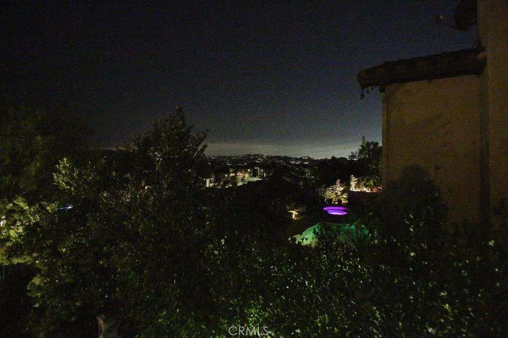 Experience luxury living at its finest in this extraordinary estate featuring the largest floor plan in the highly desirable Highpoint Estates community. Perfectly positioned at the end of a coveted cul-de-sac in Serrano Heights, this model-perfect residence showcases exceptional upgrades, stunning design, and breathtaking panoramic views. Offering 5 spacious bedrooms and 4.5 bathrooms, this elegant home includes a highly sought-after main-level bedroom with private ensuite, ideal for guests or multi-generational living. Additional highlights include a custom entertainment loft and a dedicated exercise room conveniently located near the laundry room. The expansive gourmet kitchen is a chef’s dream, featuring abundant custom cabinetry, a walk-in pantry, multiple granite countertops, and an oversized center island. The kitchen opens seamlessly to the family room and dining room, where dramatic 12-foot sliding glass doors create effortless indoor-outdoor living. Step outside to the impressive California Room patio, complete with electric heaters, built-in TV, integrated speakers, fully retractable automatic Euro blinds, and a spiral staircase leading to the oversized private deck off the primary suite. Enjoy spectacular 180-degree views of the surrounding hills and Catalina Island from multiple areas of the home. Upstairs, the custom entertainment loft features built-in cabinetry, space for a large-screen TV, and automatic exterior blinds to eliminate glare. All five bedrooms include custom closet systems for maximum organization and convenience. This energy-efficient smart home is loaded with premium upgrades, including: Dual-pane windows Fire sprinkler system Two high-efficiency 20 SEER HVAC systems 9.16 kW owned solar system Two finished attic storage areas 240V EV charging station in garage Tankless water heater Whole-house water filtration system LED lighting throughout Whole-home luxury entertainment system with 16 audio zones 3 private movie theater systems A rare offering combining luxury, comfort, efficiency, and unmatched views—this exceptional Serrano Heights home is truly one of a kind. Must see to fully appreciate!