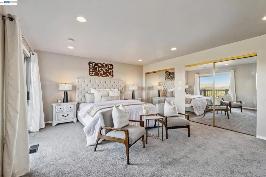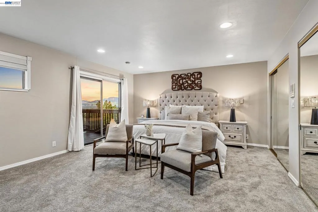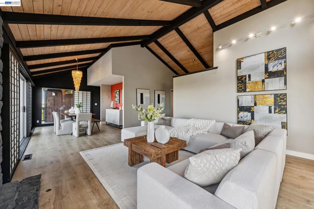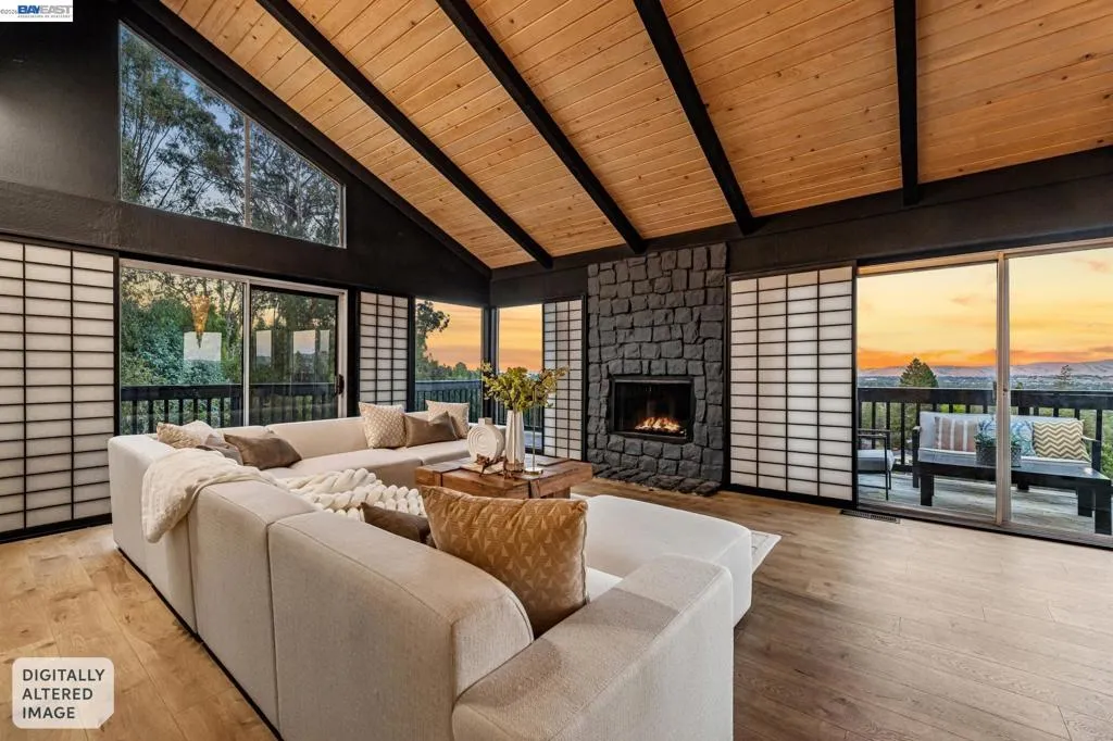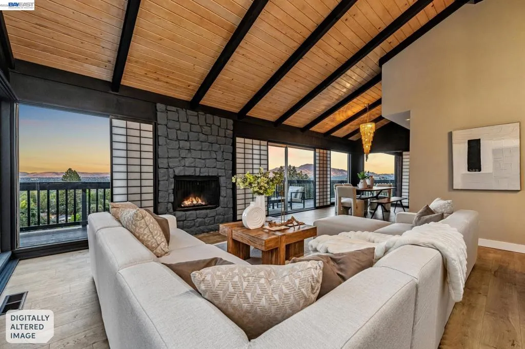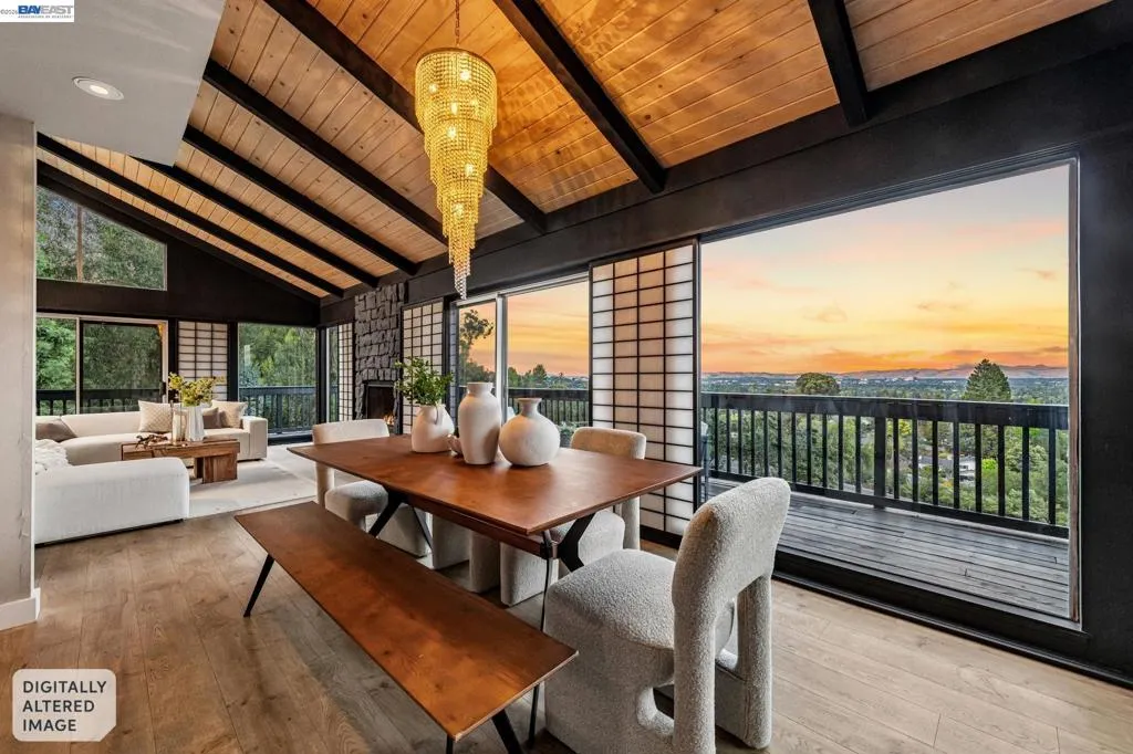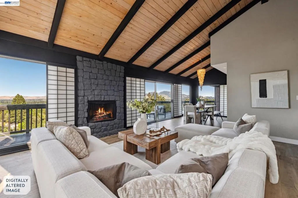 Welcome to this stunning Reliez Valley residence, perfectly positioned on a private 0.73-acre lot w/sweeping views of Mount Diablo & the surrounding hillsides. Nestled at the end of a quiet court, the home features a secluded driveway & an oversized 3-car garage with EV Charger & workshop space. Boasting over 3,500 sq. ft., this home offers 5 bedrooms & 3.5 baths, including 2 family rooms (one is an office), 3 fireplaces (gas, wood & insert), Nest thermostat & Arlo security cameras. The main level features an expansive living room w/beautiful open wood beam ceilings, a cozy fireplace & Shoji screens made by master craftsman, seamlessly flowing to a wrap-around deck ideal for enjoying the panoramic views. The gourmet kitchen is a chef’s dream, equipped with granite counters, a 6-burner Dacor range, stainless steel appliances & pantry closet. Three bedrooms & 1.5 baths are conveniently located on this level. Upstairs, the spacious primary suite provides a large walk-in closet, private deck to enjoy the sunrise & a double sink vanity. The lower level offers a secluded in-law or au pair setup, including a bedroom, full bath & additional living areas, perfect for guests or extended family. Outdoor amenities include a pool w/sundeck, firepit, lighted sports court, offering endless entertainment possibilities. Enjoy easy access to hiking trails, Brookwood Park, and local conveniences like Lunardi’s Markets and Starbucks just minutes away. Downtown Lafayette and BART are only 10 minutes away. Tops-rated schools serve this community: Springhill Elementary, MH Stanley Middle, and Acalanes High.