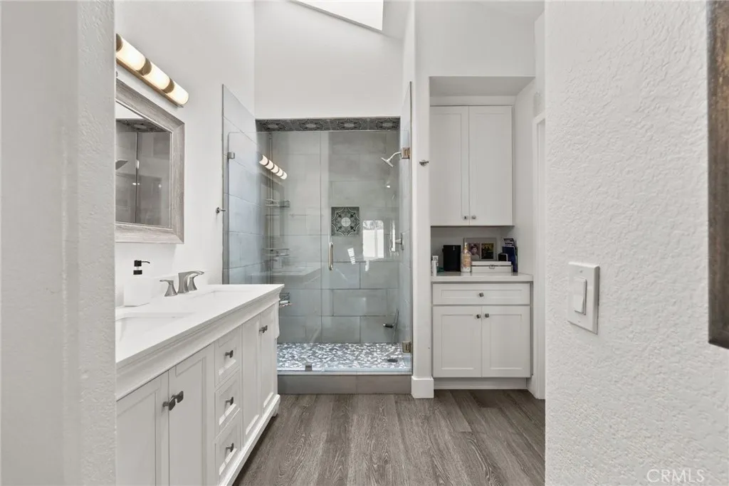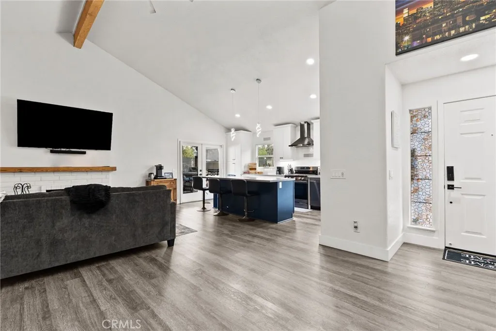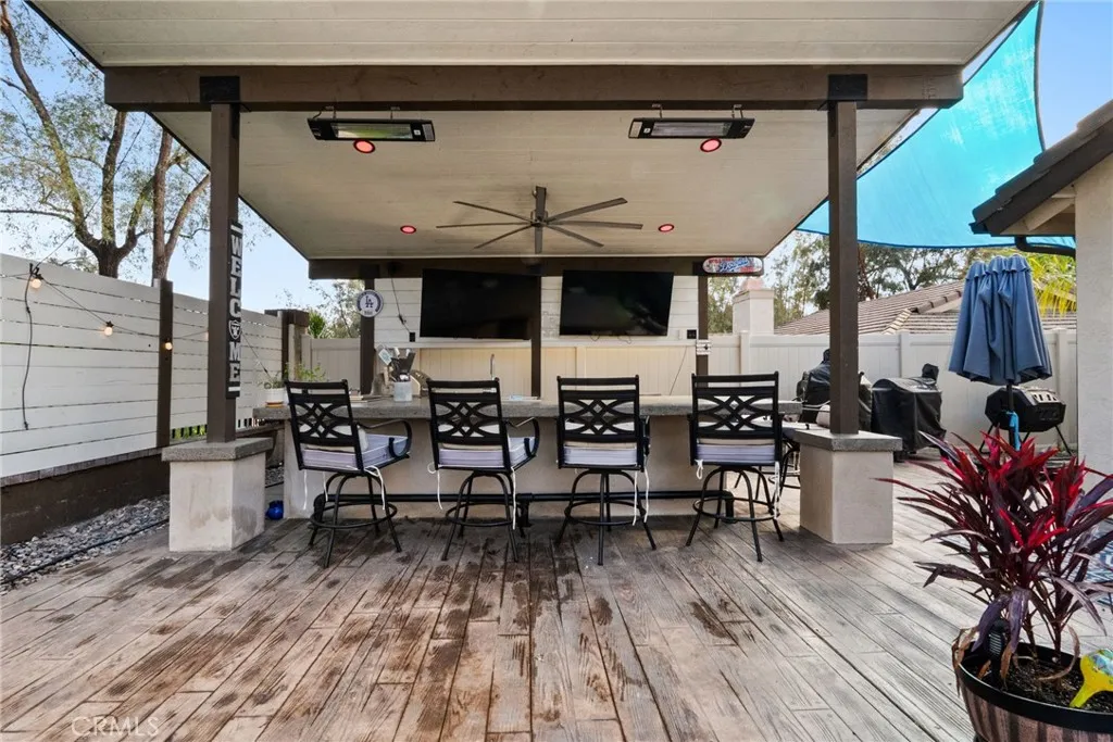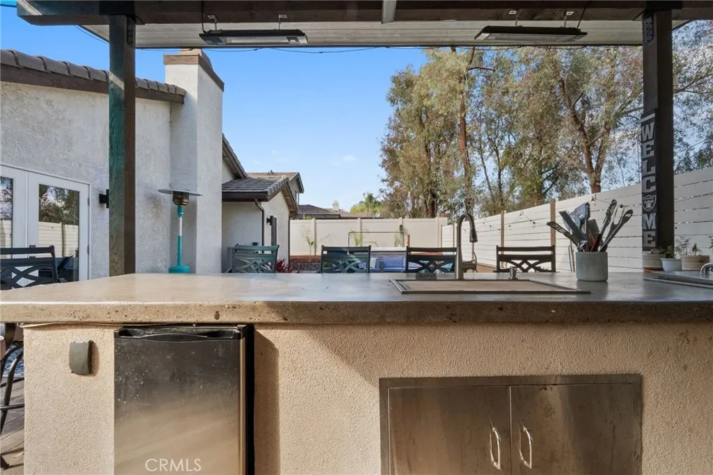Welcome to 42132 Sweetshade Lane where modern design meets effortless indoor-outdoor living in the heart of Temecula’s The Villages community. This fully remodeled single story home has been thoughtfully reimagined to create a bright, open-concept layout perfect for today’s lifestyle. Walls have been removed to seamlessly connect the kitchen and living spaces allowing natural light to flow throughout and creating an inviting atmosphere for both everyday living and entertaining. The stunning kitchen serves as the centerpiece of the home featuring a large island with abundant seating and storage, sleek light gray quartz countertops, stainless steel appliances, crisp white cabinetry and a timeless white subway tile backsplash. Plantation shutters throughout the home add a touch of elegance and privacy. Offering three spacious bedrooms and two beautifully updated bathrooms each with modern walk-in showers this home blends comfort with style. The primary suite is a true retreat complete with a designer wallpaper accent wall, dual sink vanity and a walk-in closet. Step outside and prepare to be impressed! This backyard is truly a showstopper. Designed for ultimate entertaining you’ll find a custom cantilevered patio cover with mounted heaters, two large flat screen TVs for game days and a fully equipped outdoor kitchen featuring a built in BBQ, sink and refrigerator. The space is enhanced with a full sound system, ambient landscape lighting and a large gas fire pit set on low maintenance artificial turf. To top it all off, unwind in the oversized above ground spa under the stars. Located in a well established central Temecula neighborhood close to top rated schools, shopping, dining and just a few minutes from Temecula Wine Country. This home offers the perfect blend of style comfort and entertainment.