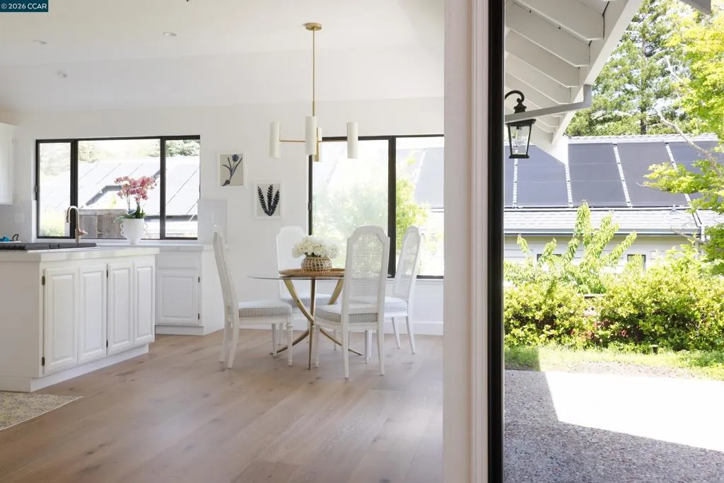 Located behind the gates of prestigious Sanders Ranch, on one of the community’s most coveted streets, this desirable single-level home offers stylish updates and an inviting, level yard. Recently refreshed throughout, the home features new French oak hardwood flooring, interior and exterior paint, updated countertops, new appliances, plumbing fixtures, lighting, carpet, and a brand-new roof. Filled with natural light, the thoughtfully designed floor plan includes an open kitchen that flows seamlessly into the family room, creating an ideal space for both everyday living and entertaining. Expansive windows frame the home and bring the outdoors in, while generously sized bedrooms provide comfort and flexibility. The spacious primary suite offers a walk-in closet and direct access to the backyard for added privacy and convenience. Situated on a quiet cul-de-sac, this exceptional property is just moments from top-rated schools, Rancho Laguna Park, scenic walking trails, and all that Moraga has to offer.