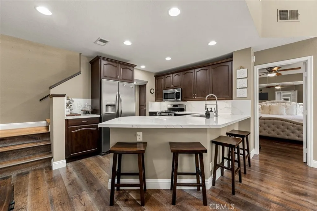 Located in the highly desirable Corsica Villas community, 71 Corsica Drive offers a completely remodeled residence in a prime central Newport Beach location. Just minutes from both the Newport North Shopping Center and The Bluffs Shopping Center, the home combines convenience, quality upgrades, and functional living. This thoughtfully updated home features high ceilings in the great room, creating an open and airy feel filled with natural light. The main level offers a spacious great room and a desirable primary suite, while the upper level includes an ensuite bedroom along with a versatile loft space—ideal for a home office, lounge, or additional living area. Extensive renovations have been completed throughout, including new wood flooring, fresh interior paint, new recessed lighting, and new windows and doors. The kitchen has been fully upgraded with new cabinetry, countertops, and appliances. The main level bathroom has been tastefully refreshed, and major system improvements include a newer AC unit and new water heater. Exterior improvements include new hardscape, enhancing both curb appeal and usability. Additional highlights include an oversized attached two-car garage and close proximity to the community pool and spa within this well-maintained neighborhood. A rare opportunity to own a turnkey home in one of Newport Beach’s most centrally located communities.