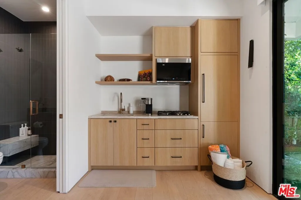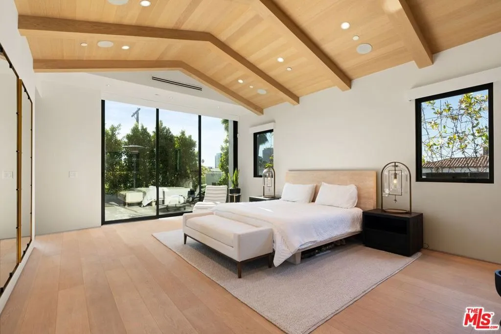 Serene Fully Furnished Modern haven in the heart of Beverly Grove, surrounded by lush greenery on a premier street. This fully furnished home features European white oak floors, designer stone finishes throughout, and expansive Fleetwood sliding doors, blending elegance with functionality. This residence offers a 5-en suite bedroom, 6-bath seamless layout ideal for both entertaining and everyday living. Highlights include: A sophisticated primary suite with vaulted ceilings, a walk-in closet, and a spa-inspired bathroom. Multiple balconies offer serene views and private outdoor escapes. Chef's kitchen with Sub-Zero Wolf and Meile appliances, bar with wine refrigerator, a walk-in pantry, and sleek finishes. Formal living and dining spaces with statement fireplaces, and a detached ADU, perfect for guests. The private backyard is an entertainer's dream, complete with a heated pool and spa, outdoor BBQ, and ample space to relax. The home is also equipped with a cutting-edge Control4 smart home system, 4K AI security cameras, and Post Alarm monitoring, this home offers unparalleled comfort, security, and peace of mind. Luxurious living with impeccable furnishings, close in proximity to The Farmers Market, The Grove, Whole Foods, and Trader Joes. Property is also available for Sale, contact Listing Agent for details.