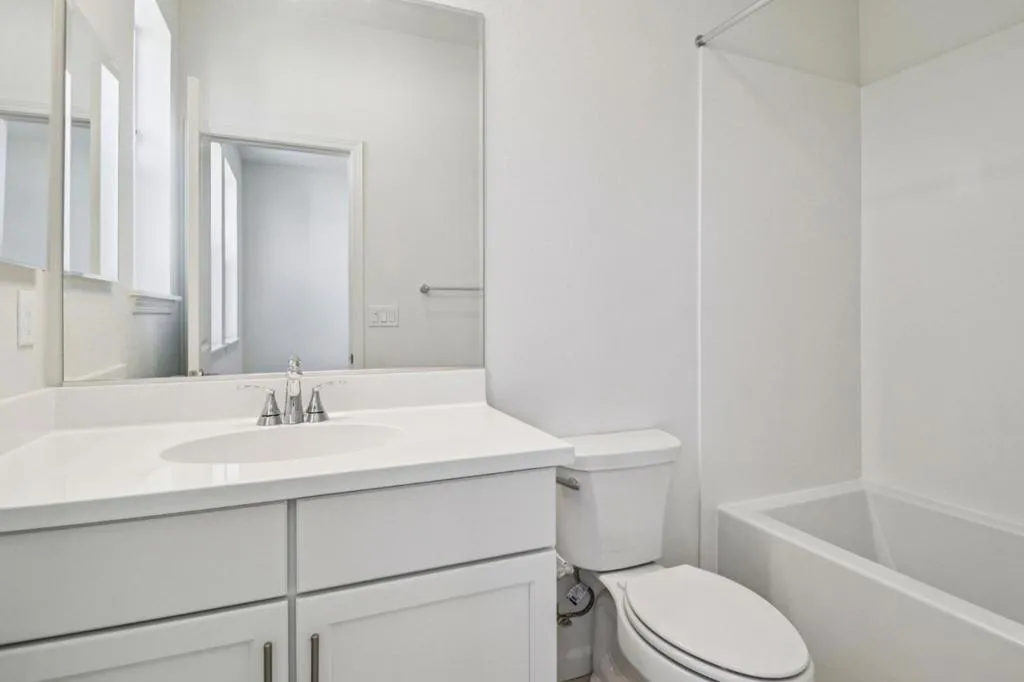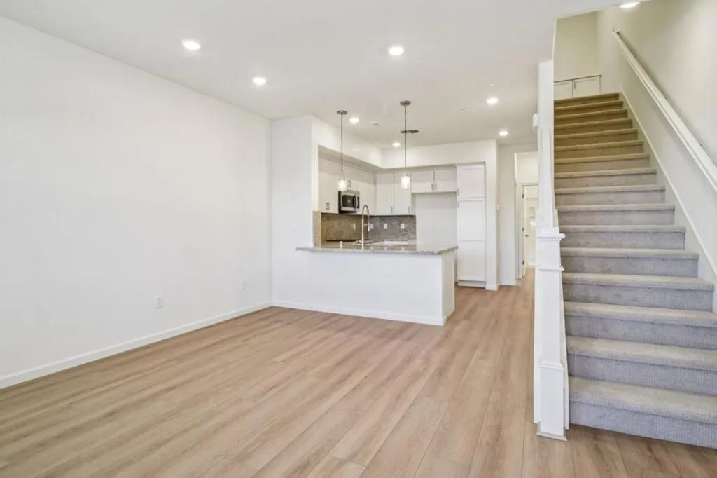 Family-friendly living along with the top-rated Castro Valley schools. Light-filled home featuring an open-concept with stylish white cabinetry throughout, gourmet kitchen complete with pendant and recessed lighting, stainless steel appliances, and granite countertops.. Dining and living areas open seamlessly through sliding glass doors to a private deck with scenic hill views. A convenient bedroom and full bath located on the main level. Upstairs, retreat to the expansive primary suite offering a spa-inspired bath with dual vanities. Additional highlights include luxury vinyl plank flooring, pre-wiring for a 50-amp electric vehicle charging station, an included solar energy system, and a limited 10-year warranty. This brand-new community features park-like play areas with seating and pergolas, bike racks, and repair station. Adjacent to a modern 16,000+ sq ft library, short walk to Castro Valley BART convenient to I-580, Tri Valley, San Jose, and Mid-Peninsula job centers. Close to recreation, including Chabot Regional Park and Cull Canyon Regional Recreation Area.