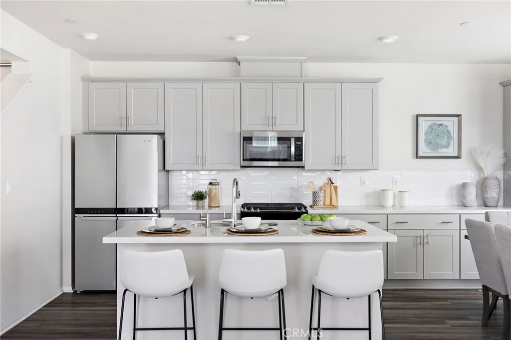 Welcome to 111 Homestead in the desirable Rienda Village of Rancho Mission Viejo. Built in 2022, this practically brand new, turnkey, light-filled home offers three bedrooms plus a versatile loft, two and a half bathrooms, and 1,889 sq ft of thoughtfully designed living space. Ideally located just steps from Boulder Pond & Playground, Ranch Camp at Rienda, and the Ranch Cove’s 20,000 sq ft lagoon-style pool this vibrant, family-friendly community is known for its energy, connection, and top-rated schools. The open-concept main level features a bright living area with large windows and abundant natural light, seamlessly flowing into the family room and kitchen—perfect for everyday living and entertaining. The modern kitchen is equipped with newer appliances, quartz countertops, custom backsplash, ample cabinetry, and a large center island ideal for meal prep and casual dining. Upstairs, the spacious primary suite has wonderful natural light and includes an ensuite bath with dual vanities, a walk-in shower, and a large, oversized walk-in closet. Two additional bedrooms share a full bathroom, and the upstairs loft provides flexible space for a home office, playroom, second family room, or media area. A convenient upstairs laundry room adds to the home’s functionality. Additional highlights include fully owned solar, an attached extra-wide 2-car garage with epoxy flooring, a downstairs powder room, and a private side yard perfect for outdoor dining and entertaining. Residents enjoy access to Rancho Mission Viejo’s exceptional amenities, including resort-style pools, fitness centers, parks, scenic trails, community farms, and more. Conveniently located near shopping, dining, and entertainment, with easy access to downtown San Juan Capistrano and the coastal destinations of Dana Point, San Clemente, and Laguna Beach. Don’t miss this opportunity to own a nearly new home in one of Orange County’s most sought-after master-planned communities.