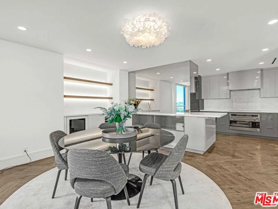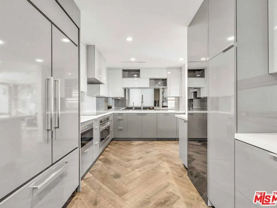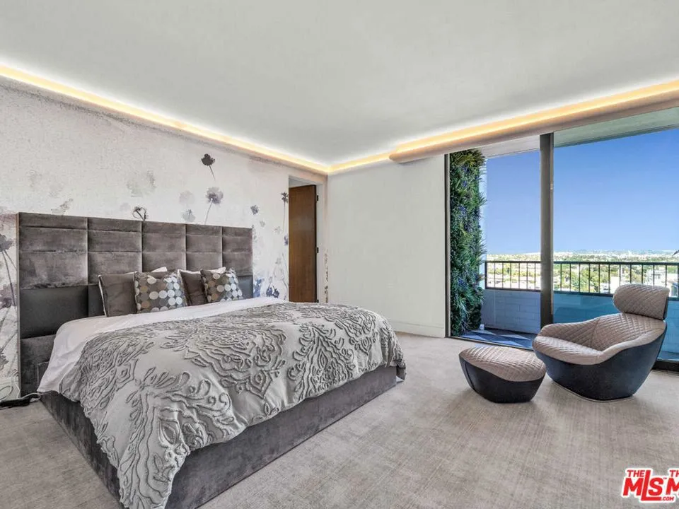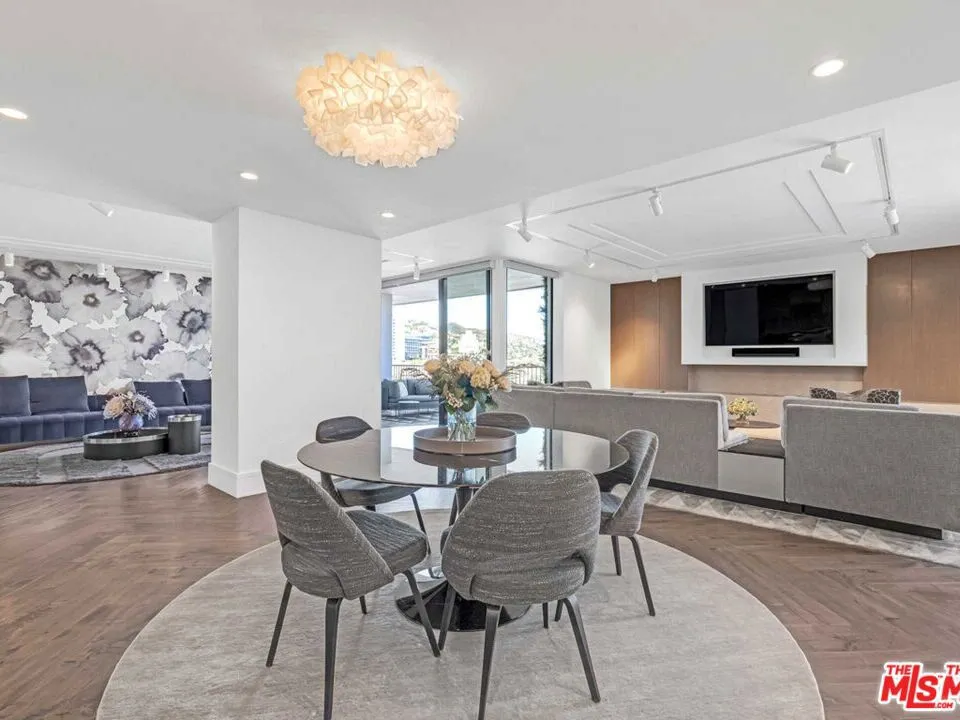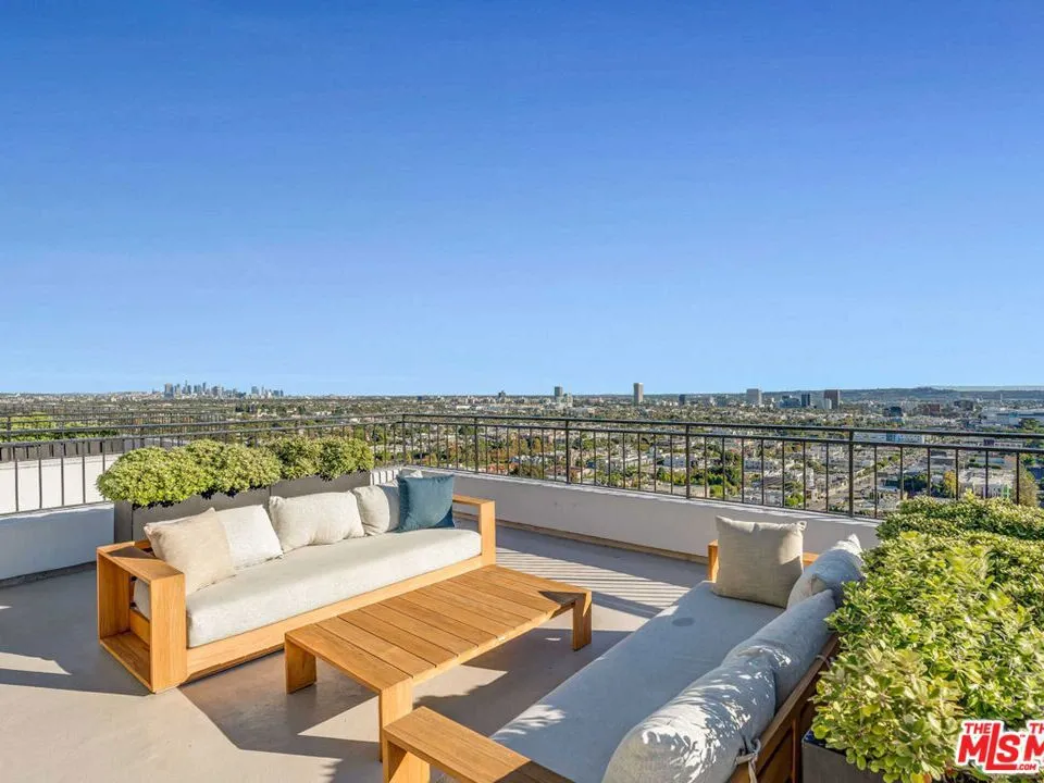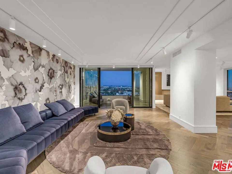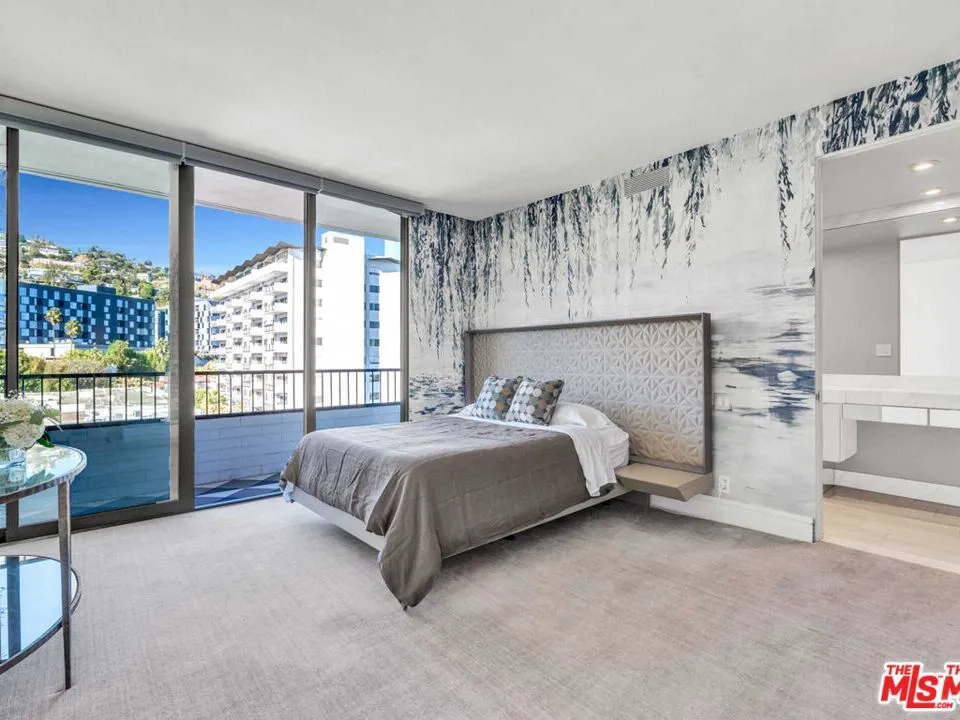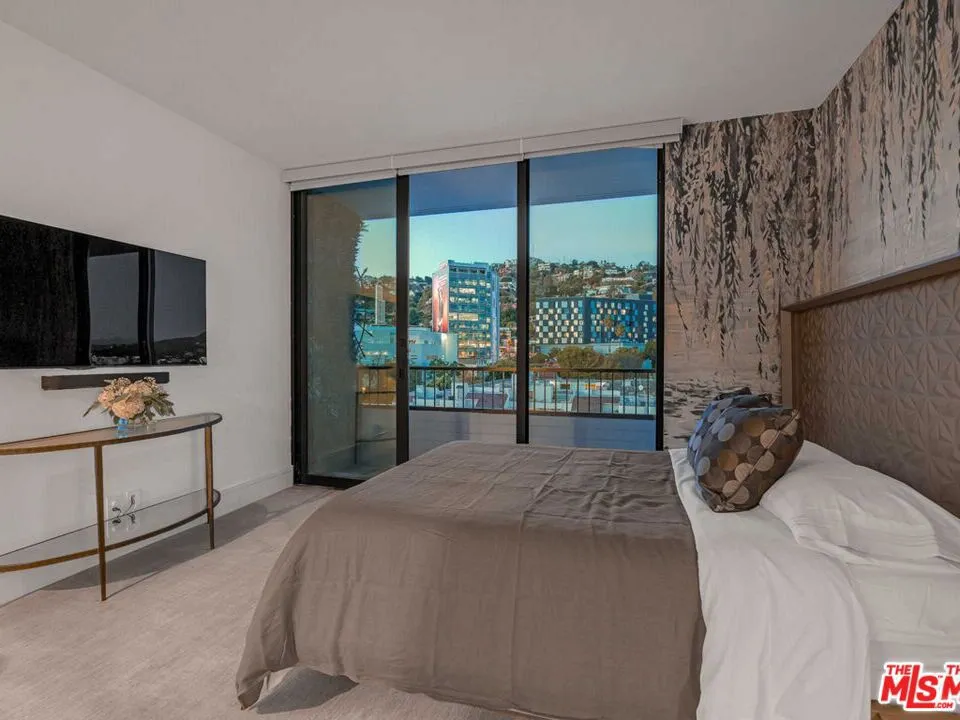 Meet Residence 1404, a meticulously designed home by renowned interior designer Kara Smith, offering a refined blend of sophistication and comfort within Empire West. Perched high on the 14th floor, this coveted northeast corner residence captures sweeping city and Hollywood Hills views from every room. The thoughtfully renovated 2-bedroom, 2.5-bath layout showcases imported fixtures, herringbone hardwood floors, custom electronic shades throughout, and custom designer wallpaper throughout. The gourmet kitchen is outfitted with Wolf and Sub-Zero appliances, a U-Line beverage fridge, and sleek custom cabinetry. The family room features a fireplace elegantly set beneath the TV, creating a warm ambiance. The elegant primary suite opens to the terrace overlooking the Hollywood Hills and includes electronic blackout shades, a spa-like bathroom with soaking tub, separate shower, and a custom walk-in closet. Residents of Empire West enjoy an elevated lifestyle with 24-hour security, a dedicated doorman, and valet parking. Indulge in exclusive amenities, including a rooftop pool and deck with firepit, and BBQ, and clubhouse with indoor and several outdoor living spaces that offer stunning 360-degree views of Los Angeles, a full-sized tennis court and fitness center. Experience modern luxury living at its finest in the most exceptional unit Empire West has to offer. Located in the heart of West Hollywood, adjacent to Sunset Blvd with all your trendy restaurants and nightlife, and centrally located to all of the best parts of Los Angeles! Also listed for sale, see MLS #26644211.