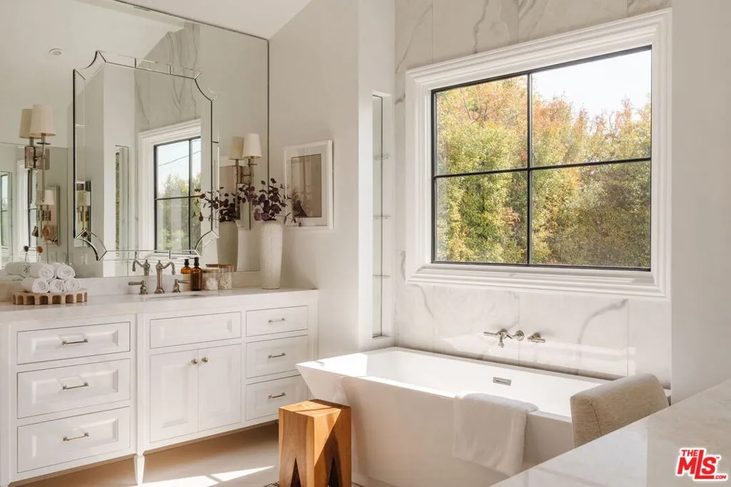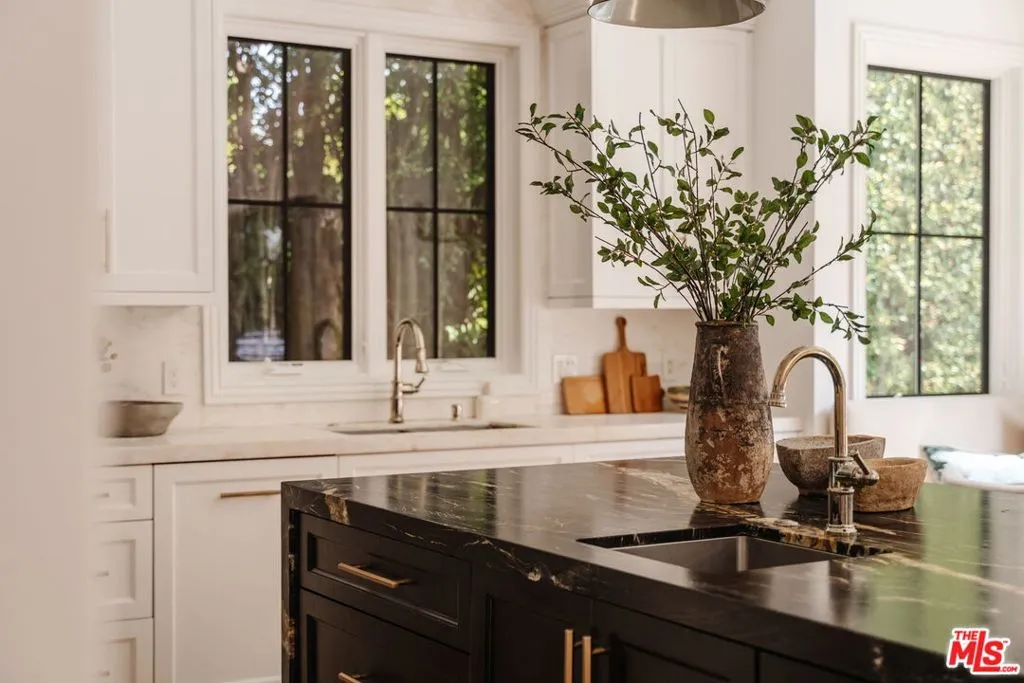 Situated in the heart of Cheviot Hills, 10560 Bradbury Road is a custom-designed Traditional residence that seamlessly blends timeless architectural charm with modern luxury, just moments from the area's premier amenities. Spanning 4,080 square feet of refined living space across two levels, this 5-bedroom, 6-bathroom home delivers an exceptional combination of comfort, style, and functionality. A classic brick facade introduces interiors rich with detail, including warm wood floors, coffered ceilings, and custom built-ins. Large windows fill the home with natural light, creating a bright and inviting atmosphere throughout. Designed with both entertaining and everyday living in mind, the main level features a gracious entry foyer that flows past formal living and dining rooms into an expansive great room. The family room, complete with built-ins, opens directly to the backyard, while the gourmet kitchen is outfitted with marble countertops, a contrasting leathered marble island with bar seating, premium Viking appliances including an 8-burner double oven range, dual dishwashers, a walk-in pantry, and a sunlit breakfast banquette. Additional main-level amenities include a dedicated office, wine cellar, powder room, and a guest suite. Upstairs, four en suite bedrooms offer privacy and comfort, including a spacious primary suite with vaulted ceilings, a private balcony overlooking the backyard, and a generous walk-in closet. The spa-like primary bathroom features dual vanities, a makeup station, a window-lined soaking tub, and an oversized marble shower. A convenient upstairs laundry room completes the level. The private backyard is surrounded by mature privacy hedging and designed for seamless indoor-outdoor living, featuring a sparkling pool with cover, built-in BBQ, turf lawn, and multiple areas for lounging or dining al fresco. Additional highlights include integrated surround sound, a security system with cameras, solar panels, and an attached two-car garage with epoxy flooring and direct home access. Located in a prime Cheviot Hills neighborhood with a peaceful residential feel, yet close to Rancho Park Golf Course, Westfield Century City, and the shops and dining along Pico Boulevard, this home offers the best of Los Angeles living in one of its most desirable communities.