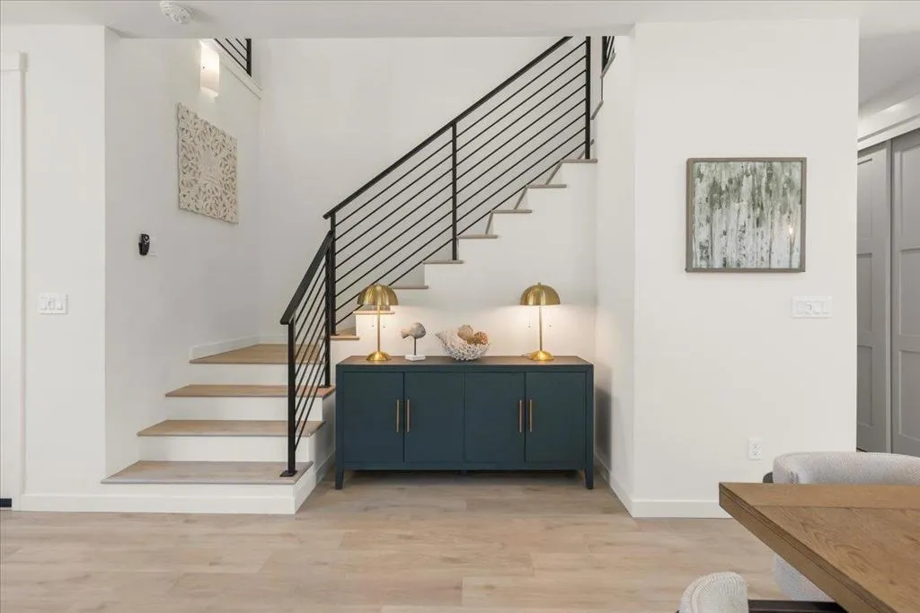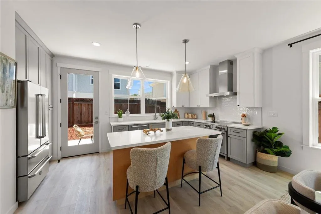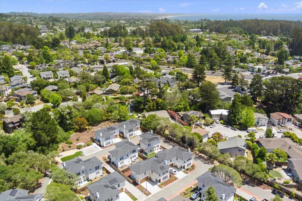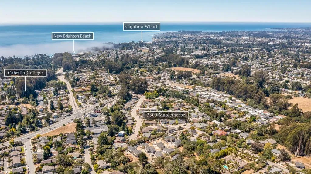 Built in 2022, Maplethorpe Gardens is a newer private community in a bucolic Soquel setting. This small neighborhood has a welcoming feel w/families & kids who enjoy the peaceful surroundings & shared open space. Located about a mile to New Brighton Beach, Capitola Beach, Soquel Village & nearby shops, restaurants & amenities, the community offers an ideal balance of tranquility & convenience. These thoughtfully designed green, all electric homes blend Craftsman architecture w/light Scandinavian influences. Interiors feature high ceilings, fireplaces, solar & quality finishes throughout. Light wood flooring, crisp white walls & dark accents create a clean, modern aesthetic filled w/natural light. Chef's kitchen w/hardwood cabinetry, quartz counters, custom tile backsplash, large island, cast iron sink & Italian Bertazzoni induction range & appliances. Bathrooms feature custom tile & polished chrome fixtures. Located in the Soquel School District & surrounded by mature oak trees & open space w/a creek running through the community. Photos are 14 Staggi which backs up to 103 Staggi, a mirrored floorplan. Please come see it in person!