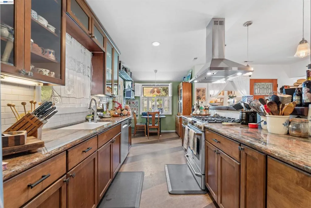 The quintessential Niles home! A polished gem that has been updated and expanded from its historic footprint, with a gorgeous garden to match. A total remodel resulted in an added en suite and a cook's dream kitchen with granite counters, custom baking center, pull-outs, and prep areas for large parties; remodeled bathrooms with a stunning skylit shower; and a huge added bedroom which opens to a generous porch overlooking a garden walk through perennial beds surrounded by apricot, peach, pluot, citrus and birch trees. Fruit ripening on the vines and the fragrance of jasmine, roses and sweet olive graces your meander. Homes with this blend of single-level character and sophistication are rarely available anywhere but especially in Niles, where folks love the community and climate so much they tend to stay. Fully insulated with energy efficient appliances, triple pane windows, new electric panel, and tankless water heater. Lot has designed space with separate access for ADU, tiny house, mobile home or 5th wheel. Walk a few short blocks to the Saturday Farmer's market in historic downtown or enjoy the many shops, restaurants, museums and more. A few short blocks will also take you to the Alameda Creek Trail for walking, running, hiking and riding from the Canyon to the Bay where you can enjoy the many parks and lakes along the way. A rare find with seamless integration of modern living and natural surroundings.