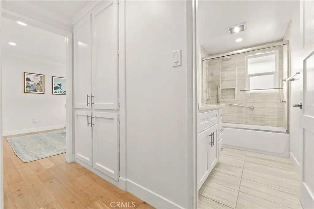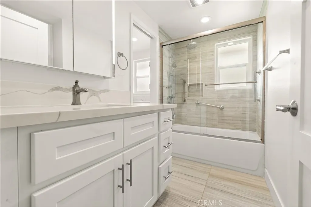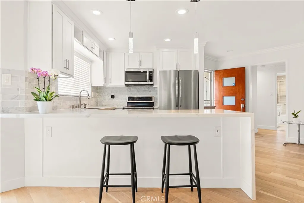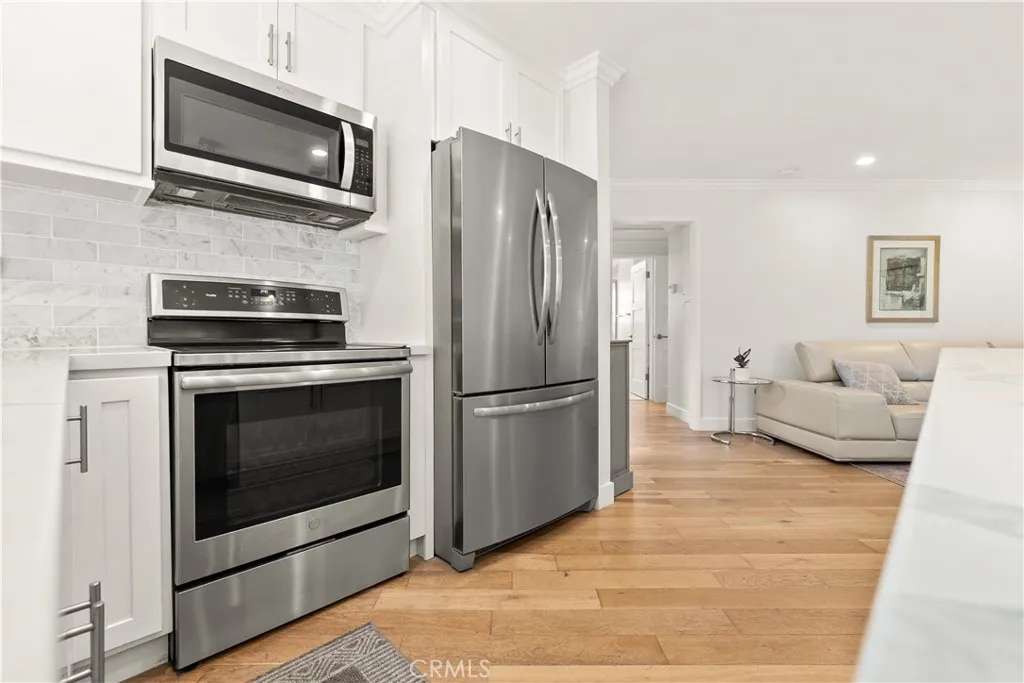 Welcome to 22753 Nadine Circle, a truly exceptional and fully remodeled" Bungalow ", located in the highly sought after New Horizons premier 55+ adult community. This is where resort style living meets every day city conveniences. What makes this bungalow especially rare is its extensive, fully permitted renovation, including the costly removal of a structural wall to create a true open-concept kitchen and living area -a major upgrade that is seldom undertaken in this community. The result is a brighter, more expansive and beautifully flowing living space that feels far more modern than the typical floor plan. Natural light and golf course views enhance the sense of openness, with the living room and patio enjoying a peaceful outlook over the cousee. The interior of this rare bungalow has been thoughtfully upgraded with quartz countertops, shaker cabinets with soft close drawers, recessed lighting, crown molding, smooth ceilings, engineered wood flooring, custom plantation shutters, newer HVAC (heat only),newly tiled fireplace, newer appliances and stylish modern finishes throughout. The newly tiled patios and lawn areas offer generous space for gardening, entertaining or simply enjoying the cool South Bay Breeze. All the improvements were fully permitted offering both quality and peace of mind. This bungalow is truly move in ready. Ideally located near the golf course and sports center with a full gym, sauna, spa, warm water pool, tennis and pickleball court, craft and ceramic studio and the woodworking shop. With the garage just steps away, this is a rare opportunity to own one of the New Horizons most distinctive and thoughtfully upgraded bungalow homes.