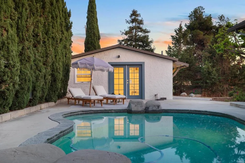 Welcome to 1510 Melrose Way—an extensively renovated Vista home set on a private, over half-acre lot with owned solar and exceptional indoor-outdoor living. Tucked away with a sense of space and seclusion, this property offers a rare combination of modern upgrades and usable land—ideal for buyers seeking both comfort and flexibility. Inside, the home features 3 bedrooms, 2.5 bathrooms, and an optional bonus space, all thoughtfully redesigned with a clean, contemporary aesthetic. The upgraded kitchen serves as the centerpiece of the home, showcasing quartz countertops, a stylish tile backsplash, modern oak shaker cabinetry, and a full appliance package—perfect for everyday living and entertaining alike. Throughout the home, you’ll find luxury vinyl plank flooring, updated lighting, and beautifully refreshed bathrooms with quartz surfaces and designer finishes, creating a cohesive and move-in ready feel. A standout feature of the property is the detached pool house (approximately 200 sq ft), complete with its own mini split system and a mini kitchen with sink and refrigerator. This versatile space is ideal for guests, a home office, gym, or creative studio—adding meaningful flexibility to the property. The home also includes a functional one-car garage, a large storage shed for additional utility or potential use, and generous driveway space. Step outside to your private backyard retreat featuring an existing pool, refreshed landscaping with irrigation, and ample room to expand, garden, or simply enjoy the peaceful surroundings. The size and layout of the lot offer a level of privacy and opportunity that is increasingly hard to find. With owned solar, thoughtful upgrades throughout, and a versatile layout on a spacious lot, 1510 Melrose Way delivers a unique opportunity to enjoy modern living with room to grow.