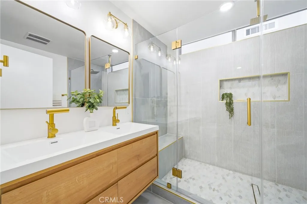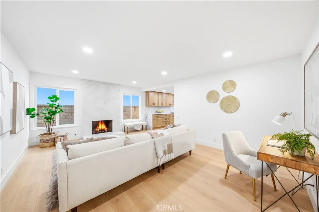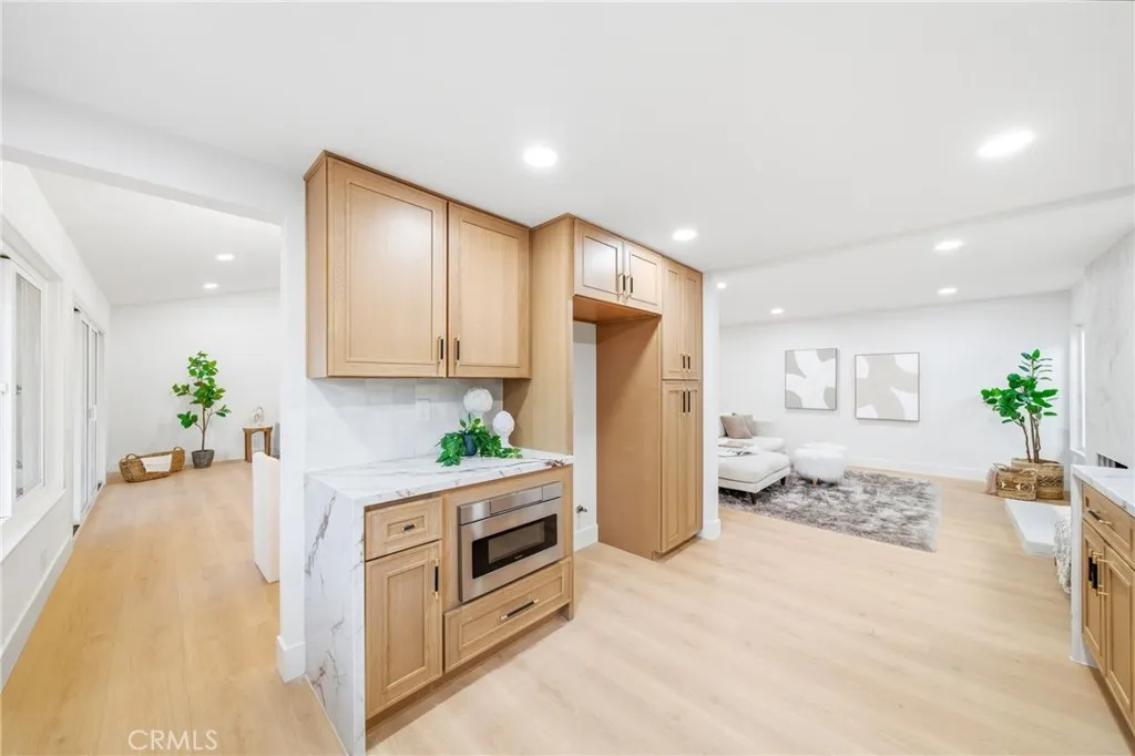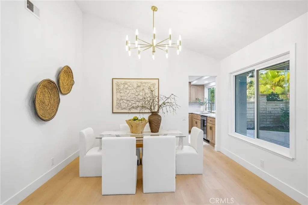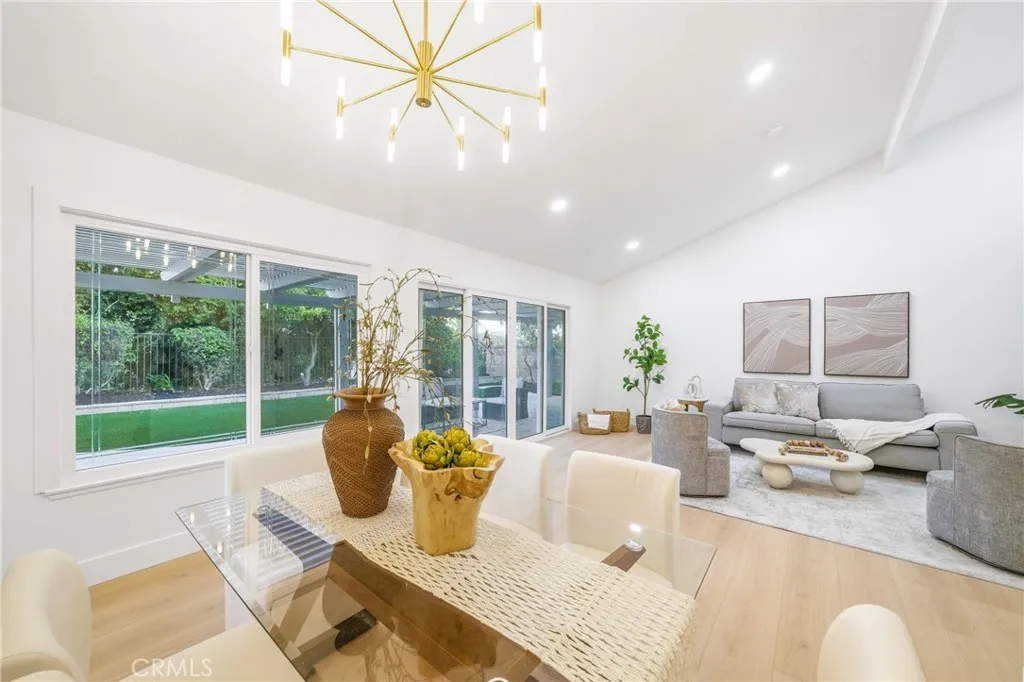 Freshly renovated is this single story 3 Bed, 2 Bath Single level situated in the highly desirable Lake Mission Viejo adjacent community of Madrid North. Starting with great curb appeal that includes a high-end synthetic turf front yard, custom brick hardscape and highly manicured planter beds. Stepping through the elegant stained glass entry you are greeted by a welcoming foyer that looks through the vaulted ceilings living room to the entertainer’s yard space beyond. With great light, all new wide plank wood flooring, all new finishes and ample space the living room has a large center-open glass door out to the covered patio and turf lawn backyard allowing for enviable indoor/outdoor living. An adjacent updated dining room has great light from a large window and beyond is a fully renovated chef’s kitchen with all new everything. Featuring quartz countertops, new cabinetry, new stainless steel appliances, and new lighting, hardware, fixtures and finishes this exceptional space is light, bright and is sure to be where the magic happens. Beyond the kitchen, and circling back to the entry, is a spacious family room with a captivating refinished focal point fireplace, and together with the kitchen, this will be the heart of the home where everyone with gather. From here there is also garage access and a hallway leads back to the entry and through to the bedrooms wing where you’ll find two light and bright guest bedrooms each with great light from large windows with views out to the front yard. Opposite, and with private access to the back deck through another set of center-open glass doors, is the primary suite. Large with room for a small seating area, and showcasing great closet space, the primary suite is an enticing escape at the back corner of the home. Featuring a spa-like ensuite with an all-new floating dual sink vanity, a completely redone step-in shower and all new lighting fixtures and finishes this represents and exceptional refined retreat. A fully updated guest bath completes the interior spaces. The backyard features a stamped concrete covered patio with room for multiple seating areas, a large turf lawn and multiple mature highly manicured planter beds. The perfect place to play, entertain or garden. Located on a fantastic interior street far from major roadways you are just minutes from great schools, fantastic shopping, dining and entertainment, and you are sure to enjoy Lake Mission Viejo membership as well! This is the one! Welcome Home!