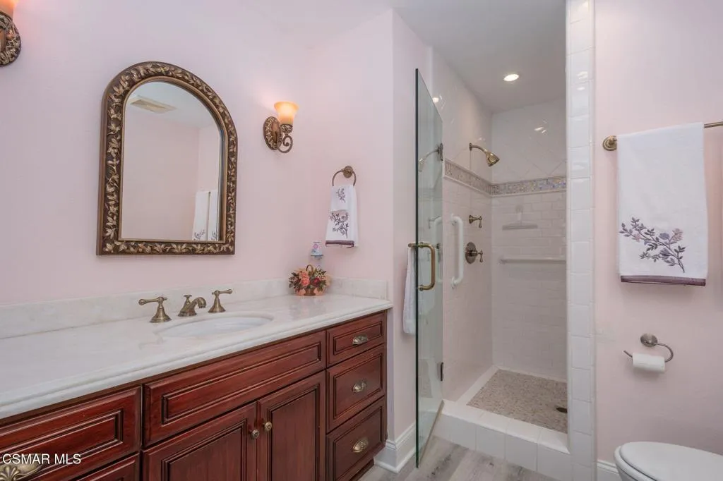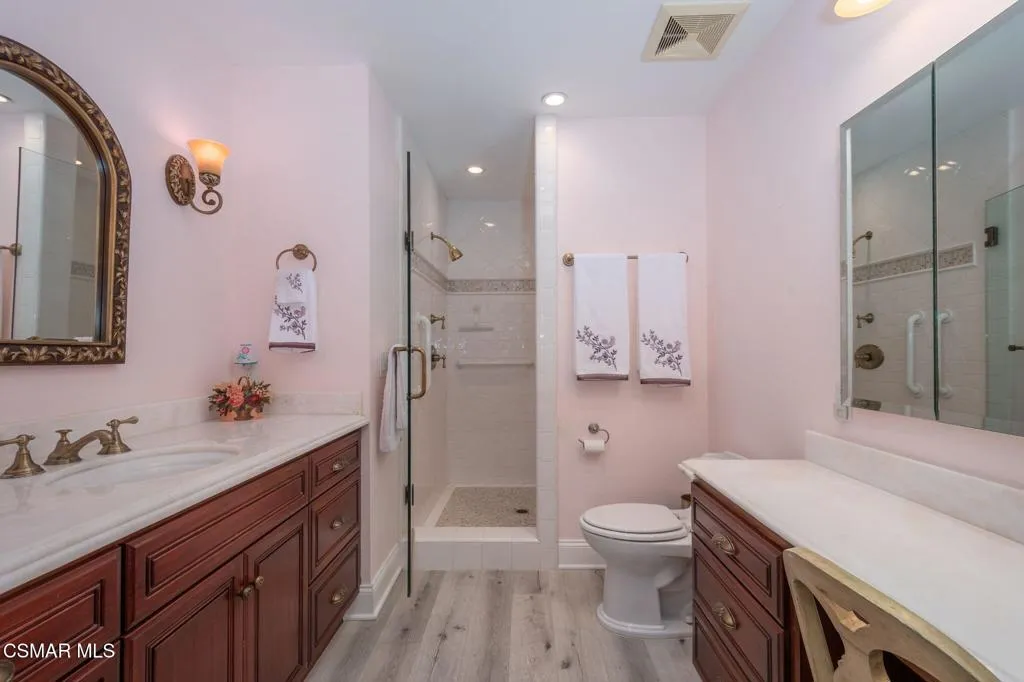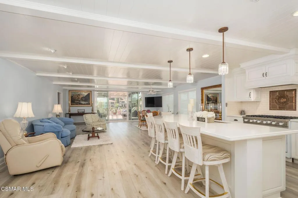 Welcome to the SUPREME Lakefront LOCATION in the Northshore tract with unrivaled panoramic views of the lake & Santa Monica Mountain! Step into effortless lakefront living in this beautifully remodeled home featuring a bright open concept floorplan and thoughtful finishes throughout this 3 Bedroom & 2.5 bath home. This home is almost 1800 square feet with one of the largest lots in Northshore. The living room, kitchen and primary suite features striking accent ceilings adding character and dimension! The kitchen features a large corian bar for eating and socializing. There is also ample counter workspace for cook prep & cabinet lighting. There is a powder room convenient for guests and inside laundry as well. This home combines convenience, flexibility and a great location. Spectacular outdoor living with a large private patio area to enjoy the incredible lakefront views and fabulous sunsets!! Enjoy boating on the lake with your own private dock!! Great end of cul de sac location next to pool, spa, clubhouse, beach etc.