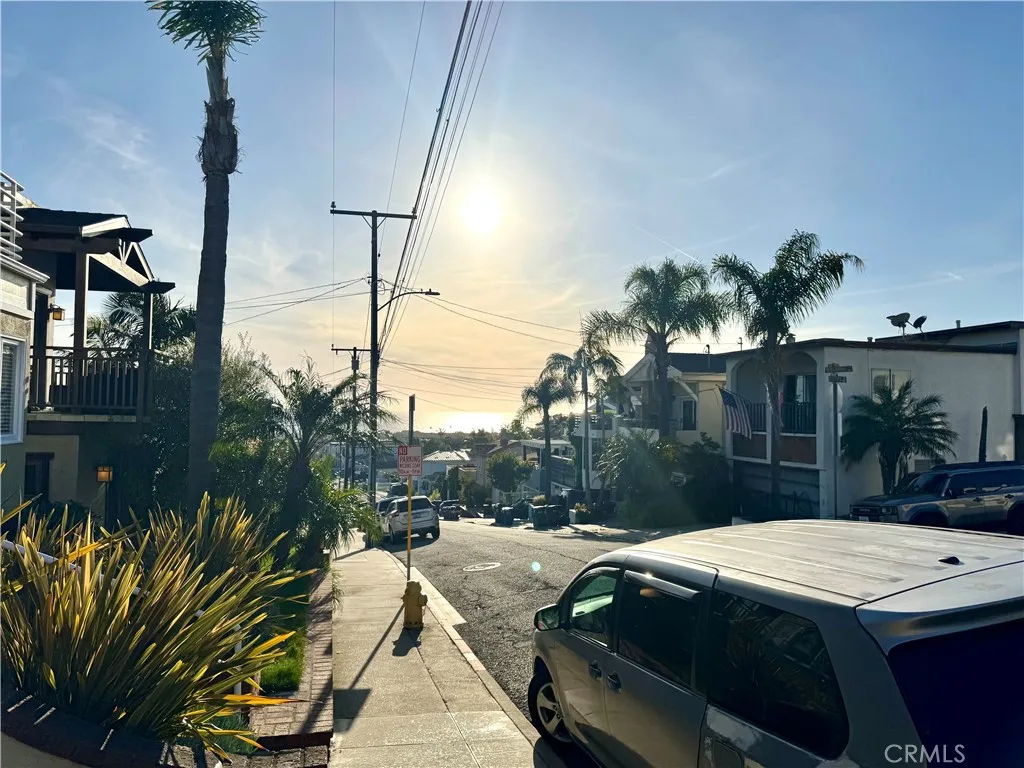 Experience coastal living in this two-story unit ideally situated in a prime Hermosa Beach location, featuring ocean views and all utilities included. Flexible floor plan with small bedroom and bath downstairs and oversized upstairs primary bedroom with en-suite bath and large separate office area. Interior has newer flooring, new carpet, and fresh paint throughout. Living room features open beam ceiling with two skylights for great natural light. Separate dining room with mirrored wall, plus dedicated laundry room. Kitchen includes refrigerator, range, dishwasher, and microwave; washer and dryer also provided. Lighted ceiling fans in both bedrooms and dining area. One-car garage with opener and is wired for EV charging. Convenient to beach, shops, and dining.
