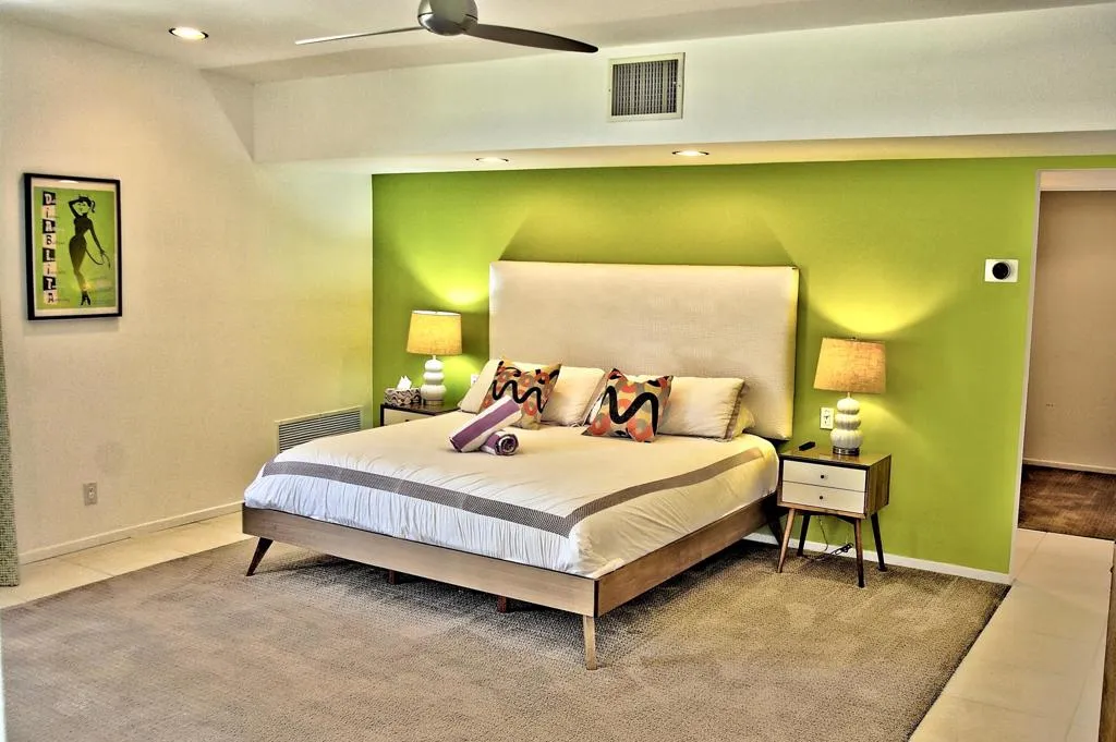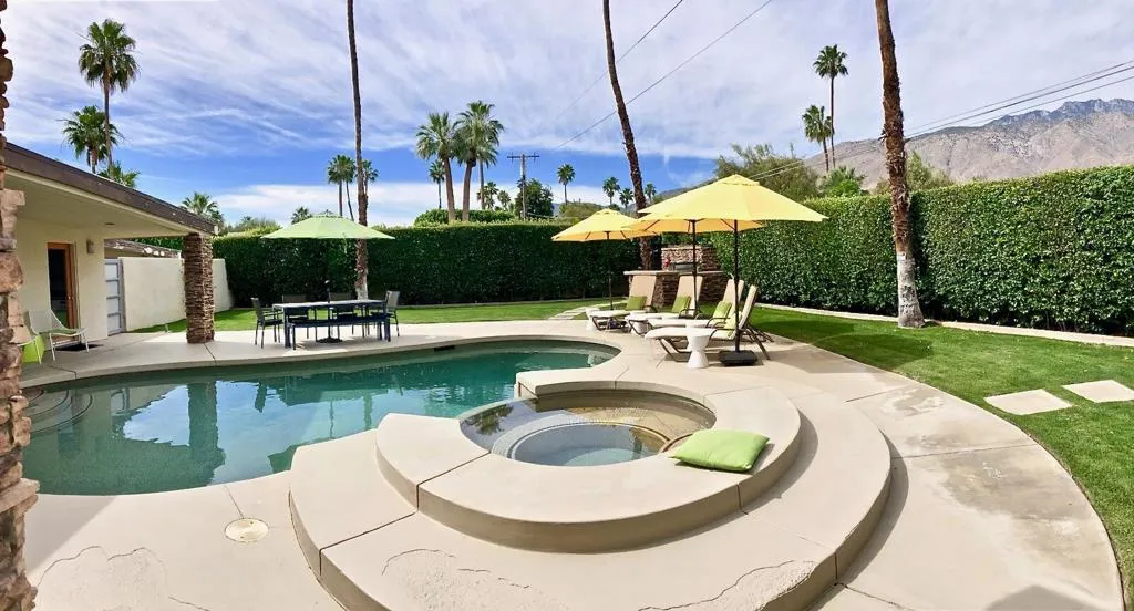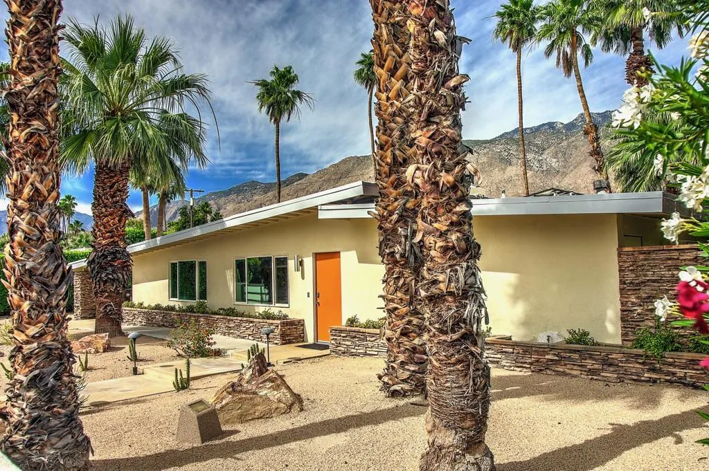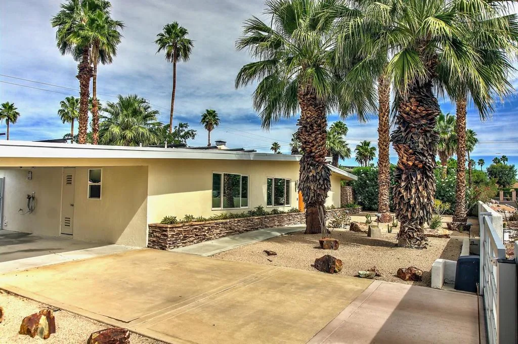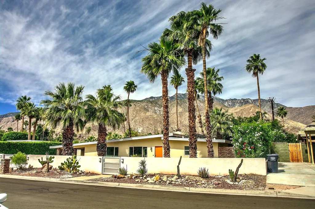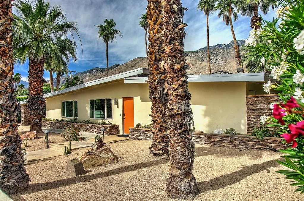 This mid-century modern gem in the El Mirador neighborhood is quintessential desert living. This home offers a rare blend of historical flair and updated luxury, perfect as a private retreat or a proven investment property. This home boasts an open-concept design with high ceilings and a stacked-stone gas fireplace. Strategically placed windows and sliders provide seamless indoor-outdoor flow and prolific views of Mt. San Jacinto. A ''chef's/cook's kitchen'' features granite countertops, stainless steel appliances (gas range and oven), and dual sinks.Three divinely separated bedrooms, each with its own bathroom makes for easy living with multiple occupants. The Primary Suite Features generous closet space, dual vanities, a large walk-in shower, and an extra-large soaking tub. The larger of the Secondary bedrooms has its own private patio and private bathroom. While the slightly smaller Secondary bedroom is well separated from the rest of the living area and other bedrooms, it has it's own bathroom with shower and is located near the large laundry room with full-size W/D.The backyard is designed for the ultimate Palm Springs lifestyle: A Saltwater Pebble-Tec Pool & Spa features a cascading waterfall effect. Replete with a built-in natural gas BBQ and bar all the while boasting magnificent views of the surrounding mountains. A large linear fire table with marble benches under shade trees creates its own ambiance in a separate part of the yard.Located on fee land (you own it), this home includes a low-cost, leased solar system, and has a very successful history as a long-term (28+ day) vacation rental when not being used by the current owners. The home is tucked into a quiet cul-de-sac in the upscale El Mirador neighborhood just minutes from the Uptown Design District, Ruth Hardy Park (tennis and pickleball), and downtown dining. Nearby hiking trails and public golf courses along with convenient access to the CV Link provides significant opportunities for recreation.