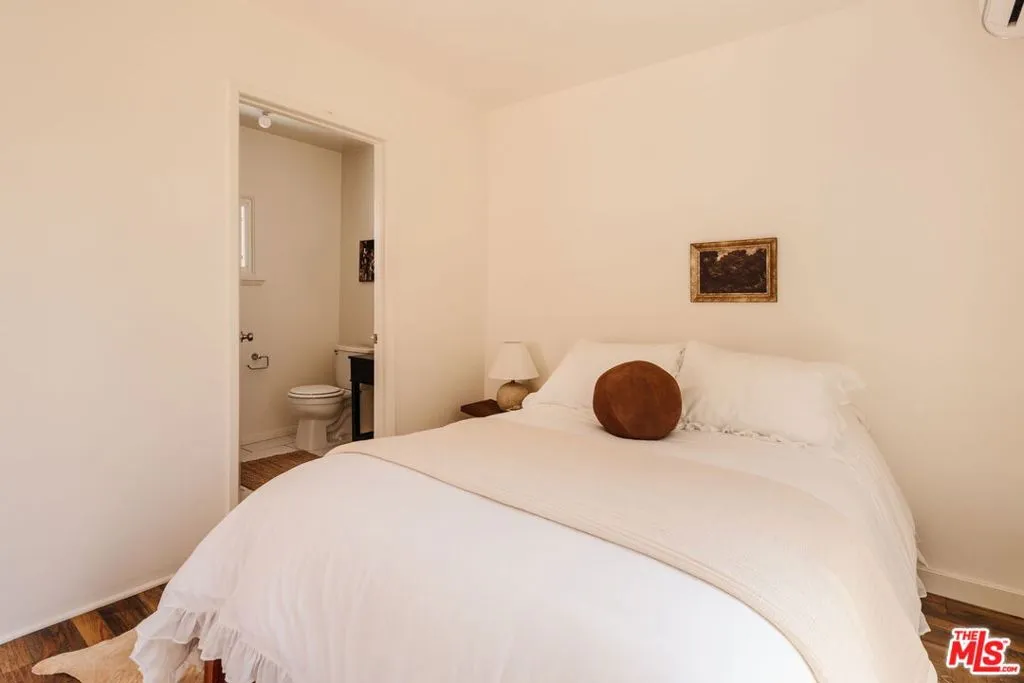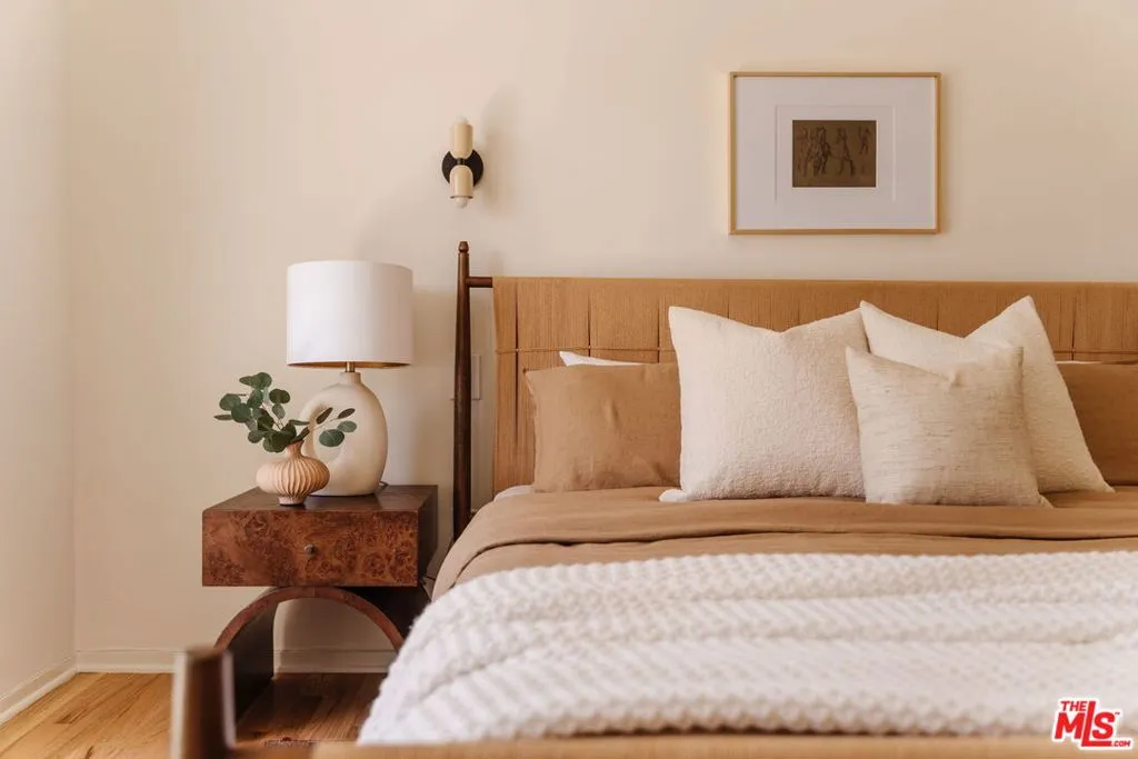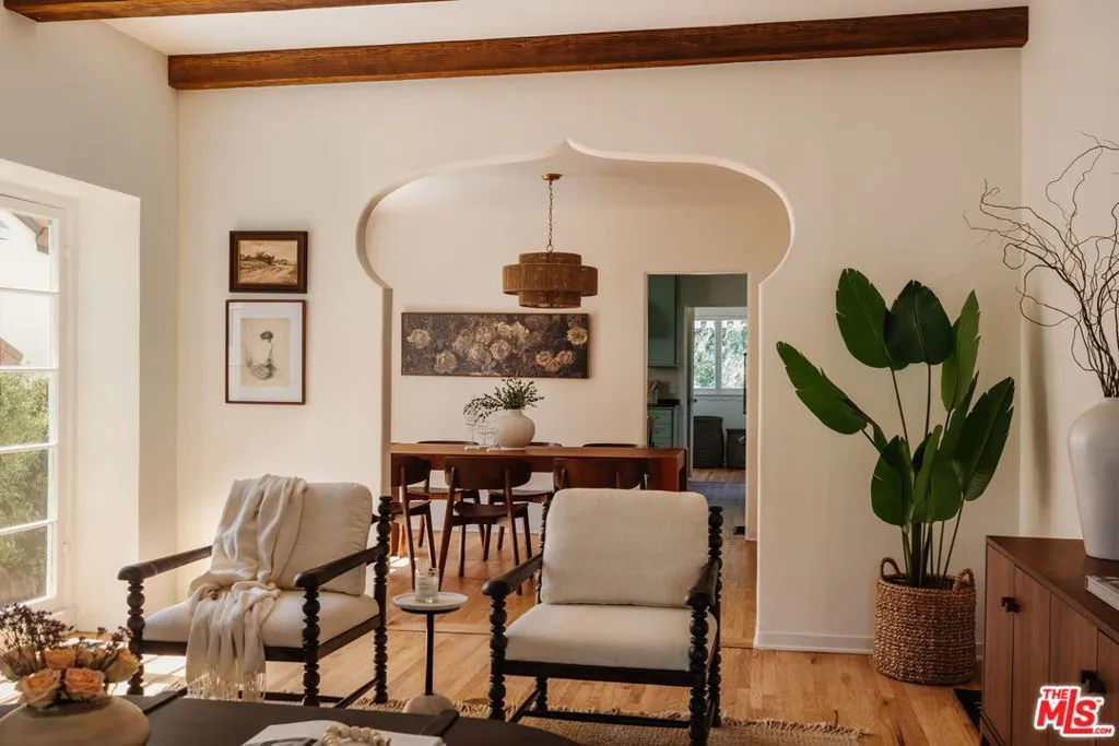Tucked away on a quiet, tree-lined street in Atwater Village, this thoughtfully updated 1936 Craftsman bungalow blends timeless character with modern comforts on a spacious, beautifully landscaped lot. A picket fence and lush plantings frame the covered front porch, leading into bright interiors filled with natural light. The living room is both warm and inviting, with French windows, a beamed ceiling, a decorative fireplace, and a striking Moorish-inspired arch that connects seamlessly to the dining area and kitchen. The kitchen is light-filled and well-appointed with Carrera and stone countertops, open shelving, and generous storage & cabinets. Two well-proportioned bedrooms share an updated hall bath with a clawfoot tub, while the primary bedroom opens to a private deck overlooking the backyard. A second full bath and dedicated laundry area complete the main house. Outside, a 266 sq ft bonus space with a three-quarter bath is filled with natural light and offers flexibility for a creative studio, home office, or guest space. The backyard is private and thoughtfully designed, with drought-tolerant landscaping, mature trees, and multiple areas for seating and gathering. A long driveway provides ample off-street parking. Ideally located just moments from Atwater favorites like Spina, Proof Bakery, and All'Acqua, this is a classic Craftsman offering with space, versatility, and a strong connection to one of LA's most loved neighborhoods.