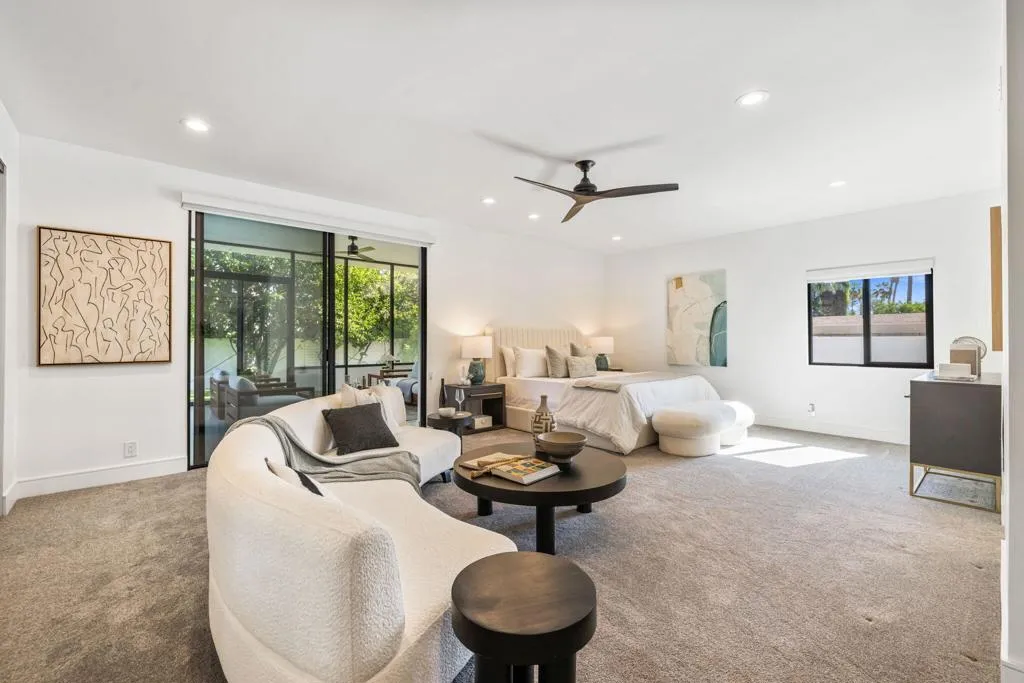 INDIAN WELLS: **OPEN THIS SATURDAY 4/18 2:00PM-3:30PM. COME SEE!!** Fully reimagined and thoughtfully redesigned, this modern Indian Wells residence delivers clean lines, open living, and seamless indoor-outdoor flow on an oversized lot in a prime south-of-111 location. New custom glass doors frame dramatic views of Eisenhower Mountain and flood the home with natural light, setting the tone for a bright, contemporary interior.The heart of the home is a beautifully updated kitchen featuring stone countertops, custom cabinetry, open shelving, and high-end appliances, all flowing into an expansive great room anchored by a striking modern fireplace and a sleek granite-wrapped bar with integrated wine fridge--perfect for entertaining.Three large sliding glass doors open to the backyard, enhancing the connection between interior and exterior living. The spacious primary suite offers direct access to a versatile outdoor atrium space--ideal as a gym, art studio, or potential fourth bedroom/casita.All bathrooms have been remodeled or expanded with a clean, modern aesthetic, complementing the home's architectural character. Additional upgrades include new windows throughout, a new electrical panel with EV capability, and a reworked roof with foam and seal.Out back, enjoy a private, lush setting with a resurfaced saltwater pool, mature landscaping, and multiple seating areas--perfect for relaxing or entertaining.Located in non-gated Indian Wells, residents benefit from the coveted Indian Wells Resident Card, offering preferred access and discounts at the Indian Wells Golf Resort, tennis, dining, and more.Move-in ready, design-forward, and ideally located--this is exceptional value in Indian Wells.