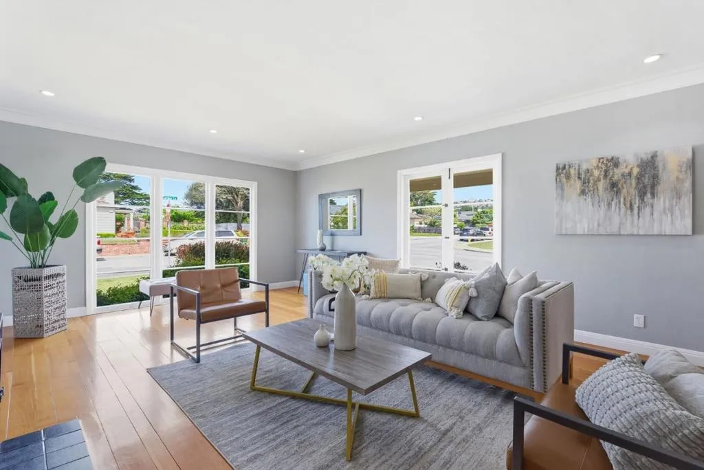 A lovely Broadmoor home with a wealth of natural light and impressive architectural detail. Primary bedroom suite, remodeled baths, lustrous hardwood floors, built-n cabinets, arched doorways, gorgeous crown moldings, extensive basement storage, and deep 2-car garage. Freshly painted inside and beautifully landscaped out, this home boasts a convenient location offering easy access to restaurants, shops, public transit, Hwy 280, San Francisco and the Coast.
