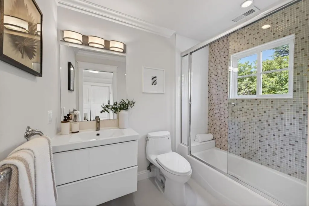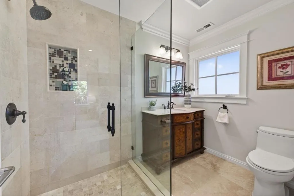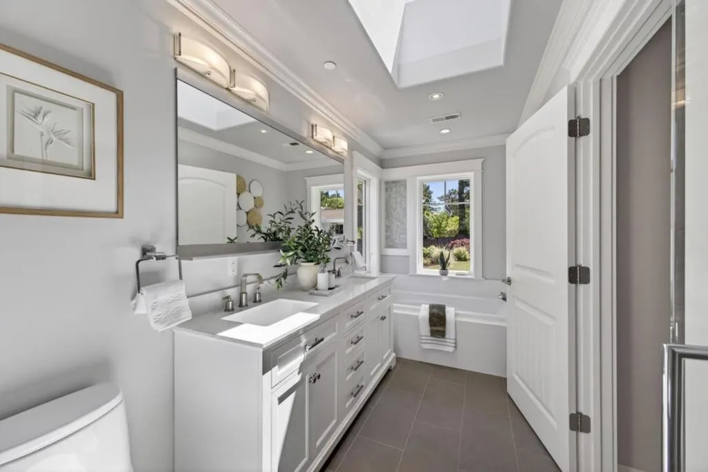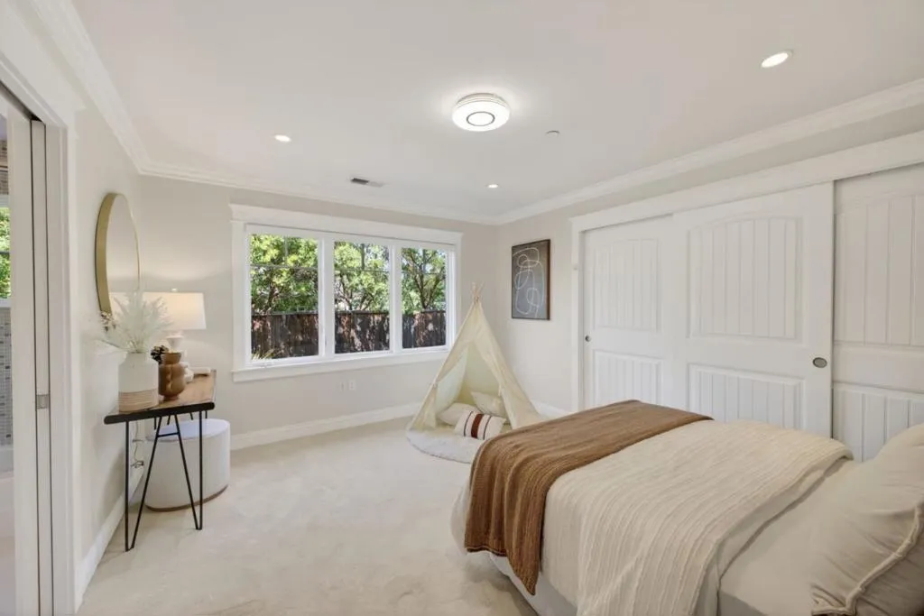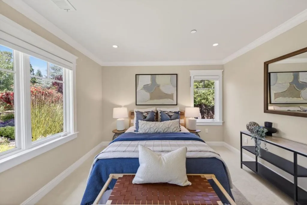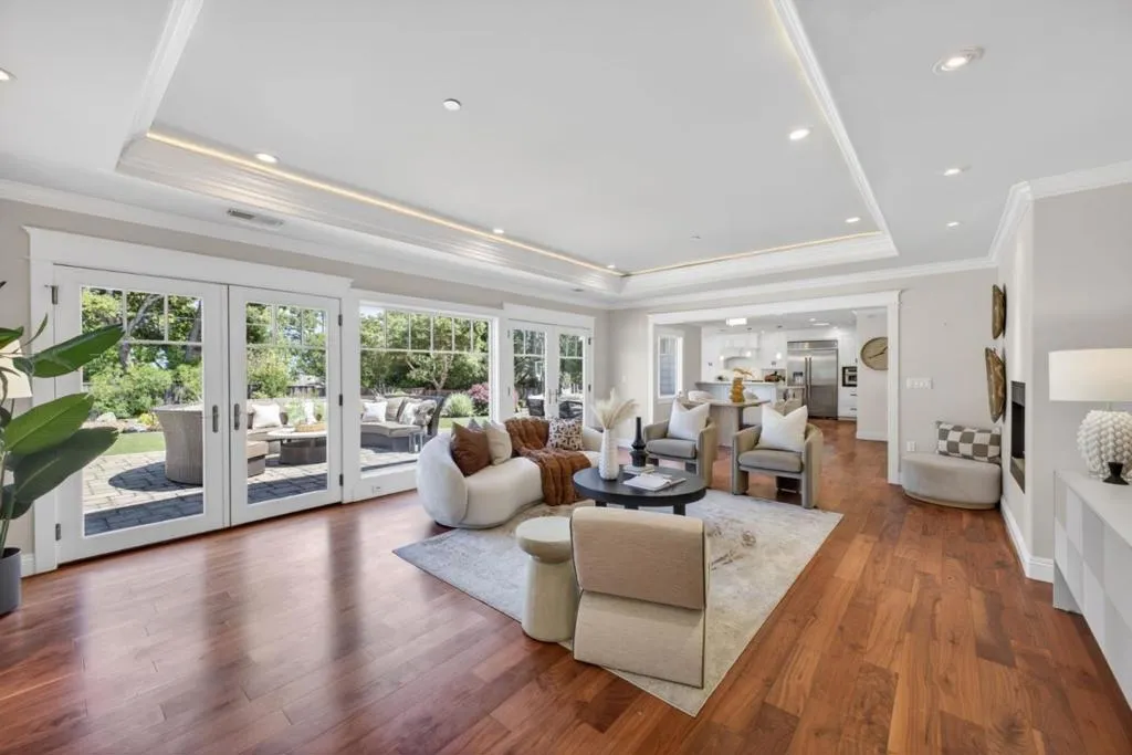 A MUST SEE, BEST OF THE BEST! Set on a flat, park-like half-acre lot, this beautifully renovated and expanded single-story home blends timeless elegance with modern functionality. A circular paver driveway leads to a covered front porch while also extending to a spacious motor court, providing access to a side-entry three-car garage with 2 Tesla EV chargers. Inside, hardwood floors and recessed lighting enhance a thoughtfully designed layout. A formal living room with a dual-sided fireplace--shared with the family room--flows into the formal dining area. The updated chef's kitchen features quartz countertops, a large island, stainless-steel appliances, abundant cabinetry, and a breakfast nook with a nearby powder room. French doors in the family room open to an expansive patio for seamless indoor-outdoor living. The private wing offers four bedrooms and four updated baths, including a luxurious primary suite with backyard access, dual walk-in closets, & a spa-like bath with soaking tub and glass shower. Grounds include turf lawns, a studio with kitchenette and powder room, a deck, and a pickleball court beneath a sport surface. Solar panels and a Tesla Powerwall add efficiency. 1510 Kingswood Dr represents the very best of Hillsborough living. Don't miss this turnkey masterpiece.
