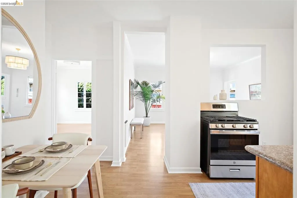 Top-floor SF-style condo in a charming 4-unit building, ideally located in Adams Point, just moments to Grand Lake, Pill Hill & Piedmont Ave amenities. Unit #4 lives like a classic SF flat with its own private garage, a rare find in this central Oakland location. Light-filled interior with a functional layout, comfortable flow & hardwood flooring throughout. Freshly painted with stylish lighting, featuring large bedrooms, a renovated bathroom, & an open kitchen with eat-in dining nook. Shared community garden & additional storage. Set in a neighborhood seeing continued growth & investment, offering a compelling blend of convenience & lifestyle, this home checks many boxes at an incredible price.