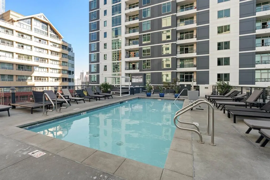 Picturesque oversized windows fill this southeast corner residence with natural light while showcasing vibrant city views, placing you near the heart of Little Italy. A private balcony offers the perfect vantage point to take it all in, overlooking the 8th-floor pool deck and skyline beyond. The home lives bright and open, feeling larger than its footprint with a seamless flow from the living area to the outdoor space—ideal for both relaxing and entertaining. A thoughtfully placed mirrored wall enhances depth and light, while crown molding and luxury vinyl plank flooring add a warm, finished touch throughout. The well-appointed kitchen features granite countertops and upgraded stainless steel appliances, blending style with everyday functionality. The corner bedroom serves as a comfortable retreat, complete with large windows, city views, and ample wall space for artwork or design personalization. Additional highlights include Acqua Vista’s top-notch amenities with fitness center, pool, spa, 24hr attendant, Amazon Locker, conference room and more! Secured valet parking space is included for convenience and ease. Just down the street, enjoy immediate access to the waterfront at the Embarcadero, Little Italy’s renowned dining and shops, and all the best of Downtown living A home that delivers on both lifestyle and location—comfortable, connected, and distinctly urban. Downtown San Diego's Little Italy is a vibrant culinary and cultural hotspot, beloved for its rich history and modern flairs. Classic restaurants like Mona Lisa and Civico 1845, alongside new favorites Ironside, Juniper & Ivy, and Craft & Commerce, make it a go-to for local foodies. The neighborhood is filled with cafes, bakeries, boutiques, bars, and wine shops, perfect for an evening wander. The Little Italy Association also keeps the calendar full with community events such as art walks, car shows, the yearly Little Italy Festa, and a vibrant Farmers Market on Wednesdays and Saturdays. Don’t forget the NoLi Art & Design District, a vibrant hub that includes a collection of retail outlets, designer boutiques, and art galleries, all boasting unique home items and rare discoveries to help you curate the perfect ambiance for your new residence. . With the airport just minutes away, frequent travel becomes effortlessly convenient to boot. Acqua Vista features complimentary valet parking for residents, 24/7 security and lobby attendants, a fitness center, and an 8th floor pool and spa deck, barbecues and lounge area. Residents can also take advantage of the community’s electric vehicle charging stations. *Have a 2nd vehicle? The HOA leases additional parking spaces too!*