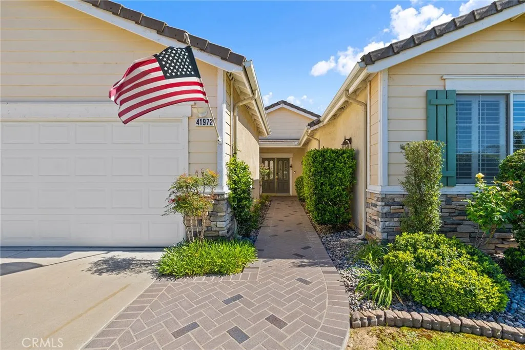 Single-story | 3-car garage | West Murrieta | Grizzly Ridge community | This charming one story has a wonderful layout with 2076 sqft, 4 bedrooms and 2 bathrooms. Landscaped front yard with brick walkway leads to peaceful courtyard porch with double door entry. The large kitchen features a bar top counter to easily sit five, and opens up to kitchen dining and family room with fireplace. Additional formal dining and den areas provide lots of room to entertain and enjoy family. The primary suite features a walk-in closet, linen closet, soaking tub, and separate shower. Three additional bedrooms and a full 2nd bathroom. Large indoor utility room for laundry and pantry. Well maintained, low maintenance backyard includes aluma-wood style patio cover. This relaxing space has no homes directly behind it as it backs up to a quiet low traveled road. NO HOA and LOW TAXES.