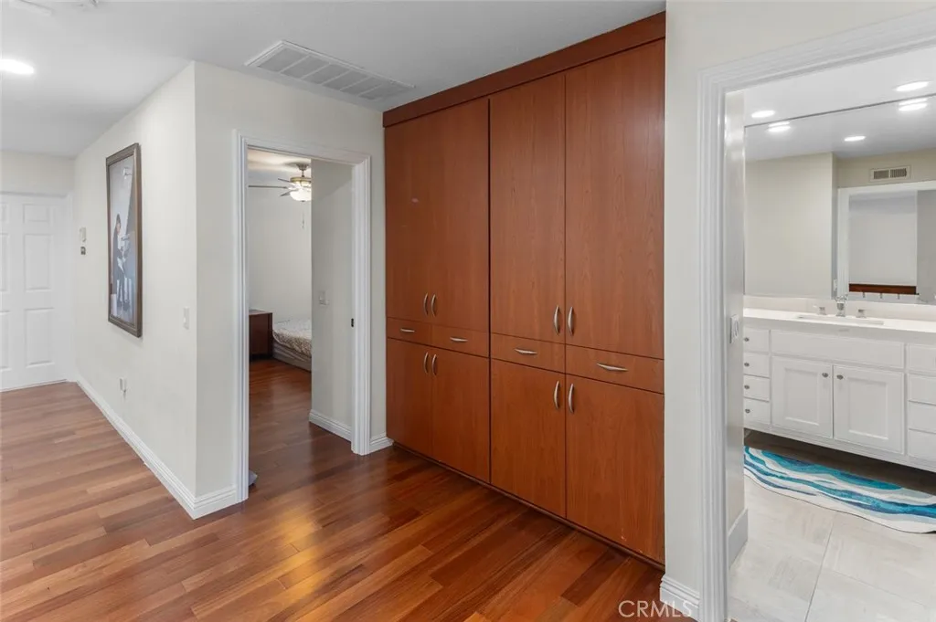 Fabulous location in Irvine’s most desirable neighborhoods - Woodbridge. Walk to the majestic South Lake and all three schools: Woodbridge High School, South Lake Middle School and Meadow Park Elementary. This nearly 3,000 square foot house boasts a three-car garage and 5 spacious bedrooms, with one bedroom and a full bathroom downstairs. All bedrooms feature beautiful cherry wood floors. Downstairs living space has Italian porcelain tile floor. Spacious open layout includes a formal dining room, a bar area including a wine cooler and a formal living room. The kitchen includes stainless steel appliances, a KitchenAid commercial size refrigerator, Thermador professional grade range, Bosch dishwasher, Wolf double oven, loads of storage space. Upstairs, the expansive master bedroom suite has a high vaulted ceiling, a huge walk-in closet, a luxurious shower and a tub. All bathrooms are equipped with a pampering heated-seat Toto toilet/bidet. In addition to the master bedroom suite, the upstairs includes three very spacious bedrooms and a fully remodeled bathroom. The sunny backyard is perfect for entertaining family and friends. It features a saltwater pool and spa, built-in BBQ with a sink and a mini fridge. Other upgrades include dual A/C units, Nest thermostat system, a Rain Bird wireless sprinkler system, and an 8.4 KW Solar system that provides more than 12000 KW annually. Located in the resort-style Woodbridge community, residents enjoy access to two lakes with docks and beach lagoons, 22 swimming pools, 23 tennis courts, 4 pickleball courts, parks, and scenic walking paths. This home is near stores, restaurants, pools, hospitals and freeways. Furniture can be included.