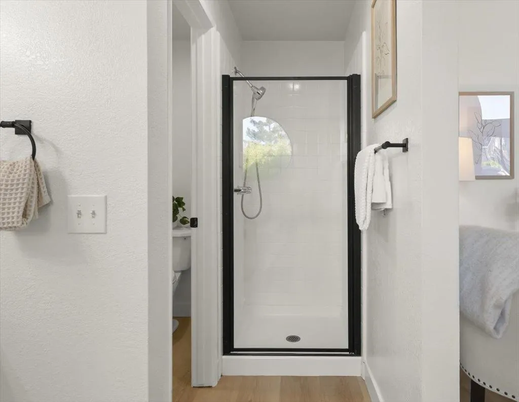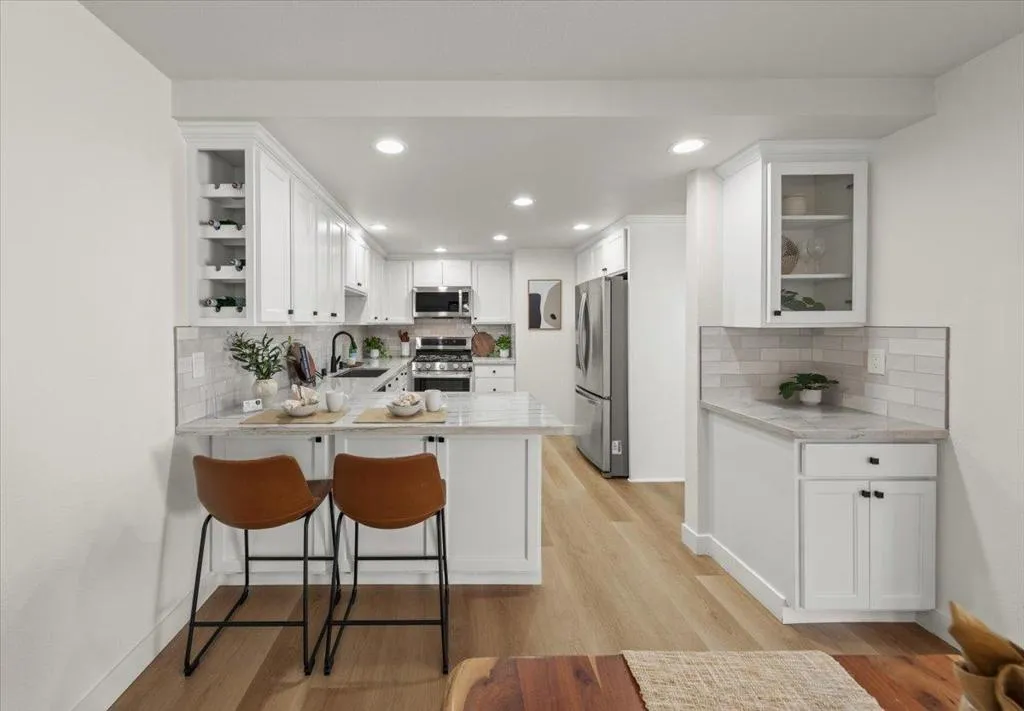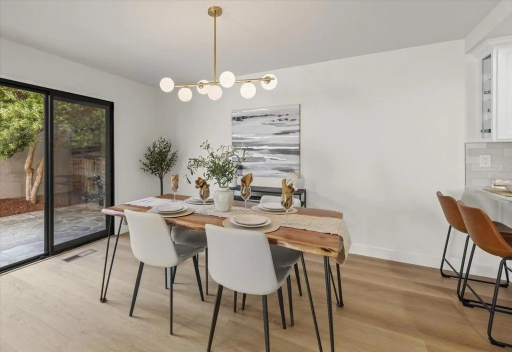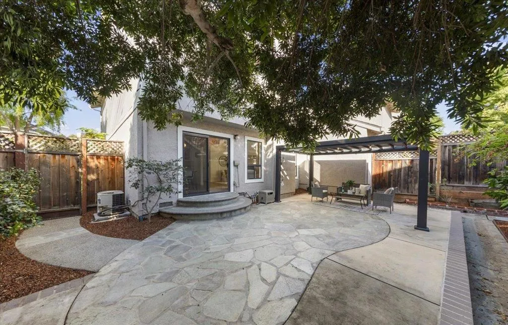 Beautifully updated end unit townhome in a prime Almaden Valley location, only attached on one side by a garage wall. Accented by modern flooring, fresh paint, and stylish fixtures throughout. This home features a convenient downstairs half bath and a remodeled kitchen with quartz countertops, stainless steel appliances, and updated cabinetry. The sunny dining and living areas flow seamlessly from the kitchen through an elegant arched entryway, highlighted by soaring ceilings and a cozy fireplace perfect for both everyday living and entertaining. Upstairs, the spacious primary suite boasts vaulted ceilings, a walk-in closet, and a well-appointed ensuite with double vanity, soaking tub, and separate stall shower. Sliding glass doors open to a private patio, creating a peaceful retreat. An in-unit washer and dryer are conveniently located upstairs. Enjoy a large backyard with a pergola, ideal for outdoor gatherings. Located in a quiet, family-friendly community near parks, library, and Almaden Golf & Country Club, and served by top-rated Almaden Valley schools: Simonds Elementary, Castillero Middle, and Leland High.