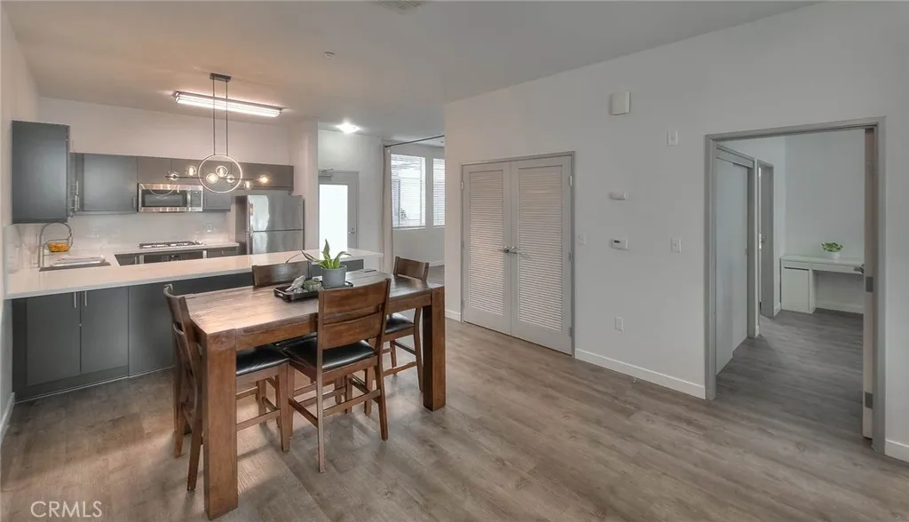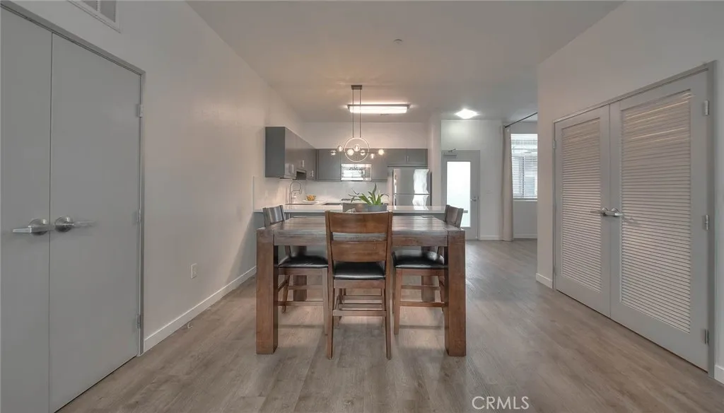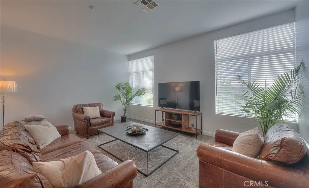 This modern remodeled property offers a stylish 3-bedroom, 2-full-bathroom condominium located mere minutes from Disneyland. Key features include high ceilings and striking neutral flooring throughout, a beautiful kitchen boasting ample cabinetry, stainless steel appliances, quartz countertops, and a huge breakfast bar area. The open-concept kitchen, dining area, and living room provide an ideal floor plan for both entertainment and relaxation. The expansive master bedroom features an en-suite full bathroom and a spacious walk-in closet, complemented by an additional closet. The second bedroom is roomy and includes its own full bathroom. The third bedroom currently serves as a functional workspace, offering the potential for a home office. Residents of the complex enjoy access to a picturesque courtyard area complete with a pool, jacuzzi, BBQ facilities, and seating areas. Tastefully renovated, this property is move-in ready. Experience the best of urban living in downtown Anaheim, steps from an array of amenities including restaurants, bars, breweries, bakeries, coffee shops, and boutiques, with the lively Packing district less than a mile away.