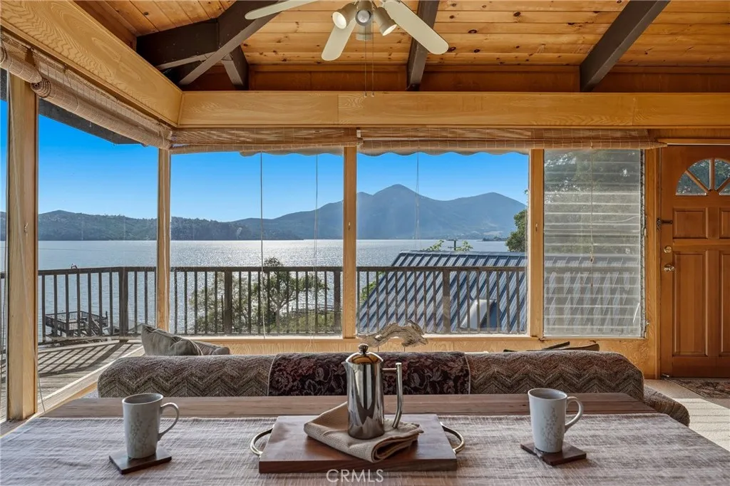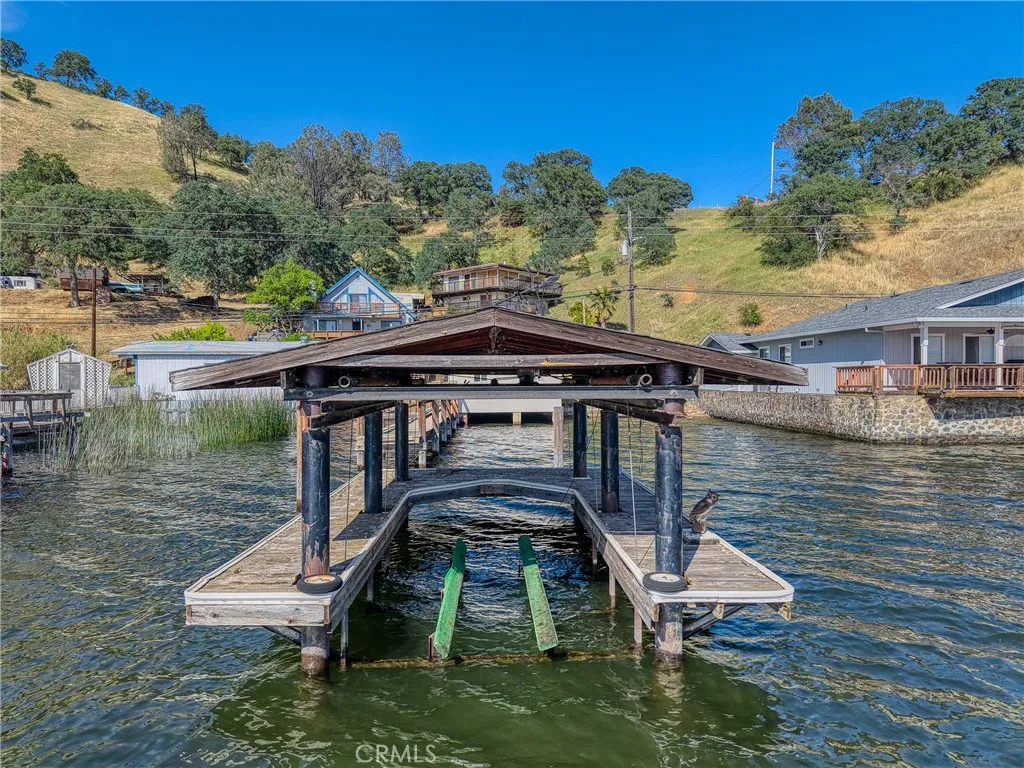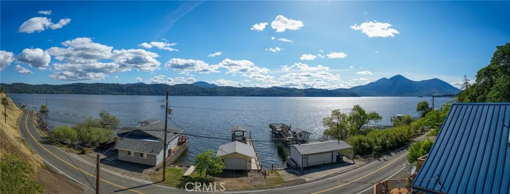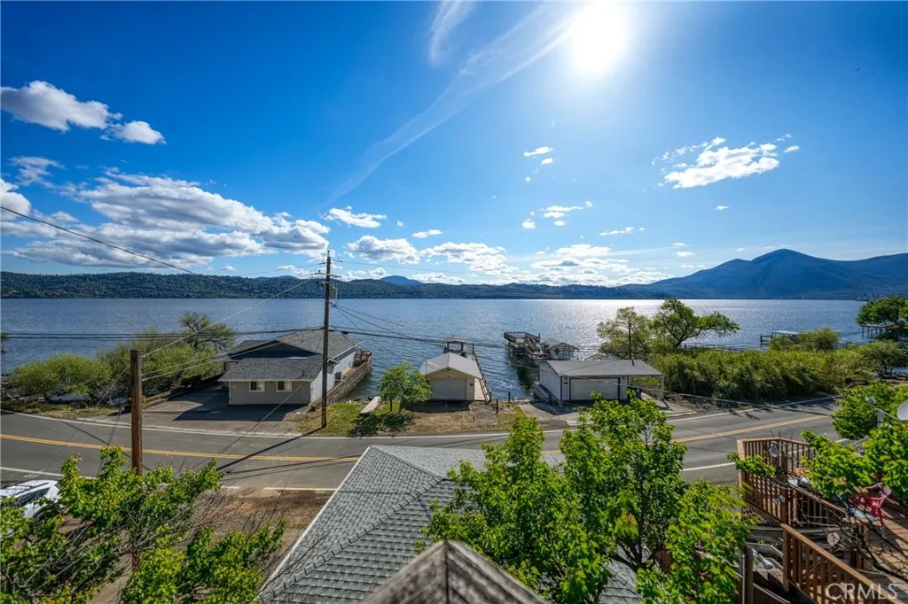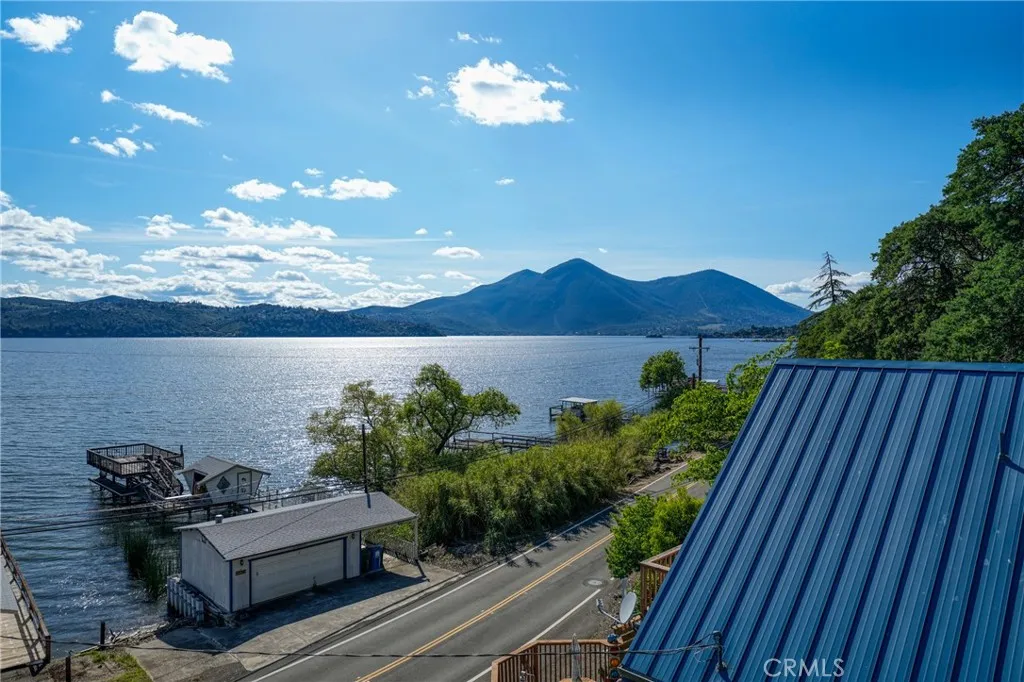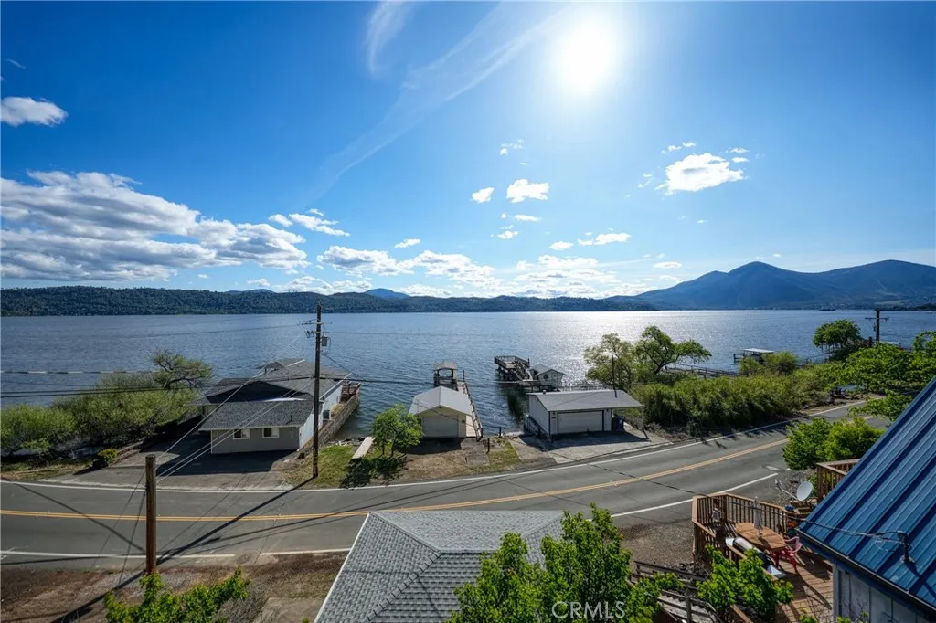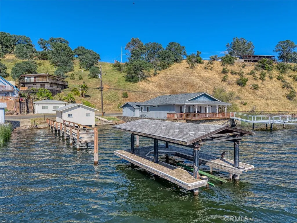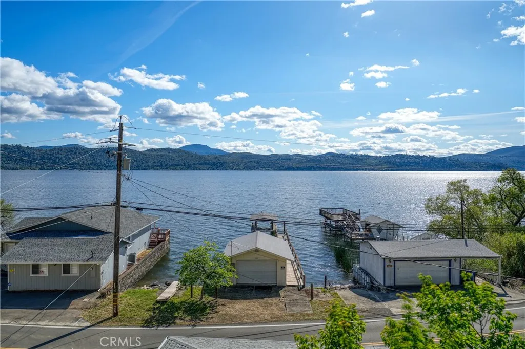 This beautiful lake property offers breathtaking views and includes a dock and boathouse garage conveniently located just across the street. The open concept layout features three bedrooms and two bathrooms, making it perfect as either a full time residence or a peaceful vacation retreat. Enjoy your mornings on the spacious decks with coffee or tea while taking in the scenic surroundings. Large windows throughout the home invite abundant natural light, enhancing the warm and inviting atmosphere. The living room showcases striking wood beams, vaulted ceilings, and a cozy wood stove. The kitchen has tile countertops and a ceiling fan. The upper level has two bedrooms with built-in dressers with mirrors and ceiling fans for comfort. The bathroom features a beautifully tiled shower and tub surround. The lower level offers an additional bedroom and bathroom with a private entrance, ideal for guests, along with its own deck space. Ample storage is available throughout the home. Double decks for added outdoor living space and fun family gatherings! Additional highlights include a dedicated laundry area with washer and dryer hookups and a sink for convenience. There is a two car garage with ample space. The roof was done in 2018. The property has two parcels. This wonderful home is located near a variety of local attractions, including boating, fishing, wineries, live music, and community events. Enjoy lake living!