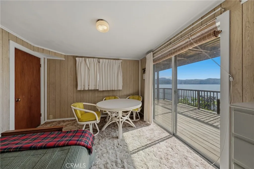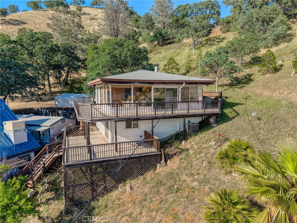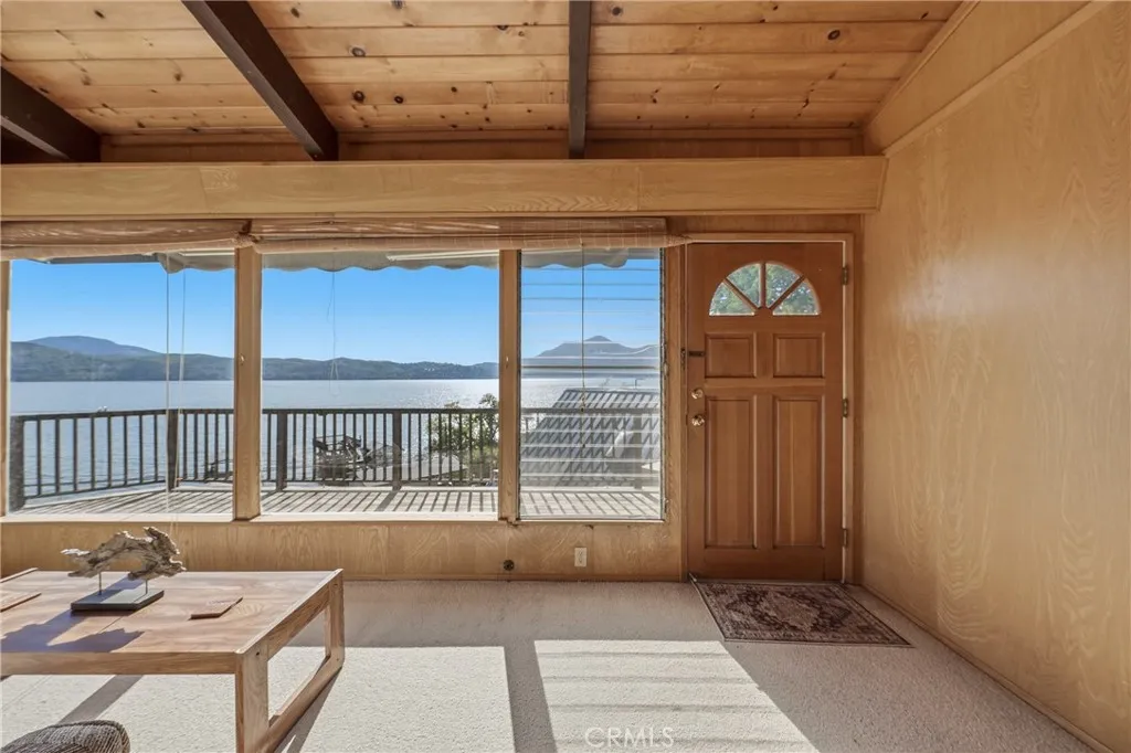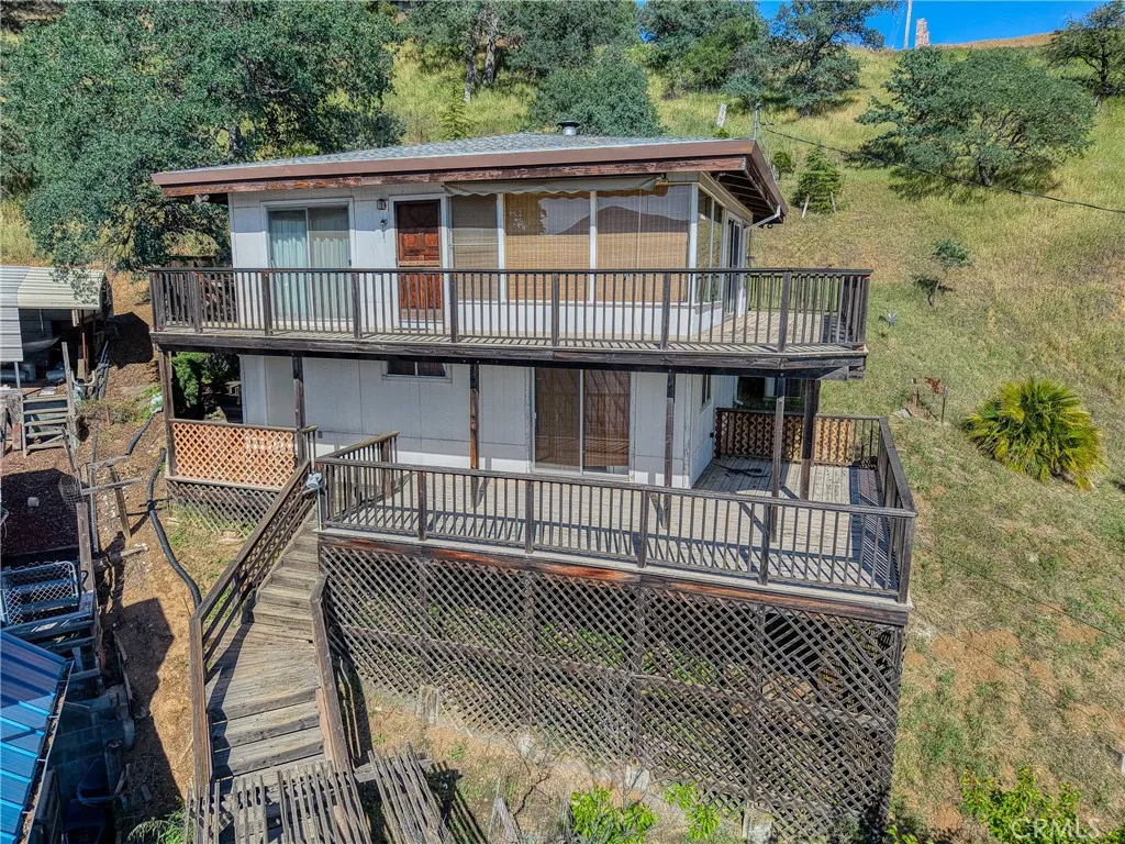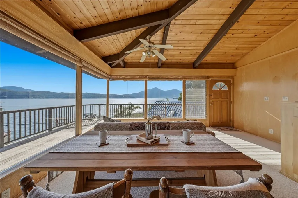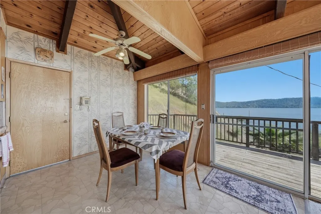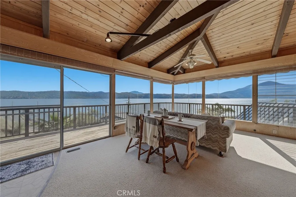 This beautiful lake property offers breathtaking views and includes a dock and boathouse garage conveniently located just across the street. The open concept layout features three bedrooms and two bathrooms, making it perfect as either a full time residence or a peaceful vacation retreat. Enjoy your mornings on the spacious decks with coffee or tea while taking in the scenic surroundings. Large windows throughout the home invite abundant natural light, enhancing the warm and inviting atmosphere. The living room showcases striking wood beams, vaulted ceilings, and a cozy wood stove. The kitchen has tile countertops and a ceiling fan. The upper level has two bedrooms with built-in dressers with mirrors and ceiling fans for comfort. The bathroom features a beautifully tiled shower and tub surround. The lower level offers an additional bedroom and bathroom with a private entrance, ideal for guests, along with its own deck space. Ample storage is available throughout the home. Double decks for added outdoor living space and fun family gatherings! Additional highlights include a dedicated laundry area with washer and dryer hookups and a sink for convenience. There is a two car garage with ample space. The roof was done in 2018. The property has two parcels. This wonderful home is located near a variety of local attractions, including boating, fishing, wineries, live music, and community events. Enjoy lake living!