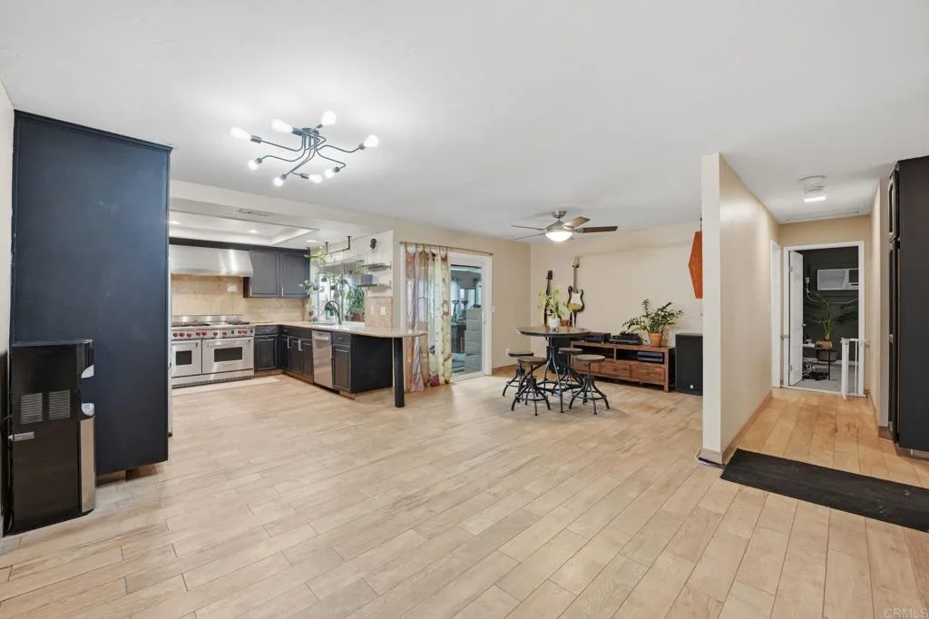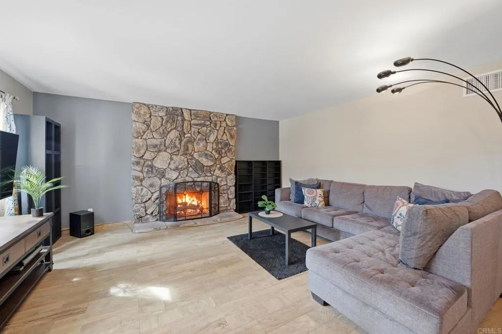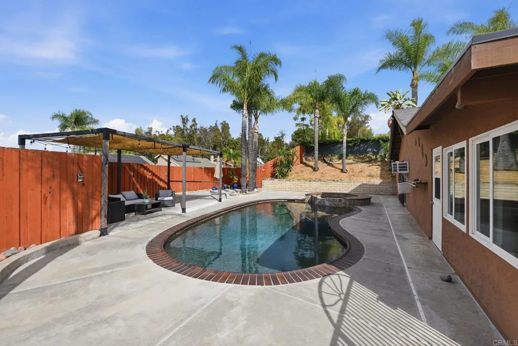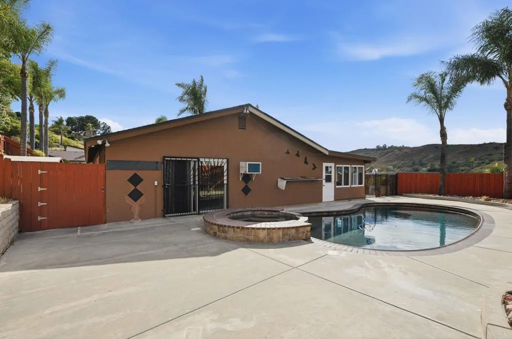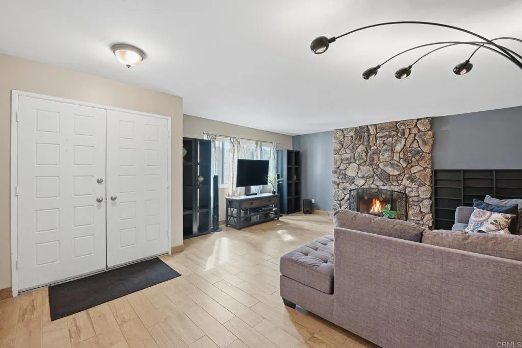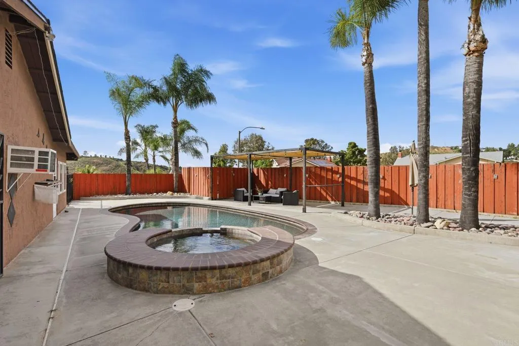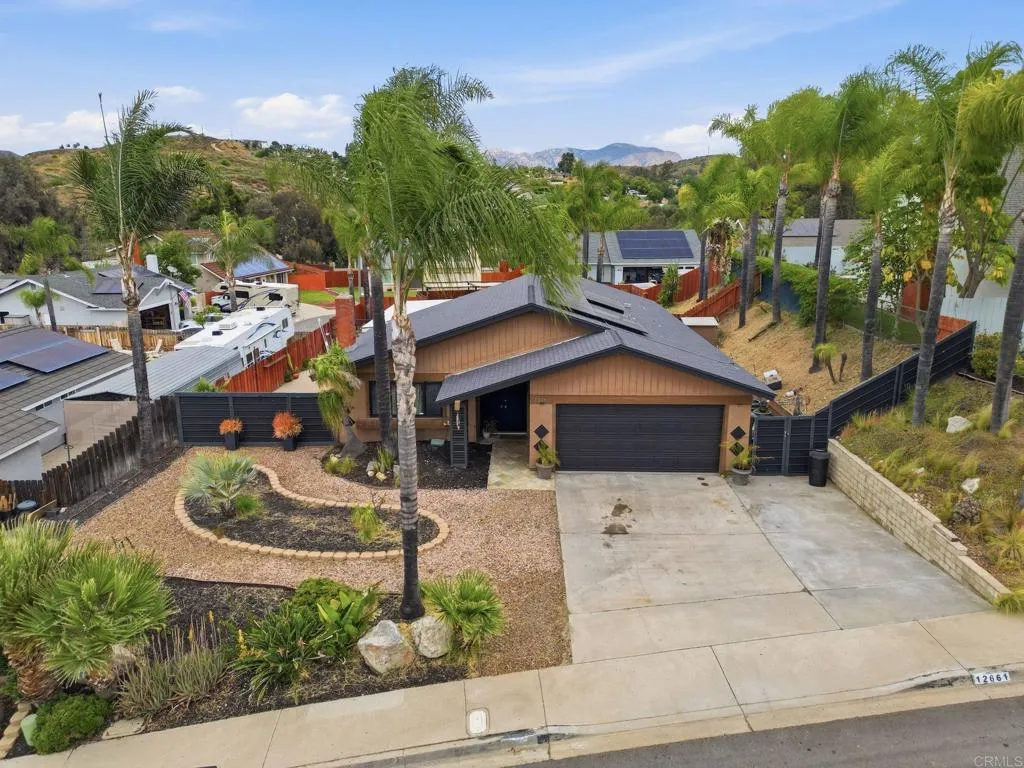 Tucked into a desirable Lakeside neighborhood, this beautifully updated home invites you into a lifestyle where comfort meets everyday luxury. From the moment you step inside, you’re welcomed by an expansive open living space designed for both relaxation and connection. The living room makes an unforgettable first impression with its dramatic floor-to-ceiling stone fireplace, perfect for cozy evenings. The heart of the home flows effortlessly into a spacious, well-appointed kitchen featuring granite countertops, stainless steel appliances, recessed lighting, and a show-stopping 6-burner professional-grade Wolf range, ideal for everything from casual meals to entertaining on a grand scale. Just beyond, a dedicated dining area opens through sliding glass doors to a stunning sunroom. Bathed in natural light, the sunroom showcases rich wood-beamed ceilings, tile flooring, and walls of windows, creating a versatile space perfect for a family room, home office, or playroom. Step outside and discover your own private oasis. The backyard is designed for true Southern California living, complete with an in-ground pebble-finish pool and spa, a covered cabana for lounging, and swaying palm trees that set the tone for relaxation and entertaining alike. The spacious primary suite offers a peaceful retreat, featuring private backyard access and an ensuite bathroom with dual sinks and a custom-tiled walk-in spa shower. Two additional guest bedrooms and a full bathroom with a self-drying jetted tub provide comfort and flexibility for family or visitors. Additional highlights include a newer roof installed in 2023, new water heater, a Lorex security camera system and a financed solar system for added efficiency and peace of mind. All of this in a prime Lakeside location, just minutes from freeway access, schools, shopping, and dining, making it as convenient as it is captivating.