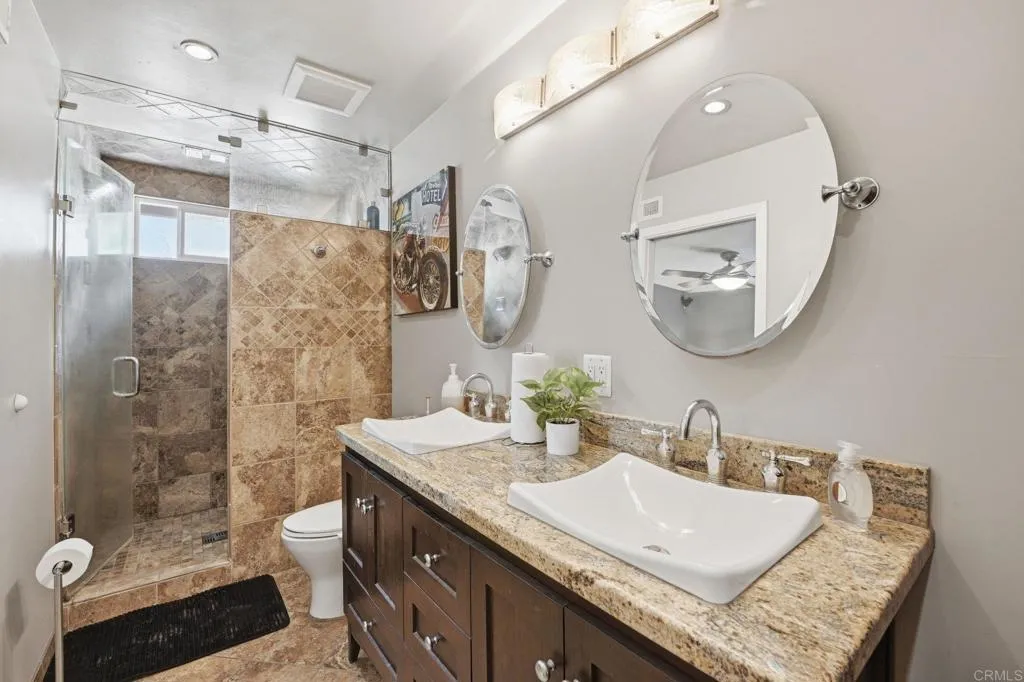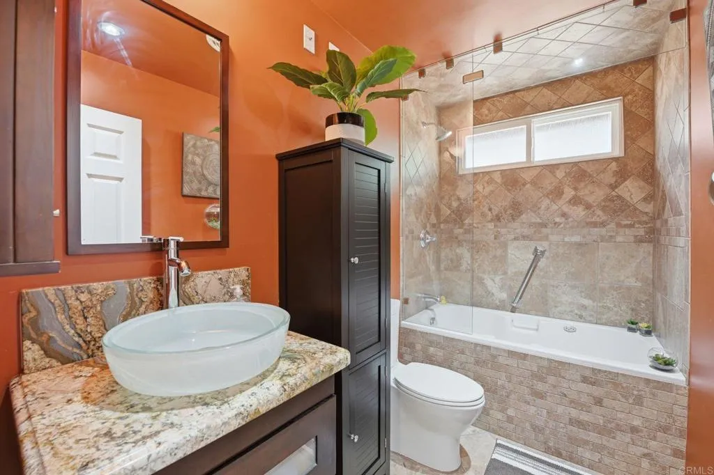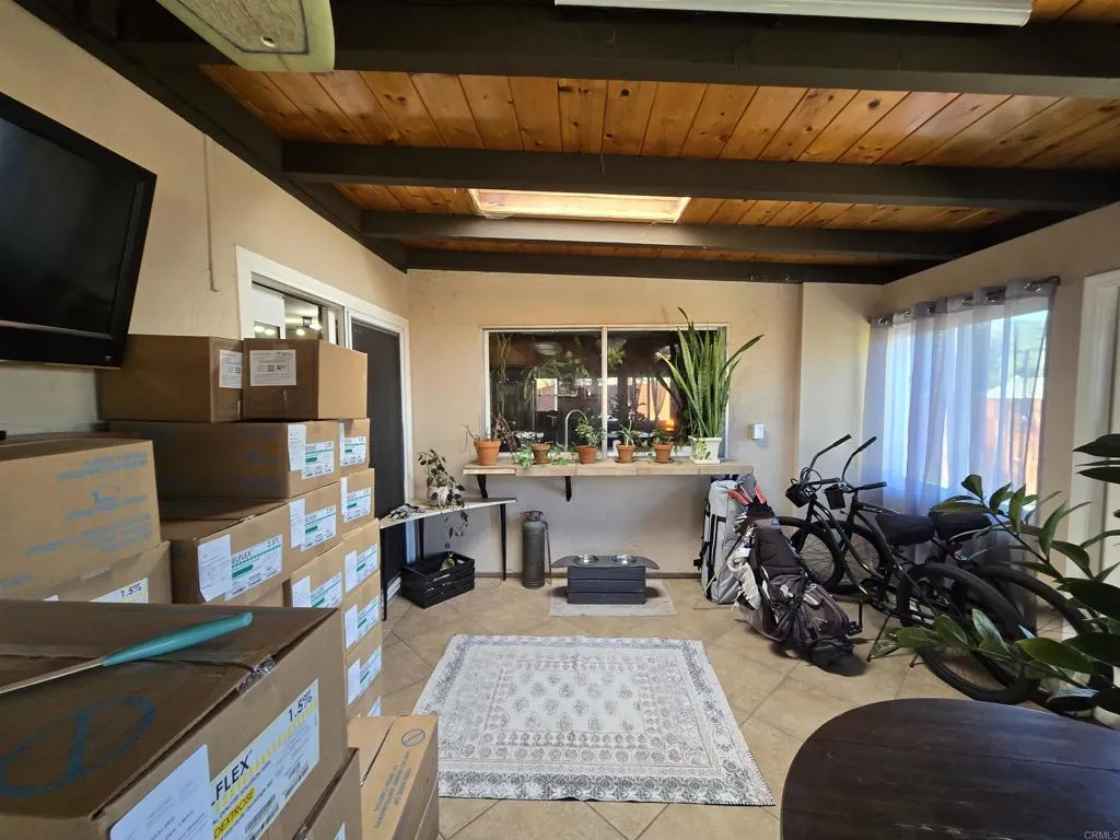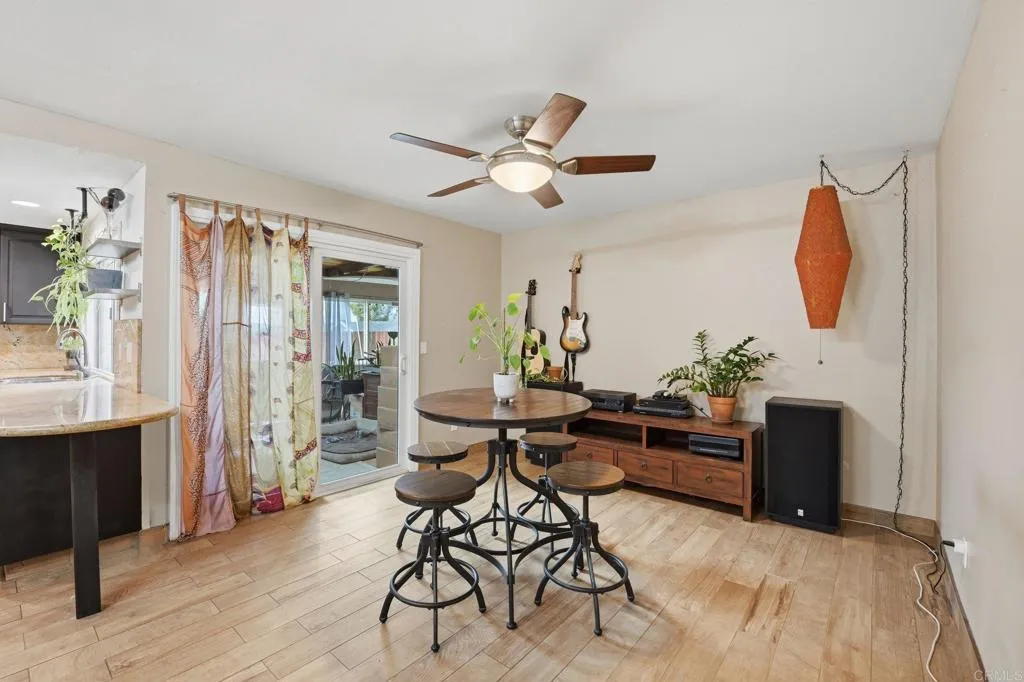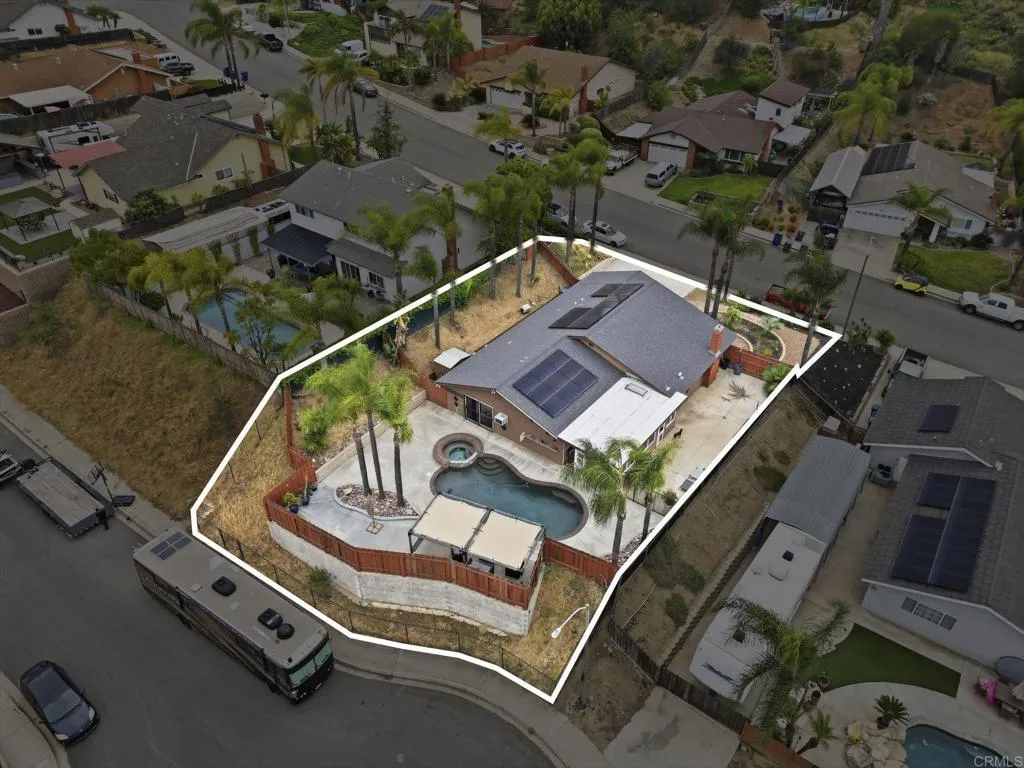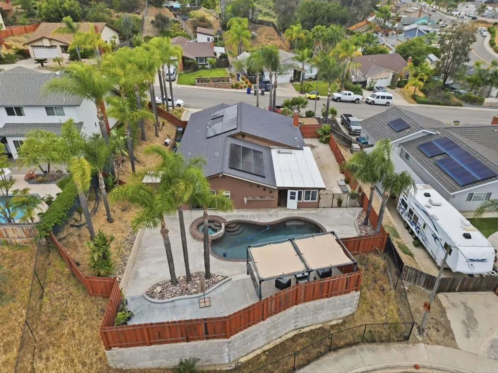 Tucked into a desirable Lakeside neighborhood, this beautifully updated home invites you into a lifestyle where comfort meets everyday luxury. From the moment you step inside, you’re welcomed by an expansive open living space designed for both relaxation and connection. The living room makes an unforgettable first impression with its dramatic floor-to-ceiling stone fireplace, perfect for cozy evenings. The heart of the home flows effortlessly into a spacious, well-appointed kitchen featuring granite countertops, stainless steel appliances, recessed lighting, and a show-stopping 6-burner professional-grade Wolf range, ideal for everything from casual meals to entertaining on a grand scale. Just beyond, a dedicated dining area opens through sliding glass doors to a stunning sunroom. Bathed in natural light, the sunroom showcases rich wood-beamed ceilings, tile flooring, and walls of windows, creating a versatile space perfect for a family room, home office, or playroom. Step outside and discover your own private oasis. The backyard is designed for true Southern California living, complete with an in-ground pebble-finish pool and spa, a covered cabana for lounging, and swaying palm trees that set the tone for relaxation and entertaining alike. The spacious primary suite offers a peaceful retreat, featuring private backyard access and an ensuite bathroom with dual sinks and a custom-tiled walk-in spa shower. Two additional guest bedrooms and a full bathroom with a self-drying jetted tub provide comfort and flexibility for family or visitors. Additional highlights include a newer roof installed in 2023, new water heater, a Lorex security camera system and a financed solar system for added efficiency and peace of mind. All of this in a prime Lakeside location, just minutes from freeway access, schools, shopping, and dining, making it as convenient as it is captivating.