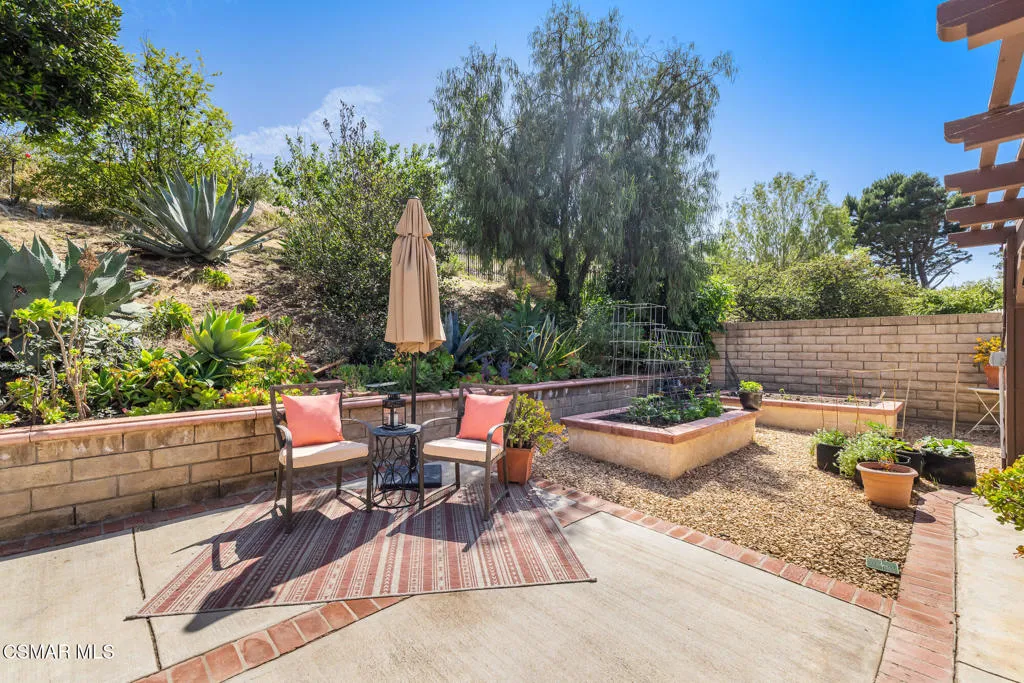 Welcome to this beautifully appointed 4 bedroom, 3 bath true single story home, ideally located in one of Moorpark's most desirable settings. Tucked away on a quiet, tree lined cul-de-sac, this exceptional 2,186 square foot property sits on an expansive 17,424 square foot lot with picturesque views and thoughtfully designed terraced areas perfect for planting, relaxing, and taking in the scenery. Inside, soaring ceilings and beautiful flooring create a light and inviting atmosphere, complemented by an updated kitchen with a charming breakfast nook. The spacious bedrooms include a shared hallway bath, while the primary suite offers a peaceful retreat with a newly renovated bath featuring dual vanities and an oversized step in shower. A warm cottage style interior adds character and comfort, making it the perfect setting for gatherings and Sunday dinners. The patio flows seamlessly from the family room, creating a serene outdoor escape complete with a built-in BBQ area, space for child's play, evenings by the firepit and multiple raised garden beds ready for your summer harvest. Incredible easy access to the freeway makes commuting a dream and best of all - there is no HOA. This is a home where every detail invites you to settle in and create lasting memories. Don't miss it.