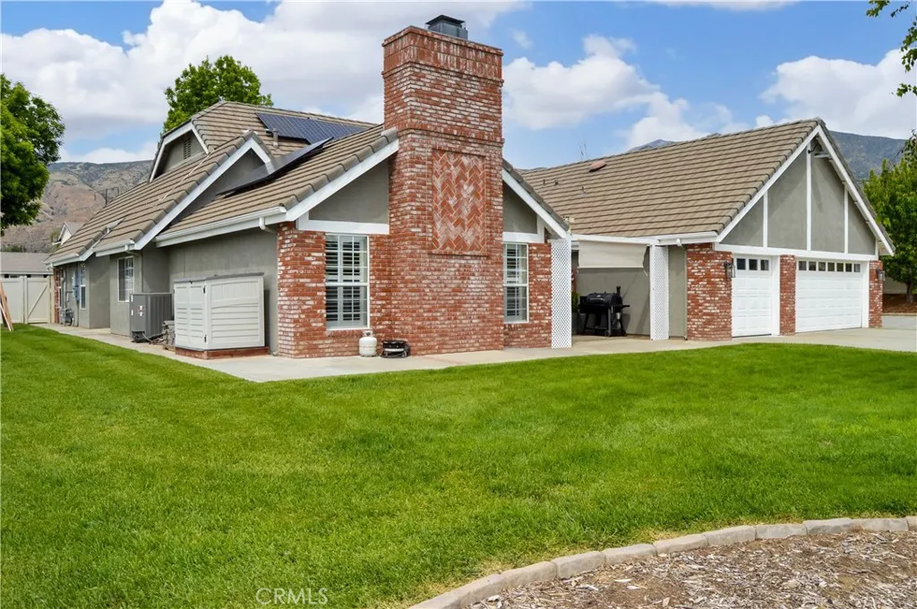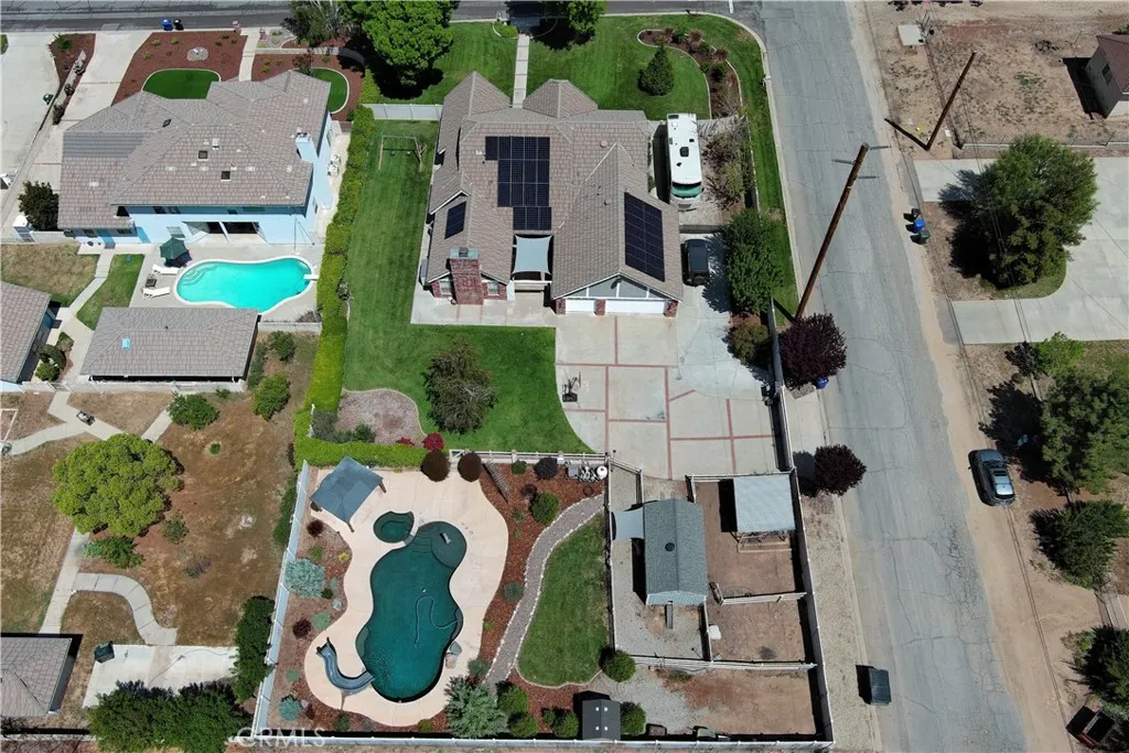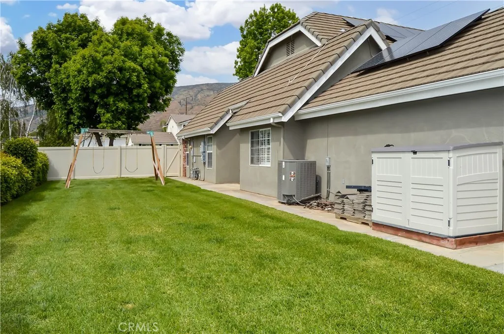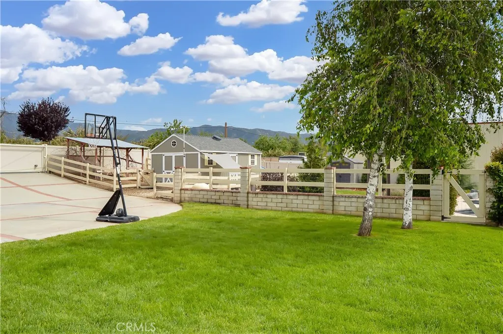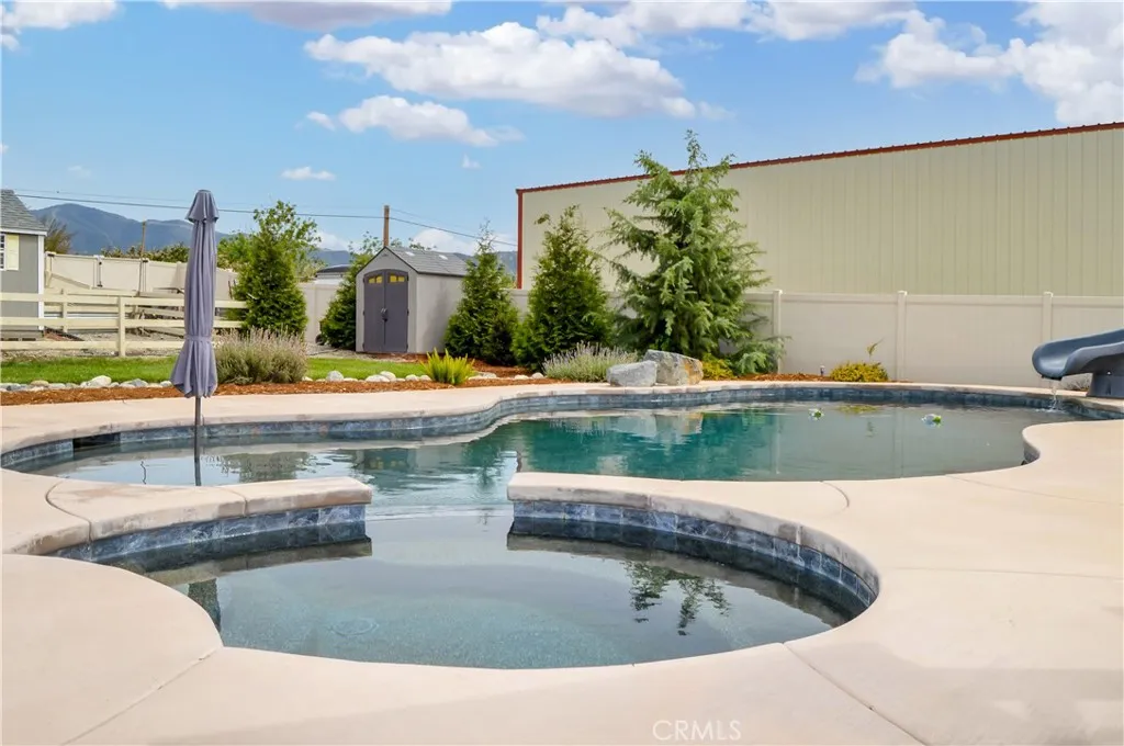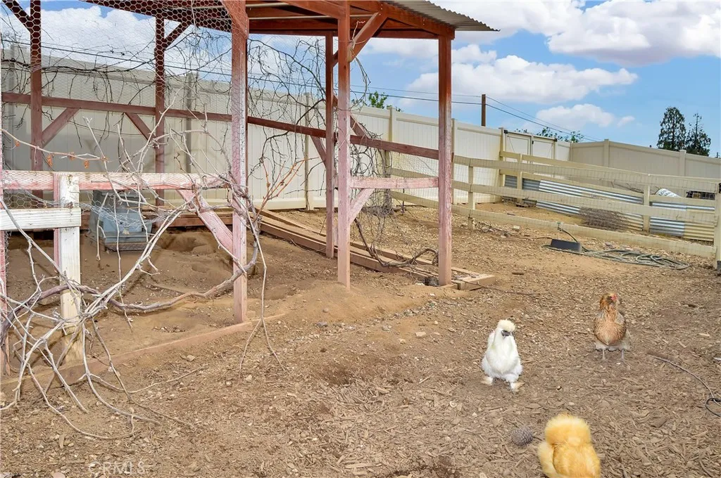 Welcome Home to 35685 Sleepy Hollow Lane in Yucaipa's Desirable North Bench! Imagine coming home to this gorgeously-upgraded modern farmhouse-style, single-story, 4-bed, 3-bath, pool/spa home with gated RV parking (w/hook-ups), a chicken coop (chickens included!), and space to relax and recharge on this half-acre lot EVERY DAY! Over the past few years, the owners have added the heated pool & spa & so much more! First, you'll fall in love the absolutely amazing kitchen which has a "chef's table" style island with bar seating for eight & cabinets on both sides, granite countertops, full tile backsplash, stainless steel appliances (TWO dishwashers, professional-style range w/pot filler, refrigerator, microwave, & beverage fridge), custom lighting, two-tone cabinetry (with pot & pan drawers w/lid storage, pull-outs, spice rack, & pop-up outlets w/phone chargers), & a walk-in pantry. Next, you'll be delighted by the custom built-in wall unit with heated fireplace insert, mantel, & shelving in the living room. Then, you won't want to leave the main bedroom suite with another custom wall unit with a heated fireplace insert accompanied by a lighted headboard & a brick accent wall to create a private retreat under the cathedral ceilings with a barn door leading to your very own spa-like bathroom which boasts a double-door entry to the glass-enclosed wet room with a soaking tub under the window between dual shower walls (each has its own rainfall shower head, shower wand, body jets, & recessed niches for essentials & shaving) plus a dual sink vanity & a walk-in closet w/organizers. Across the hall, you'll find "Jack & Jill" style bedrooms with barn doors to access the bath between them. The 4th bedroom is next to the 3rd bath in a separate hall near the kitchen - perfect for guests or multi-generational living. An expansive family room/game room with a cozy brick fireplace & more cathedral ceilings offers French door access to the patio & fabulous backyard which includes lush green lawn with a swing set & vinyl fencing for privacy. The pool/spa area offers a water slide, jumping rock, lighted gazebo, fireplace, lawn, & shed. The 3-car garage w/2 car chargers & a small office is accessed via an automatic gate with extra parking for RVs & toys. The chicken & dog runs have access to heated areas in the large shed. New multi-zone AC in 2024. Leased solar keeps costs low. Too many features to list them all, so view the photos/tours, call your agent, then make it yours!