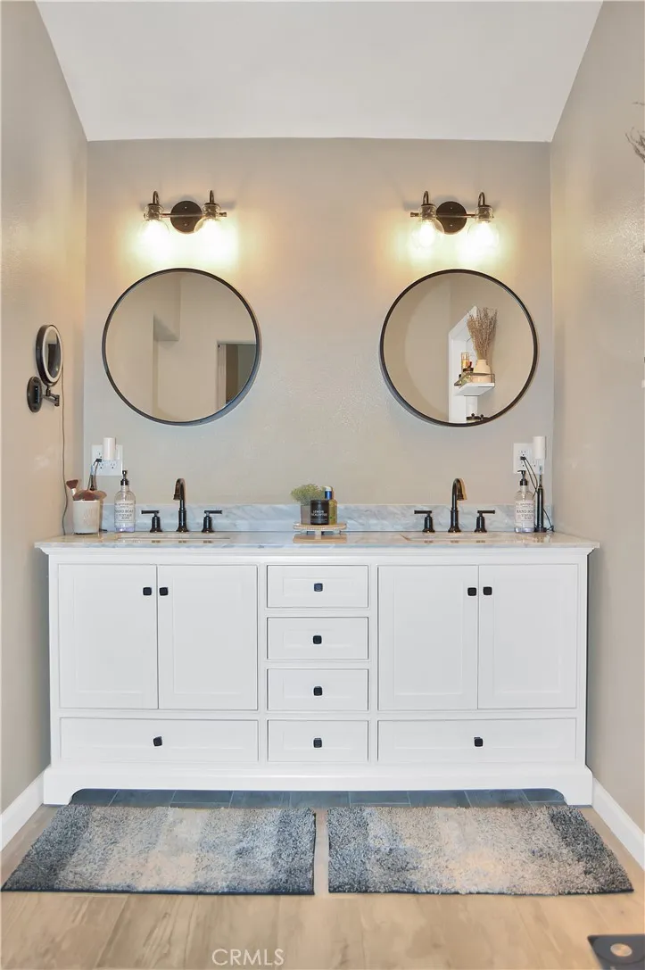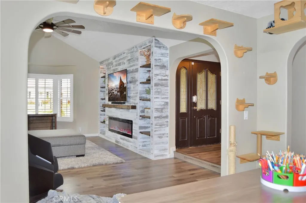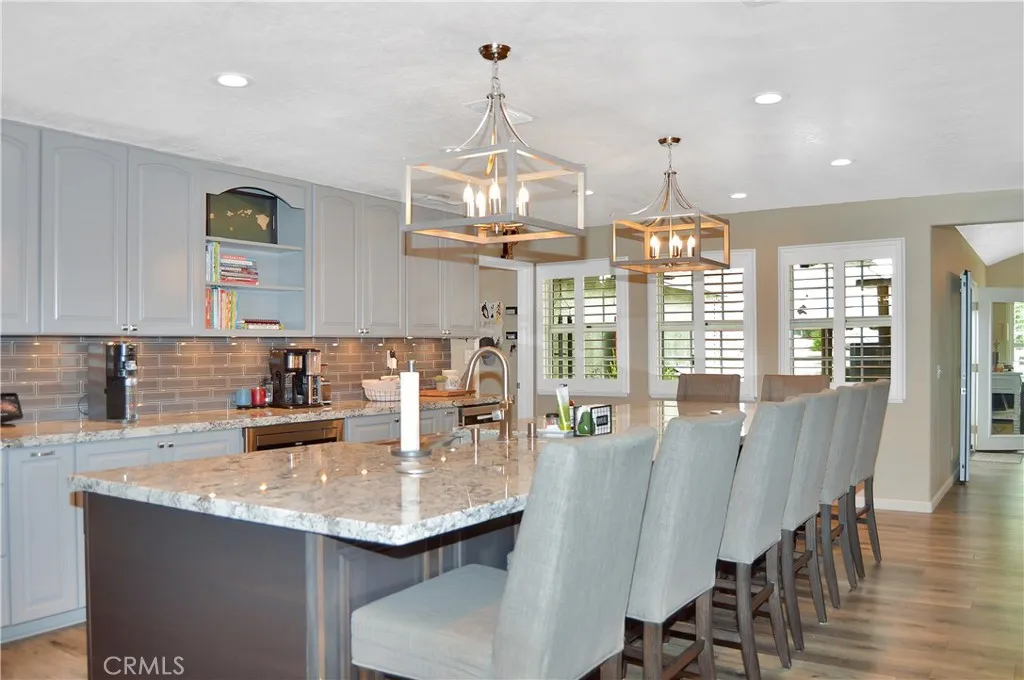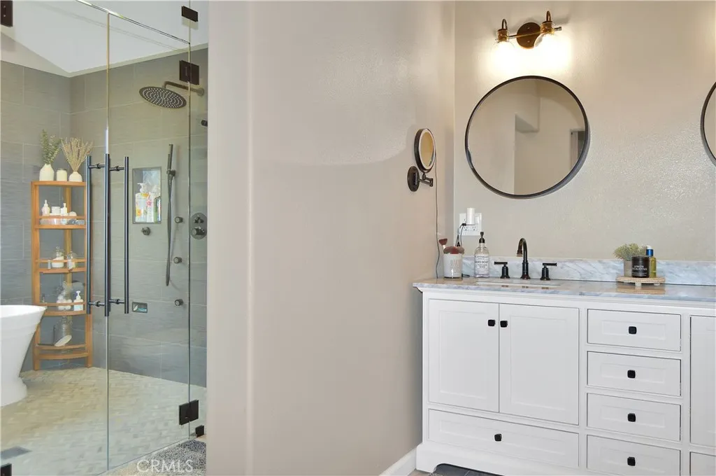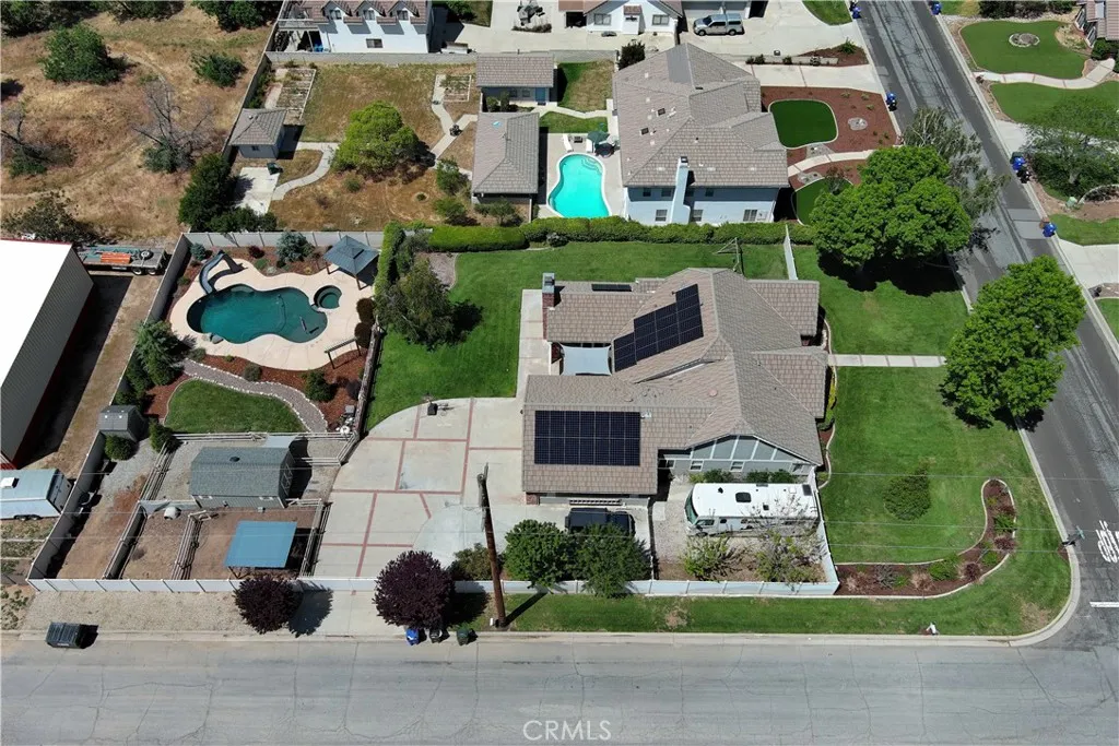 Welcome Home to 35685 Sleepy Hollow Lane in Yucaipa's Desirable North Bench! Imagine coming home to this gorgeously-upgraded modern farmhouse-style, single-story, 4-bed, 3-bath, pool/spa home with gated RV parking (w/hook-ups), a chicken coop (chickens included!), and space to relax and recharge on this half-acre lot EVERY DAY! Over the past few years, the owners have added the heated pool & spa & so much more! First, you'll fall in love the absolutely amazing kitchen which has a "chef's table" style island with bar seating for eight & cabinets on both sides, granite countertops, full tile backsplash, stainless steel appliances (TWO dishwashers, professional-style range w/pot filler, refrigerator, microwave, & beverage fridge), custom lighting, two-tone cabinetry (with pot & pan drawers w/lid storage, pull-outs, spice rack, & pop-up outlets w/phone chargers), & a walk-in pantry. Next, you'll be delighted by the custom built-in wall unit with heated fireplace insert, mantel, & shelving in the living room. Then, you won't want to leave the main bedroom suite with another custom wall unit with a heated fireplace insert accompanied by a lighted headboard & a brick accent wall to create a private retreat under the cathedral ceilings with a barn door leading to your very own spa-like bathroom which boasts a double-door entry to the glass-enclosed wet room with a soaking tub under the window between dual shower walls (each has its own rainfall shower head, shower wand, body jets, & recessed niches for essentials & shaving) plus a dual sink vanity & a walk-in closet w/organizers. Across the hall, you'll find "Jack & Jill" style bedrooms with barn doors to access the bath between them. The 4th bedroom is next to the 3rd bath in a separate hall near the kitchen - perfect for guests or multi-generational living. An expansive family room/game room with a cozy brick fireplace & more cathedral ceilings offers French door access to the patio & fabulous backyard which includes lush green lawn with a swing set & vinyl fencing for privacy. The pool/spa area offers a water slide, jumping rock, lighted gazebo, fireplace, lawn, & shed. The 3-car garage w/2 car chargers & a small office is accessed via an automatic gate with extra parking for RVs & toys. The chicken & dog runs have access to heated areas in the large shed. New multi-zone AC in 2024. Leased solar keeps costs low. Too many features to list them all, so view the photos/tours, call your agent, then make it yours!