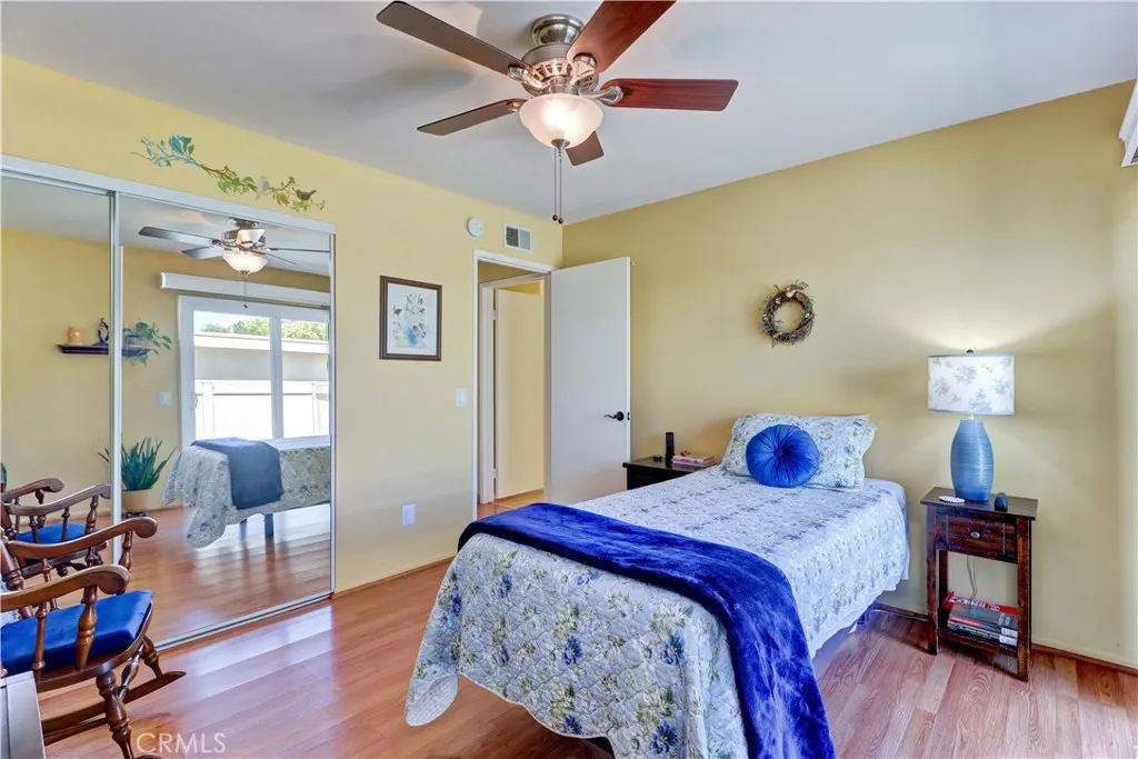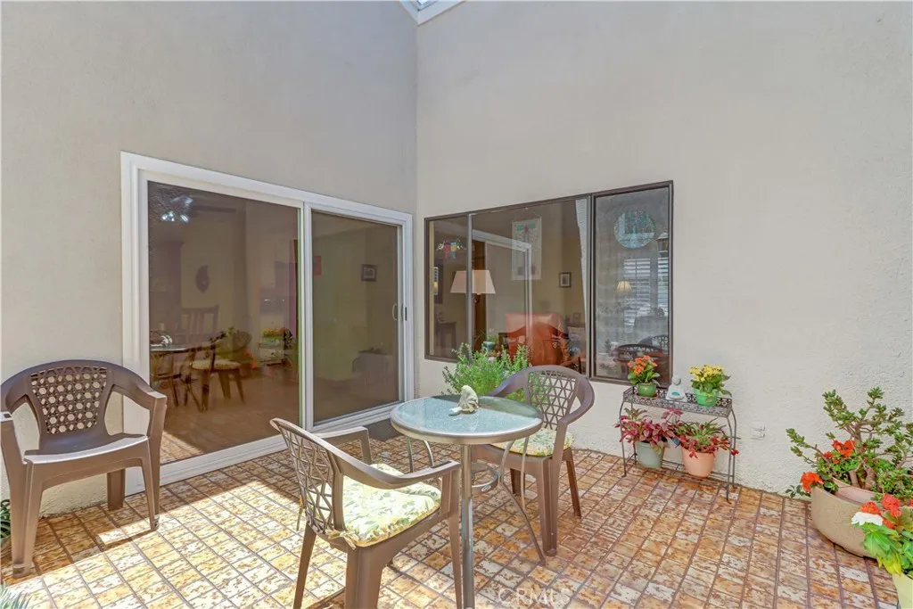 Located Near the Main Rec Center, This Popular 2 Br Single Story Breakers Model has 2 Patios. The Private center Atrium Patio is like a Giant Skylight to the Living space and is a Great Source of Air Flow. The Inviting Second patio is off the Guest Bedroom & has Beautiful tile and a vinyl fence. When you enter, you are greeted with a Spacious Living Room with Vaulted Ceilings and Plantation Shutters. Scraped Ceilings throughout. Laminated Wood flooring t/o and tile in both baths. Kitchen has Granite Countertops, Backsplash, Recessed Lights with Crown molding and Updated Appliances. Dining Area has a tasteful Ceiling Fan for those hot days, a Dual Paned Slider onto the Center Atrium patio and Bali shades. Both Bath showers have been Reglazed and have Large Skylights allowing for so much Natural light to Stream into the space. Guest Bath is nicely updated with Granite countertops, Mirror, Faucet, Lighting and Comfort Height toilet. The Primary Bedroom has a Vaulted Ceiling, a Ceiling Fan and has so much light with the Dual Paned Slider and Window. Primary Bath has Recessed Lighting, Granite Countertops, a Comfort Height Toilet & an updated Window. Condo has been Repiped. Included Washer & Dryer in interior hall Closet. Furnace Replaced. The Garage is right off the Back of the Condo. Feels Like Being at a Resort with a Fabulous Recreation Center. 2 Pools, 2 Spas with Main Rec Center Pool being almost Olympic Size! Tennis Courts, Pickleball Courts, Ping Pong, Dances, Trips, Movies, Clubs, Parties, Concerts, Fitness Center, Fitness classes-Water Aerobics, Yoga & Zumba, Woodshop, Chorale, Quilters, Art & Ceramics Clubs & Classes, Billiards, Putting Green, Library & Much More. Well Maintained Grounds with Mature Trees. Hunt Landmark is located close to the Post Office and Grocery Store and Famous Beaches of Huntington Beach. Near the HB Pier, Downtown Area & Pacific City. You are Close to Shopping and the Post Office. 24 Hr Guard Gated 55+ Community Near the Ocean (Approx.1.2 Miles)
