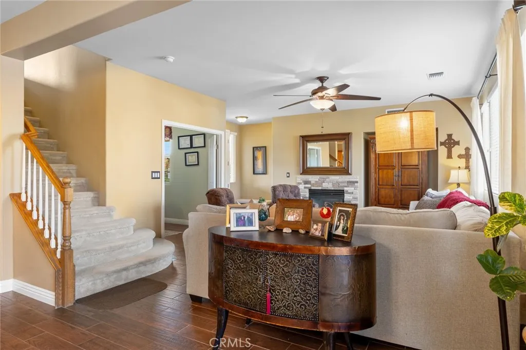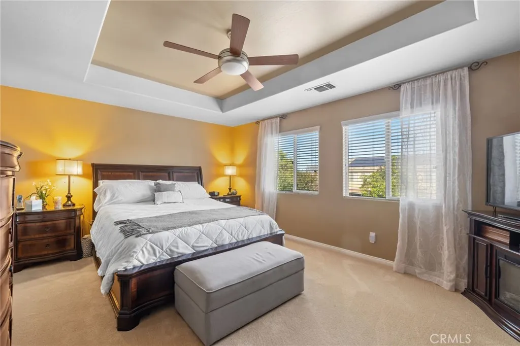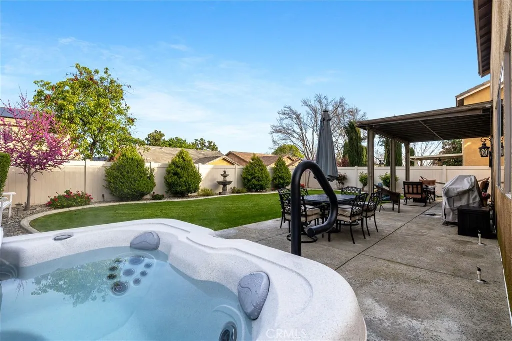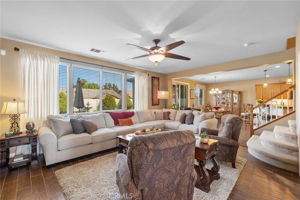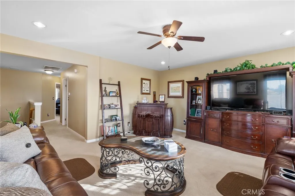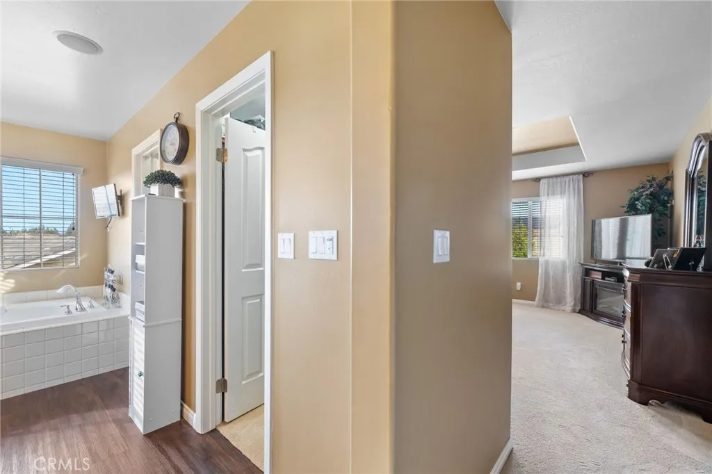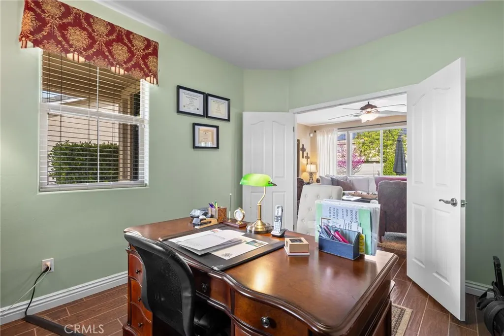 Seller will make a capital contribution to pay down solar at the Close of Escrow. Turn-key Brighton Village 5-bedroom potential home with luxury upgrades, open-concept living, home office, loft, spa, and entertainer’s backyard—this is the one today’s buyers have been searching for. From the moment you arrive, you’ll notice the exceptional curb appeal, manicured landscaping, and pride of ownership that make this home truly stand out. Step inside to discover stylish wood-look flooring, modern finishes, and a bright, inviting layout designed for both everyday living and entertaining. The main level features a sought-after private office with double doors, perfect for remote work, a guest room, or optional 5th bedroom. The spacious family room centers around a beautiful slate-tiled fireplace and opens seamlessly to the upgraded kitchen, complete with granite countertops, under-cabinet lighting, breakfast bar seating, and ample prep space—a dream setup for gatherings and daily convenience. Upstairs, a large bonus loft offers endless flexibility as a second living room, media room, gym, playroom, or teen retreat—highly desirable extra space for today’s lifestyle needs. The oversized primary suite retreat features a spa-inspired ensuite bath with dual vanities, separate soaking tub, walk-in shower, and a generous walk-in closet. Step outside to your private backyard oasis with lush landscaping, an extended covered patio, additional concrete entertaining space, and your own relaxing spa/hot tub—perfect for hosting guests or unwinding under the stars.