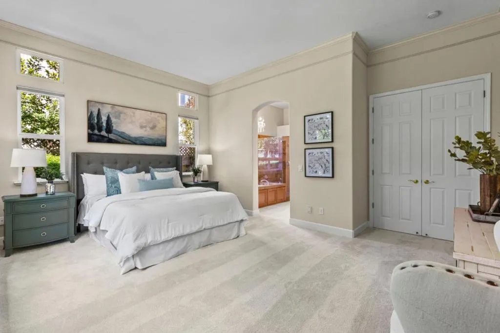 Welcome Home to Beautiful Coyote Estates! This spacious, single level 4 bedroom plus office, 3.5 bath home is situated on a quiet cul-de-sac in one of Morgans Hills most desirable neighborhoods. Offering a large 9140sf lot and 2827sf of comfortable living space. The kitchen features an island, counter seating, a pantry, granite countertops, a gas cooktop, dishwasher, refrigerator, and wine refrigerator! It seamlessly connects to the family room for a convenient kitchen/family room combo. Flooring includes tile and brand new carpet throughout. The entire interior was painted last month. The home has dual see-through gas log fireplaces in the living and family rooms. Primary Suite is very spacious with extra large windows for lots of natural light. Primary bath includes a jetted tub, stall shower and walk-in closet. There is also another en suite bedroom that is great for guests or family to have total privacy. Laundry room is located inside the home with built in ironing board and large sink. Leased Solar system! Additional amenities include central AC and forced air heating and built-in vacuum. Three car garage with cabinetry. This location is one of the best in town with close proximity to the county Park area and also Highway 101. Shopping is just a few minutes away!