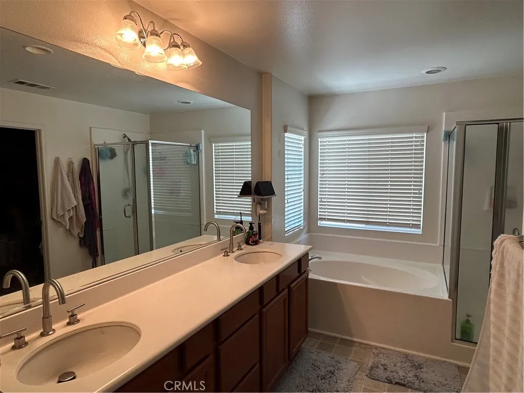 This beautiful house is in the much sought after FAIRWAY COMUNITY! With 5 bedrooms and 3 bathrooms, this nice home features new laminate flooring and new carpet in every bedroom, high ceilings, plantation shutters and granite countertops! The roomy kitchen has plenty of cabinet space with a cozy fireplace in the adjacent family room. Just out the back is a comfortable covered patio. The landscaping is draught resistant and there is solar to keep the electric bill affordable. The clubhouse has a large pool, playground and gym. Everything is nearby, shopping, restaurants, and Morongo Golf Course. The 10 freeway is just a few minutes from your driveway. Make this special home yours TODAY!