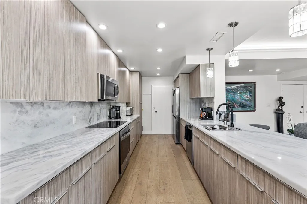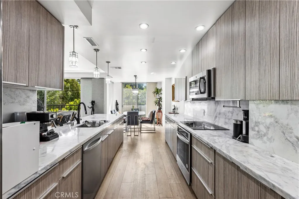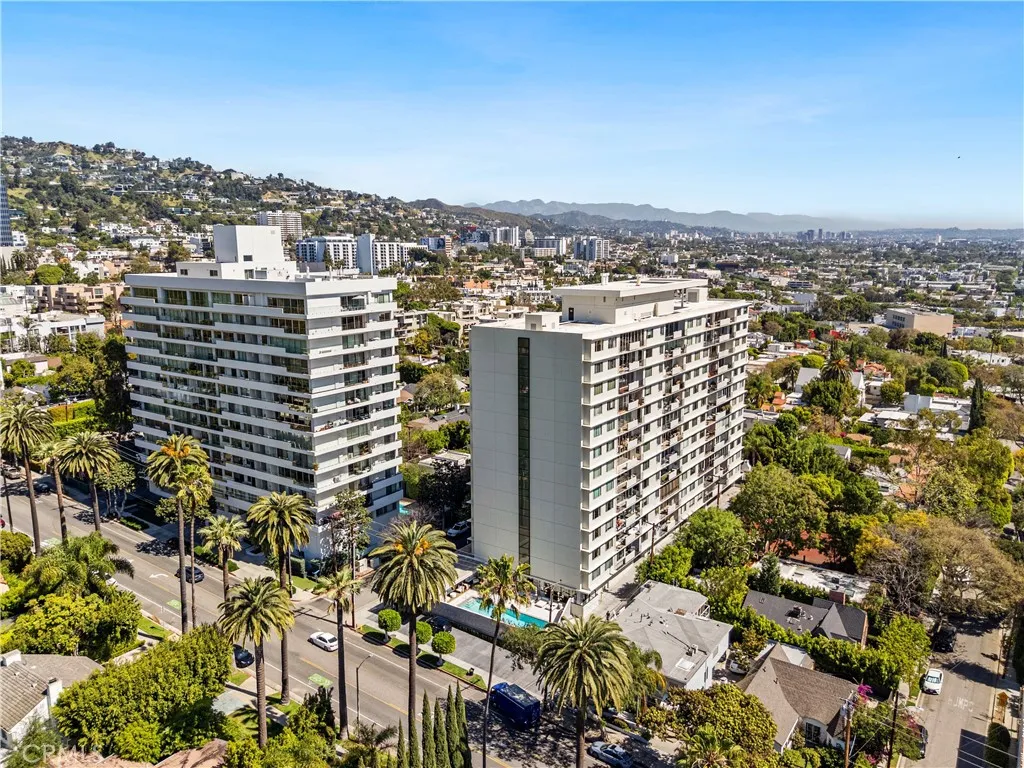 Experience luxury at Doheny Plaza, perfectly positioned on Doheny Drive at the border of Beverly Hills and West Hollywood. This prime location offers easy access to entertainment, dining, and boutiques. Built in 1963, this full-service concierge building features a sleek mid-century design. Both the building and the unit have been tastefully remodeled for privacy and luxury. The spacious, light-filled unit boasts a private balcony with floor-to-ceiling glass doors, providing serene treetop and hillside views. Totally remodeled, the lights and tv are Alexa programable , hardwood floors throughout, rare Brazilian stone kitchen counter tops and European style cabinets. Building amenities include a banquet room/clubhouse, swimming pool, sun deck, security, and valet parking. HOA dues cover valet, basic cable, and water. This quiet, south-facing back unit includes 2-car tandem parking. Washer and dryer can be added in the unit. Building has add 2 guest rooms that are available for rent for the residents, also the unit has all new electrical and plumbing, heated salt pool all year.