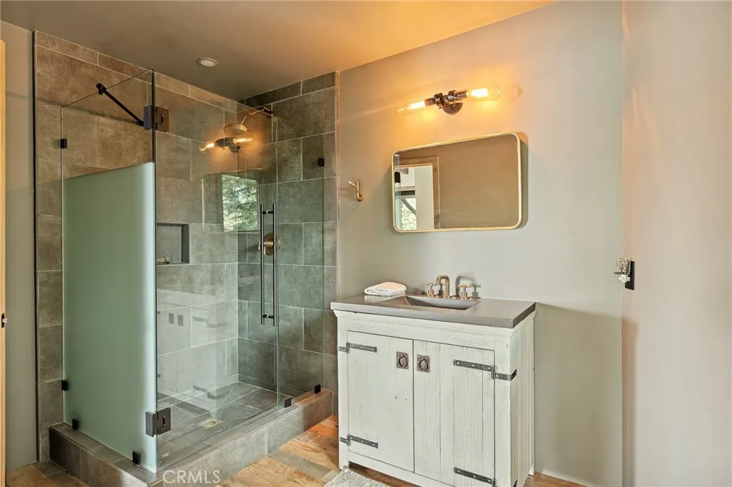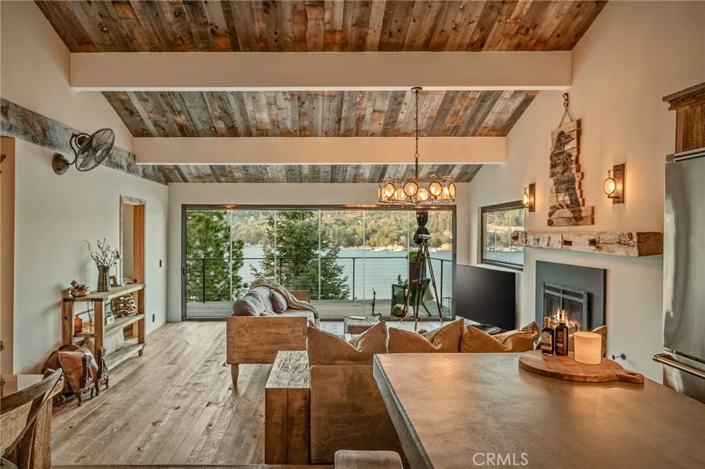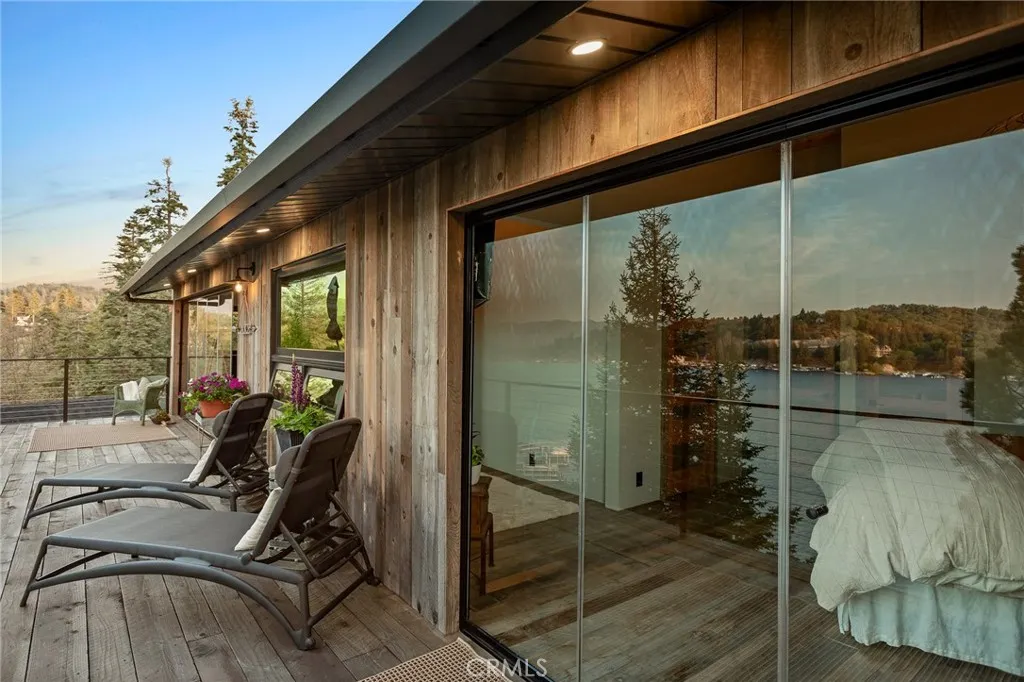 Transcend the ordinary and step into 28778 Palisades Drive to discover the ultimate Lake Arrowhead getaway just in time for summer! One of a kind lakefront unlike any other! Incredible, wide-angle lake views anchor the stunning great room with unique reclaimed wood floors throughout and a custom “NanaWall” folding glass door system allows for a true indoor-outdoor experience rarely found in mountain homes. The stunning kitchen features custom vintage wood cabinetry, under counter lighting, Viking fridge/freezer and dishwasher, CornuFé range, Brizzo faucet and custom vintage wood center island. Rest and relaxation is ensured in the main level primary suite featuring soaring vaulted ceiling and where folding glass doors seamlessly frame panoramic lake views along with a spacious spa-like bath. The lower level contains a spacious entertainment room with beautiful lake and tree views along with two ensuite bedrooms perfect for family and friends. A unique and versatile lower patio area with BBQ, sink and refrigerator is perfect for lakeside entertaining and only steps away to the completely rebuilt single-slip dock with hydrohoist and remodeled dock house. Amongst the many, though certainly not all, features of this remarkable home are: updated PEX plumbing and electrical systems, newer metal roof, custom cedar and white doug-fir siding, Brizzo fixtures throughout, custom NanaWall windows and doors throughout, newer heating and central AC, top of the line appliances throughout and so much more. An exceptional opportunity to acquire one of the most unique lakefront properties on the market today!